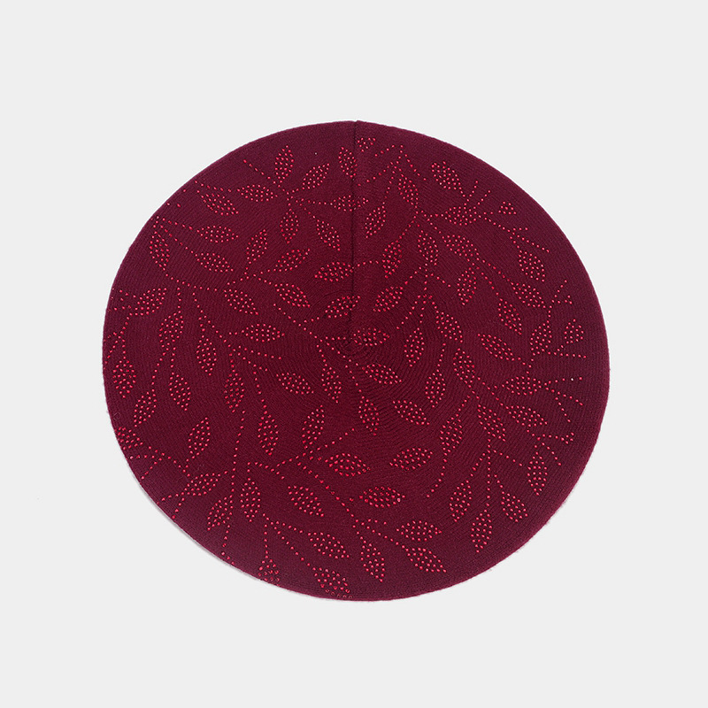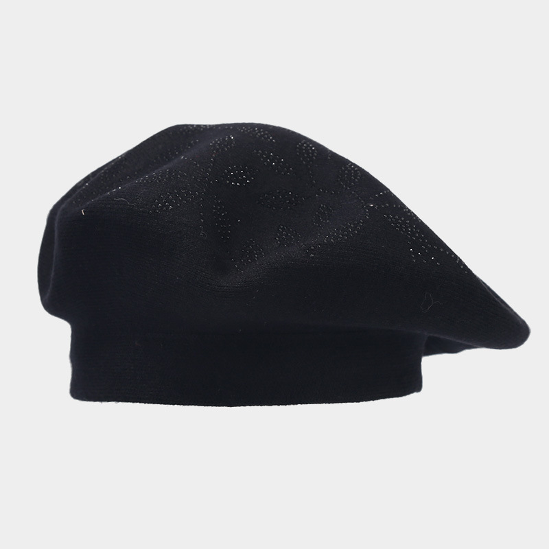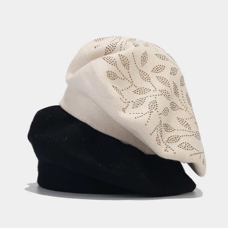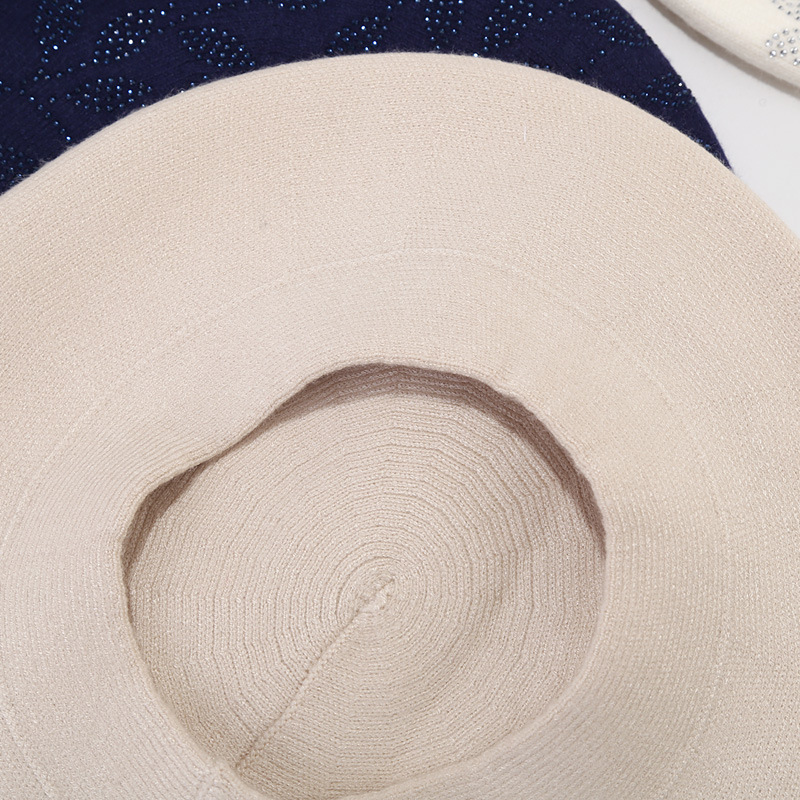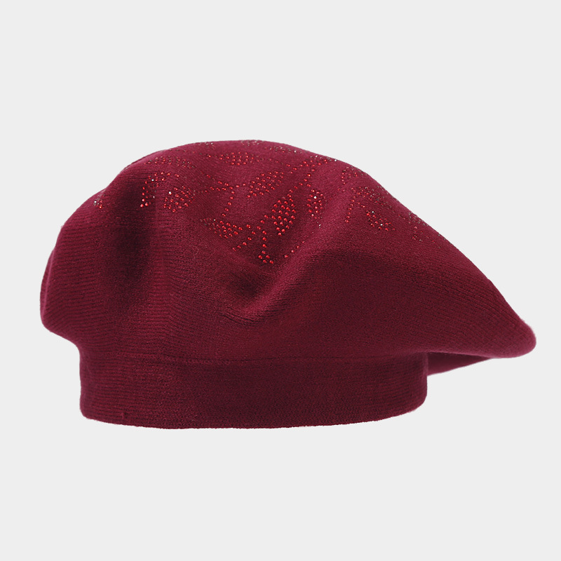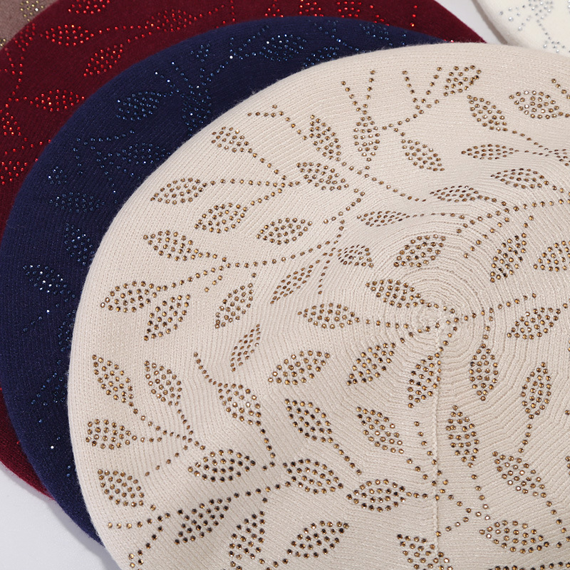 亚马逊新款烫钻针织贝雷帽女士文艺复古纯色时尚画家帽秋冬蓓蕾帽