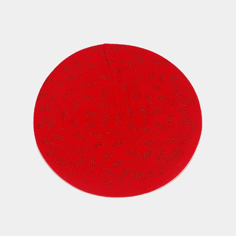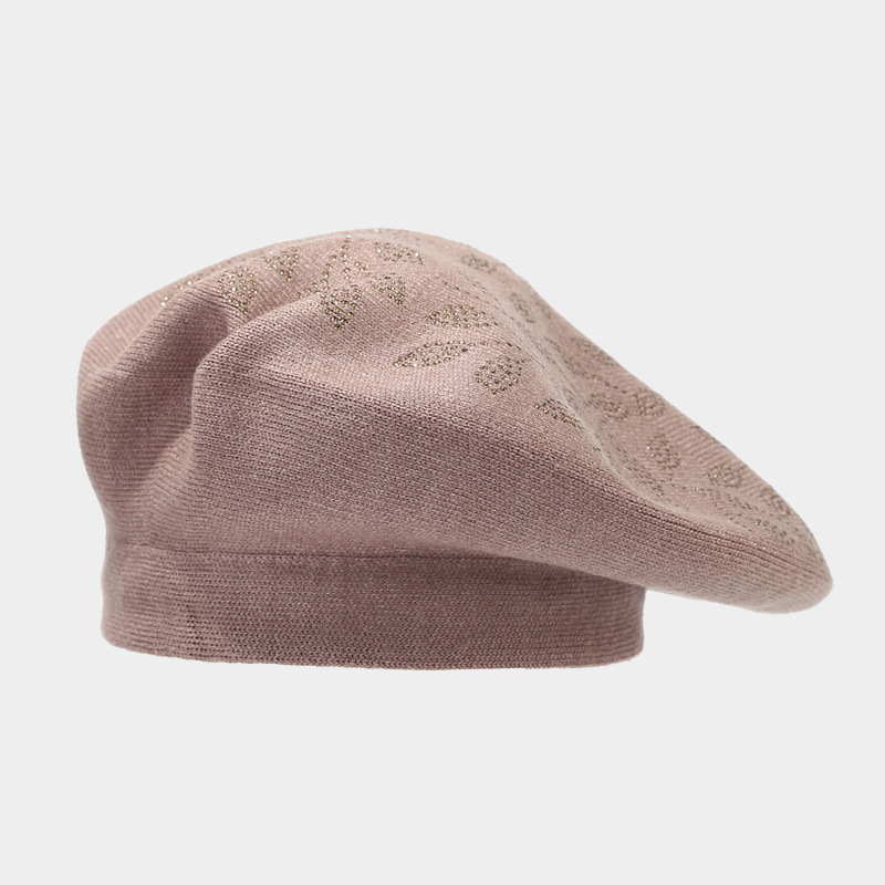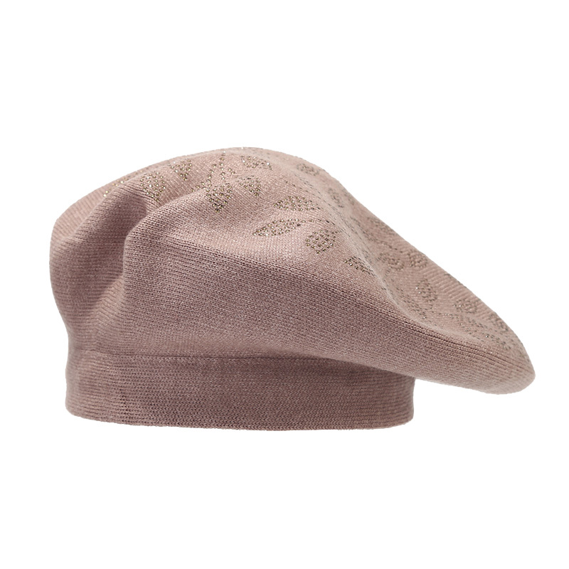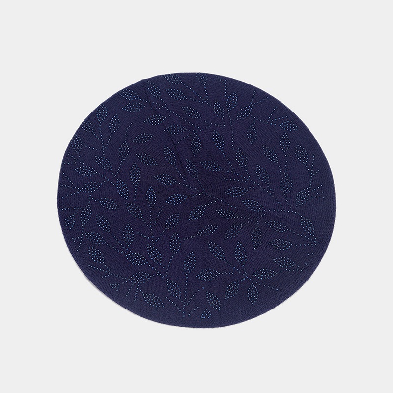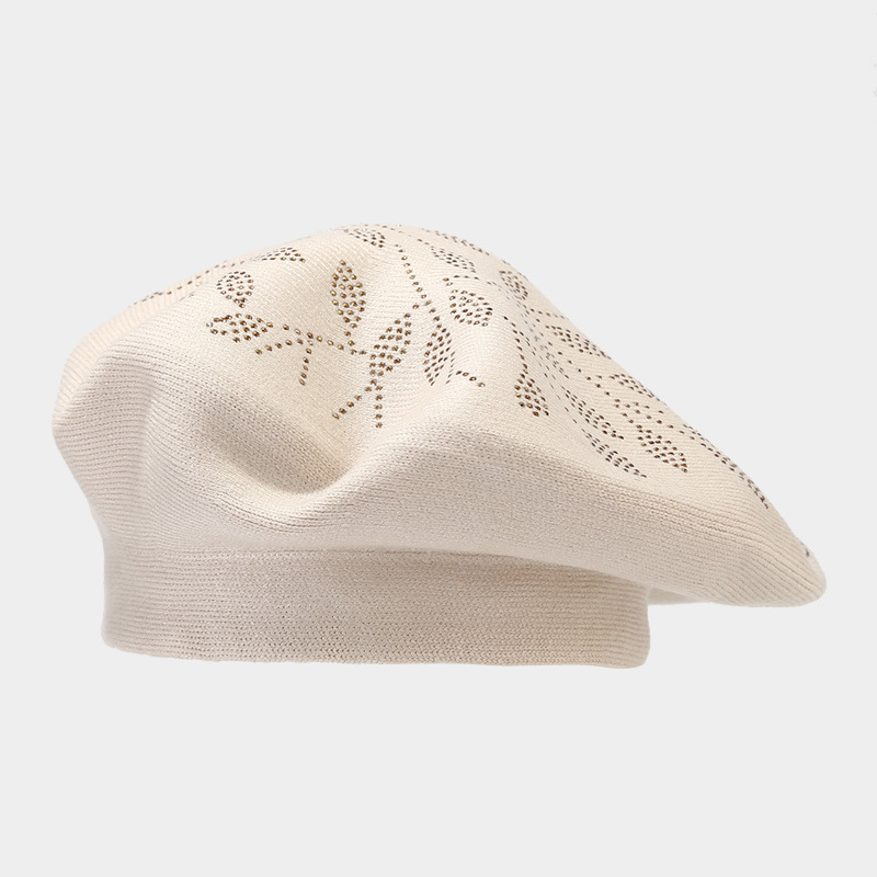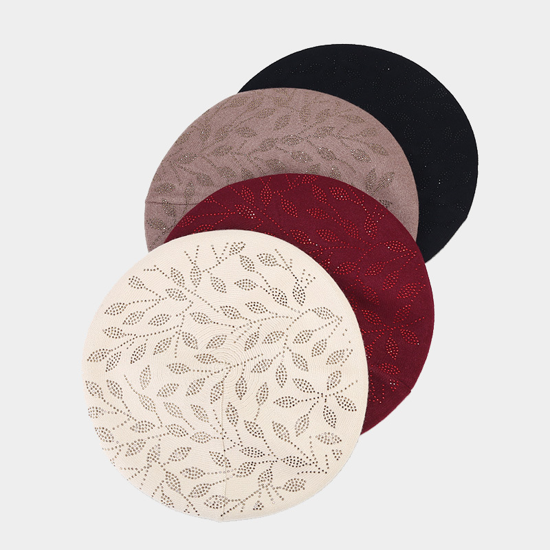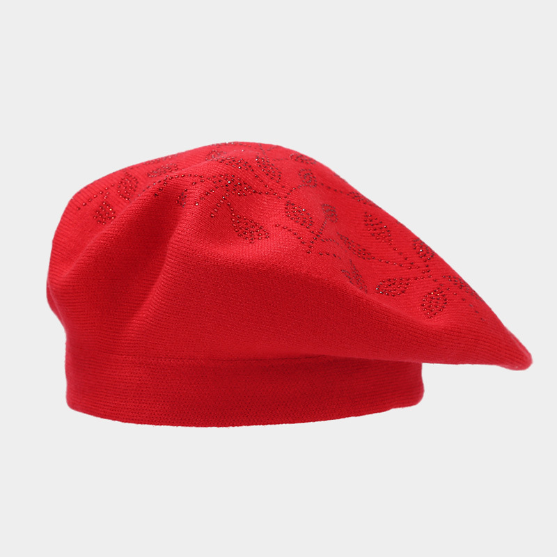 亚马逊新款烫钻针织贝雷帽女士文艺复古纯色时尚画家帽秋冬蓓蕾帽
