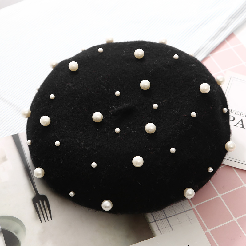 韩版秋冬天新款羊绒奢华重工贝雷帽满天星钉珠珍珠铆钉羊毛贝雷帽