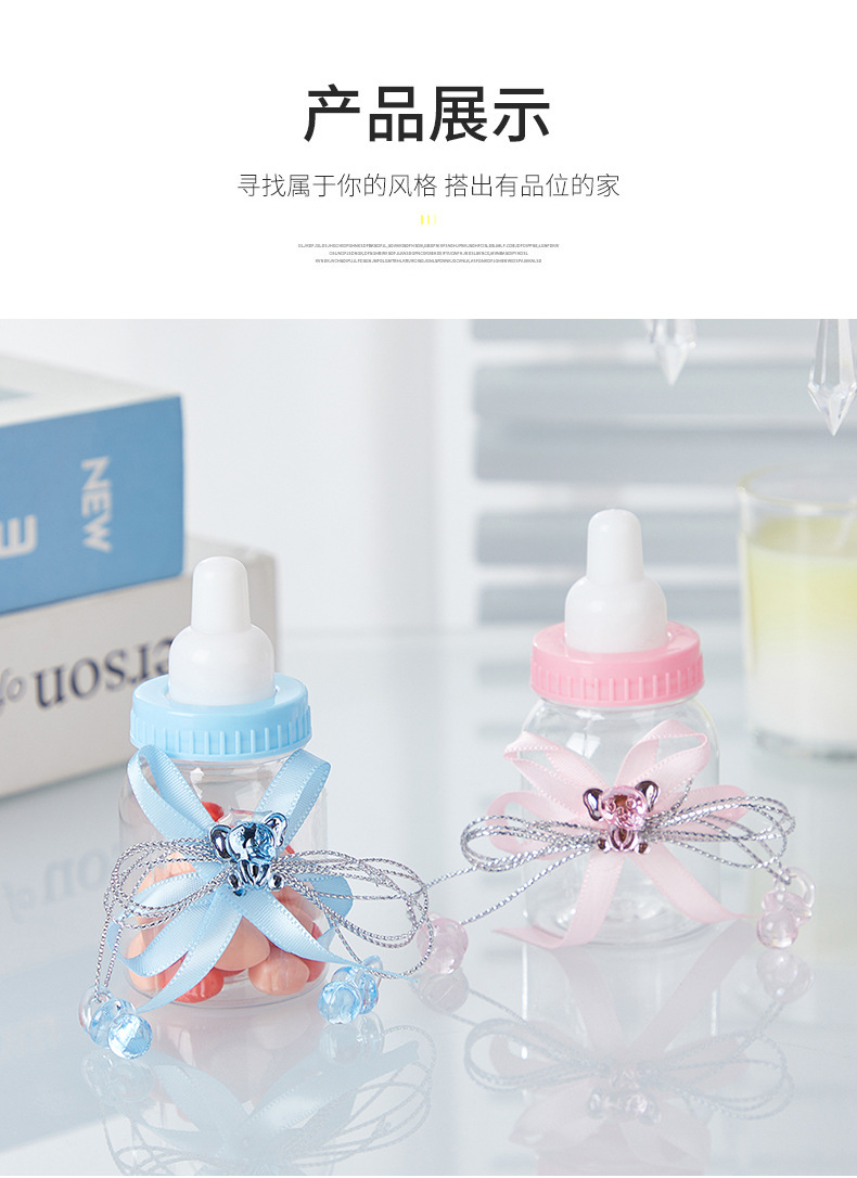 创意塑料透明小奶瓶喜糖盒子婴儿淋浴品宝宝派对礼物迷你熊糖果盒