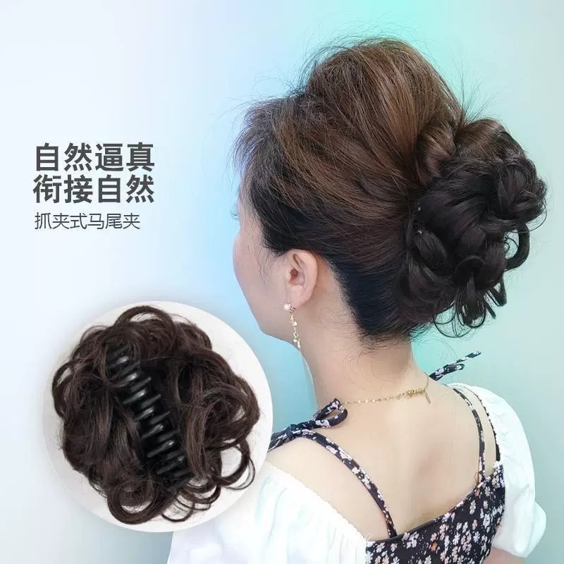 假发女丸子头发圈抓夹花苞懒人半丸子真发蓬松自然盘发器假发发包