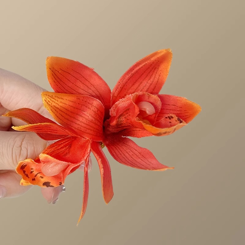 紫色花朵发夹女侧边仿真花假花头饰发卡蕙兰花发饰头花海边度假