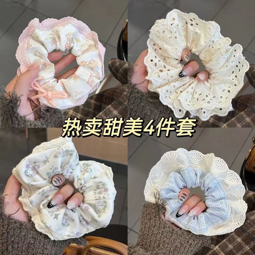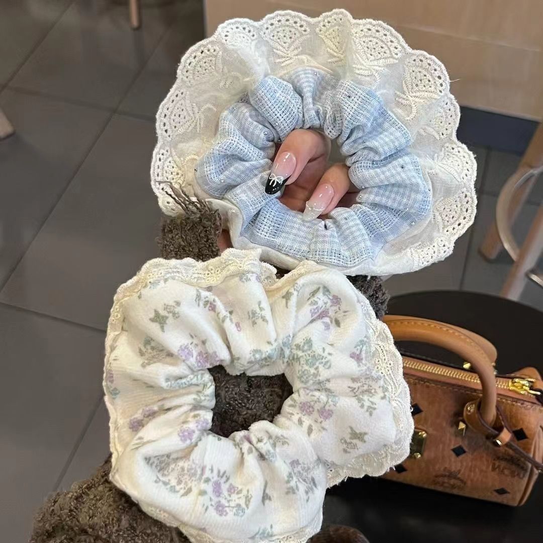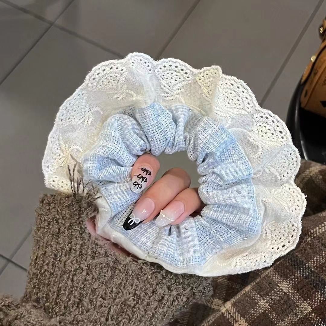 小红书爆款纯色蕾丝花边大肠发圈女2025新款发绳扎头花高级感发饰