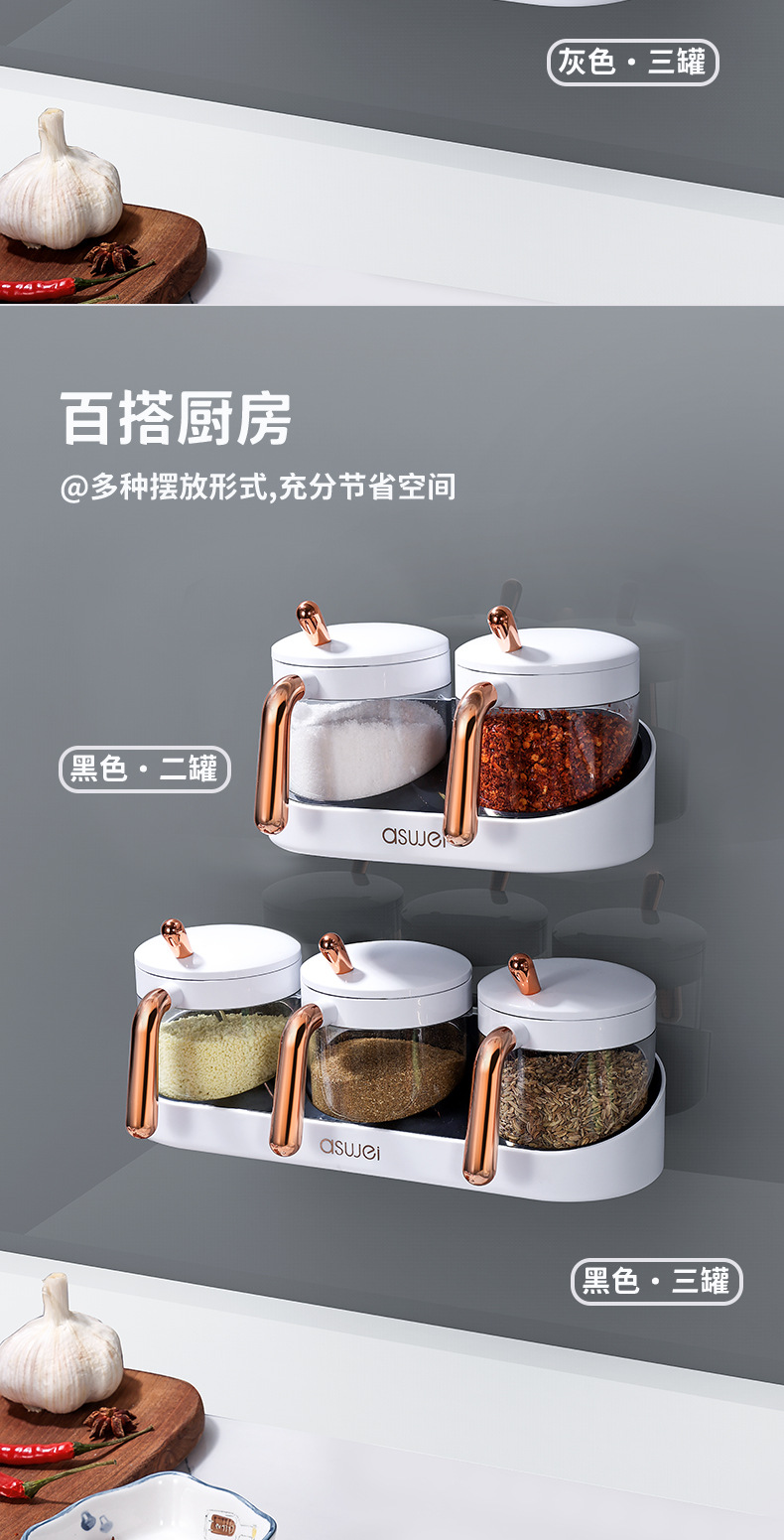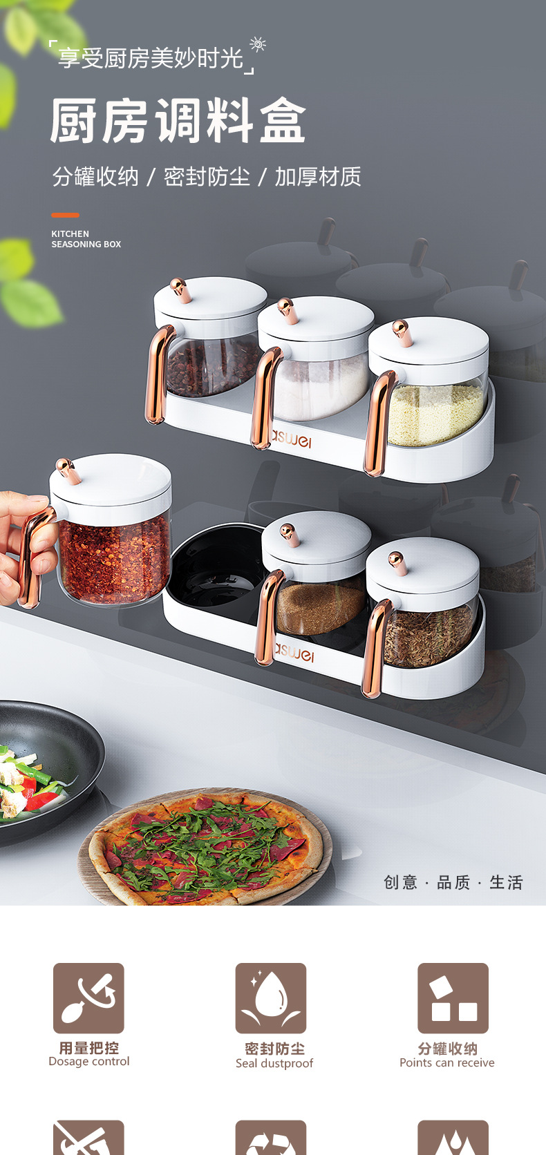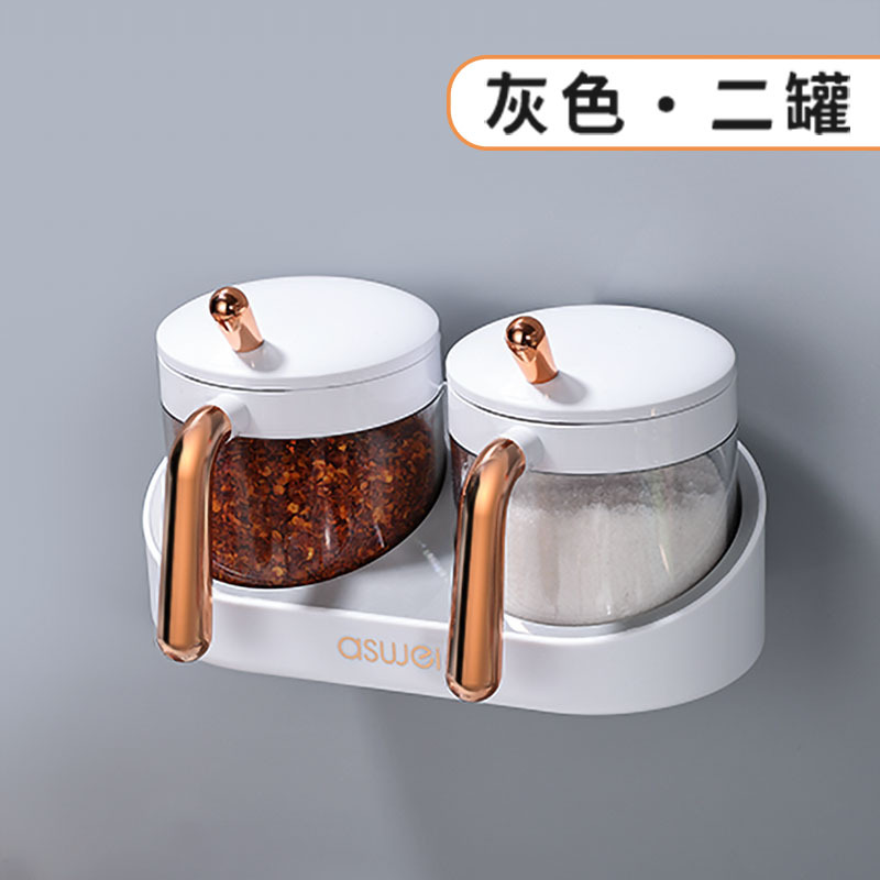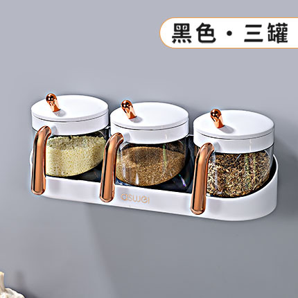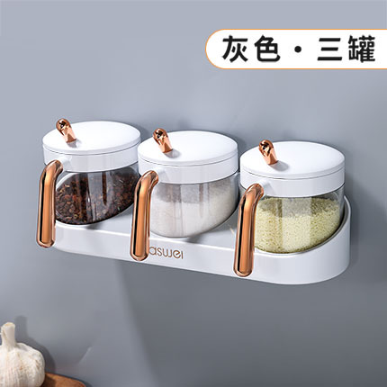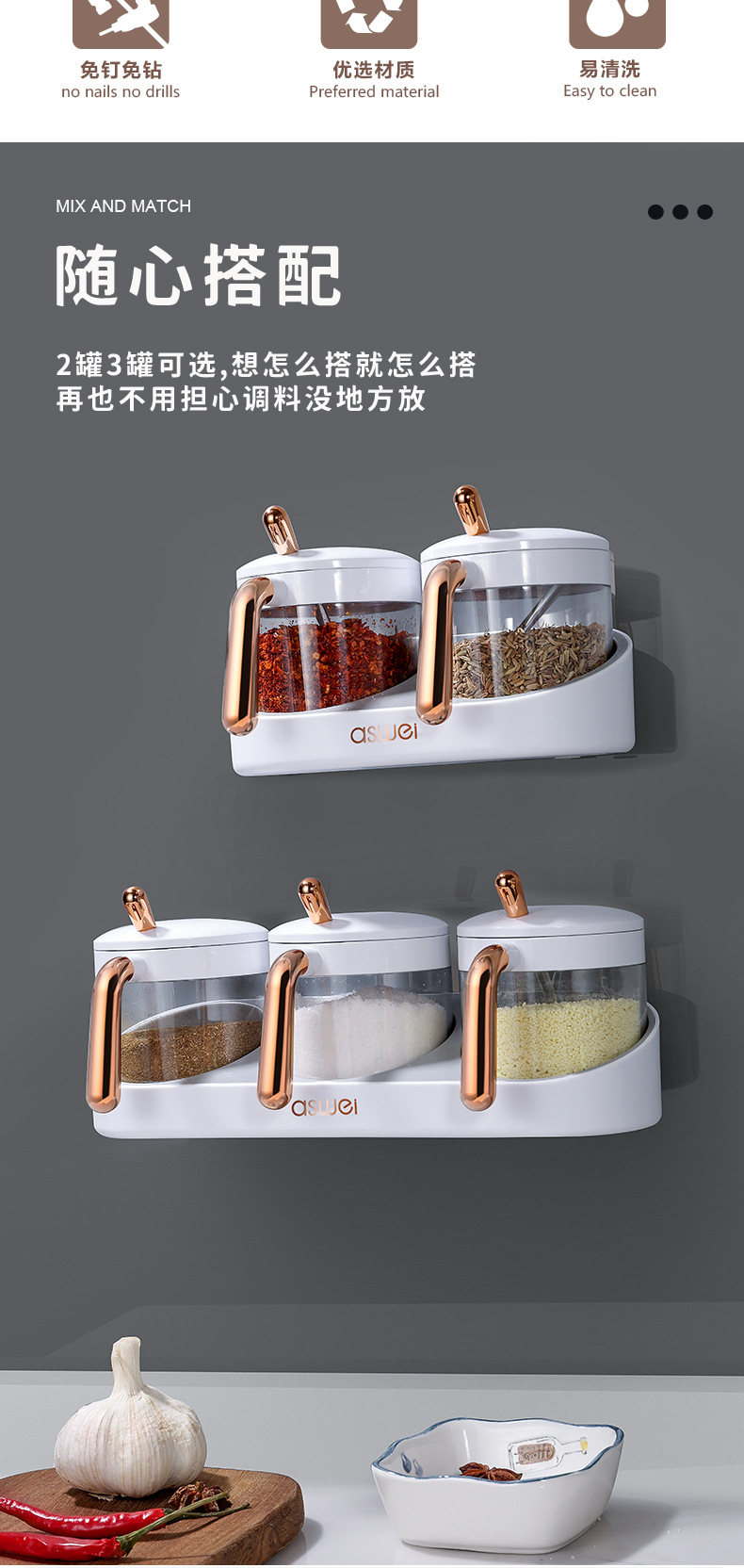 塑料调料罐免打孔壁挂家用厨房置物架轻奢调味料瓶罐子带勺收纳盒