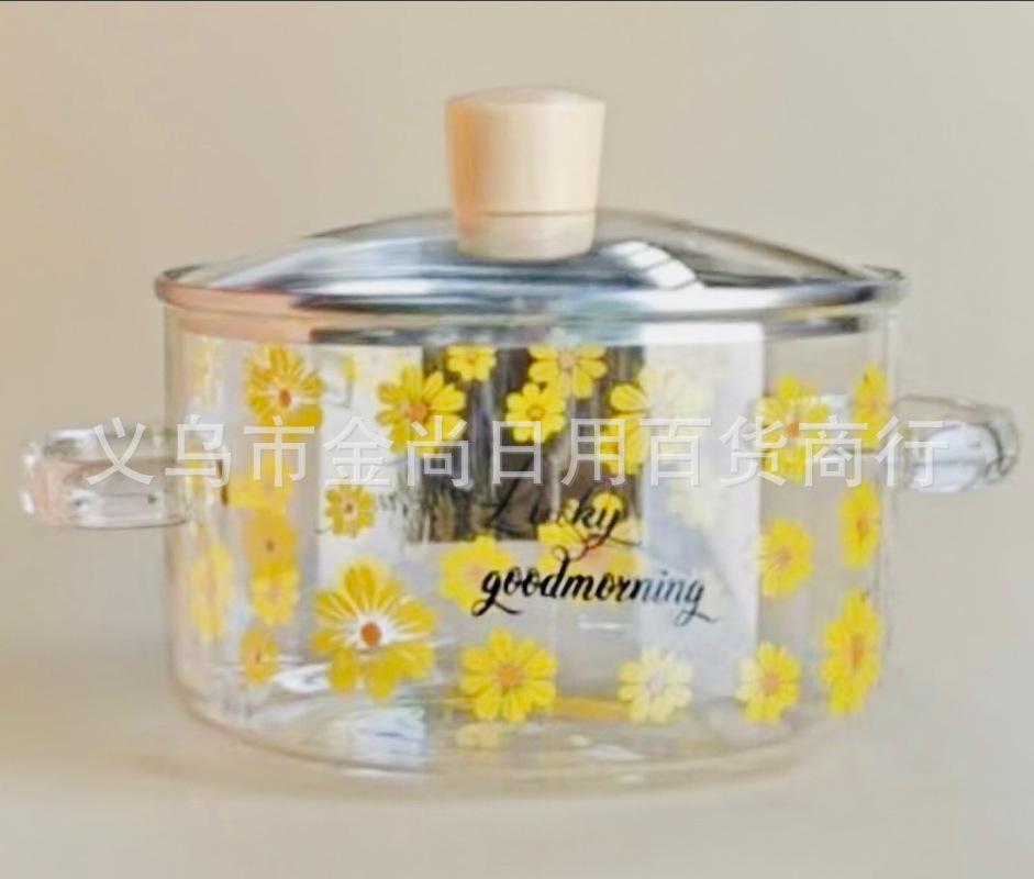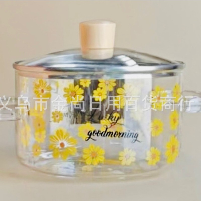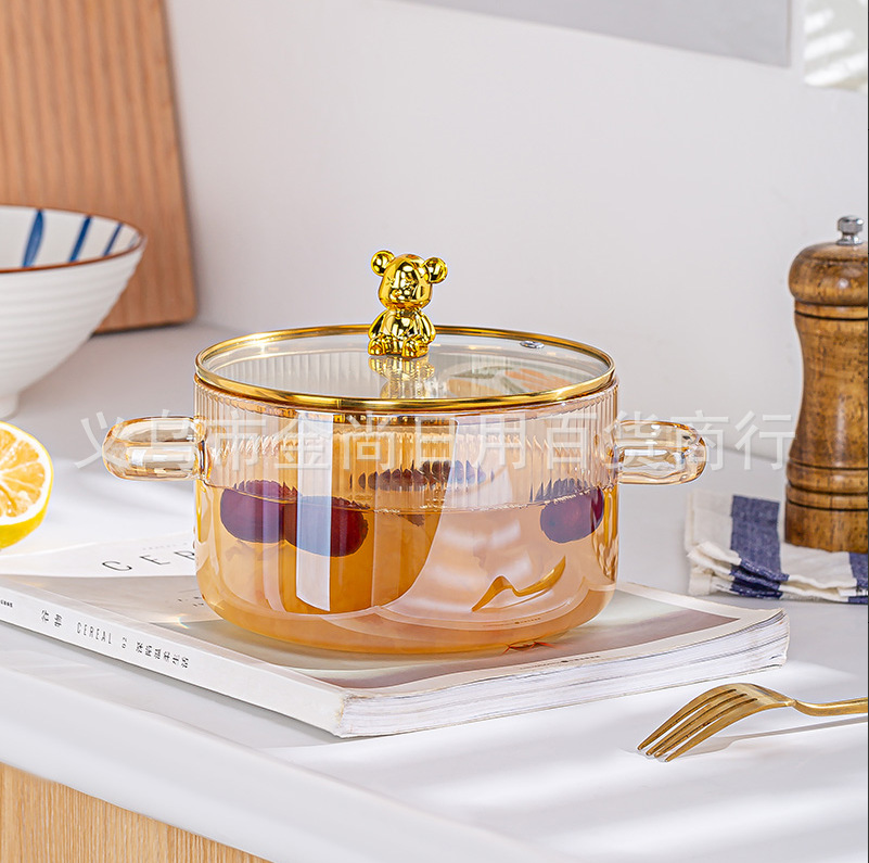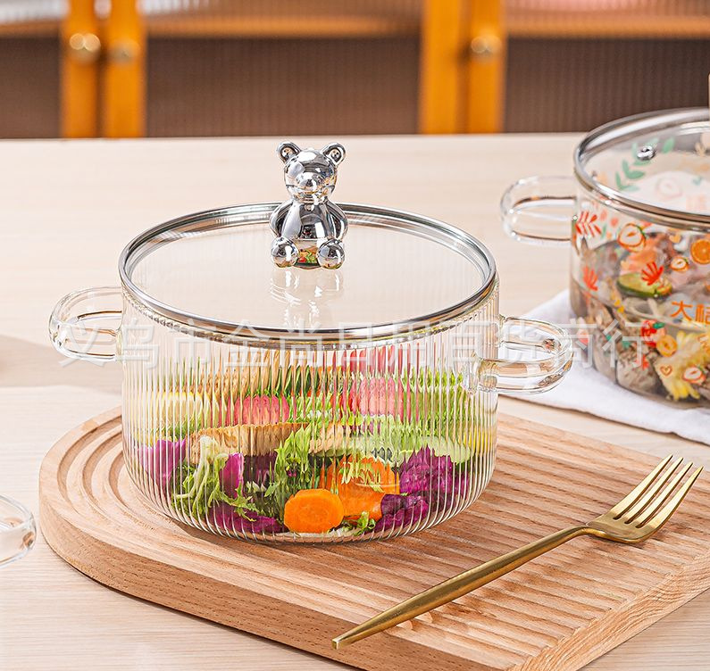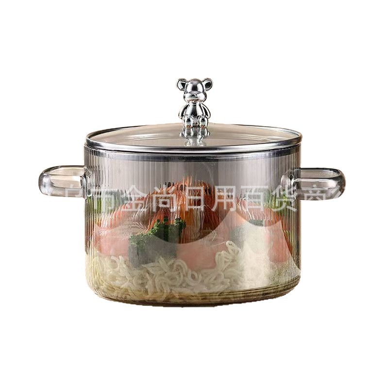 小熊双耳汤锅条纹锅透明高硼硅耐热玻璃养生锅可加热泡汤锅带彩盒