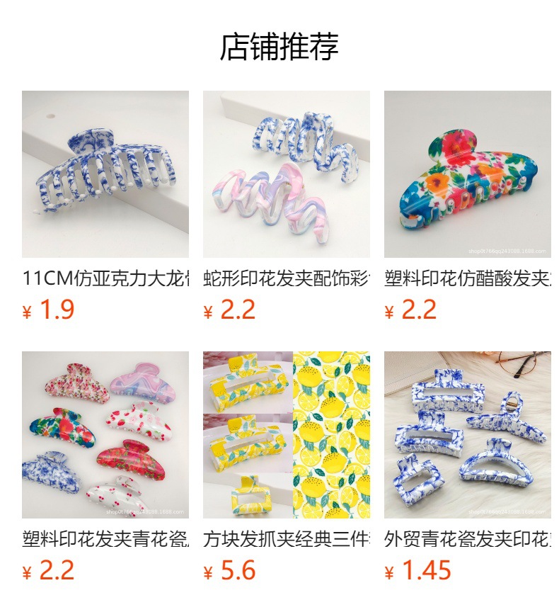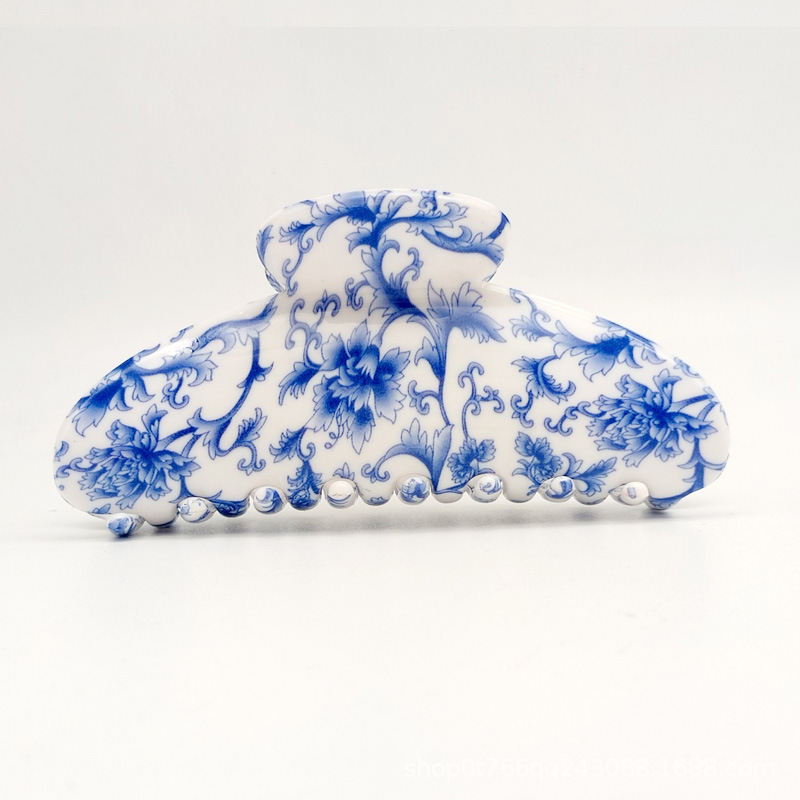 外贸复古青花瓷抓夹古风百搭发夹头饰鲨鱼夹Hairclaw