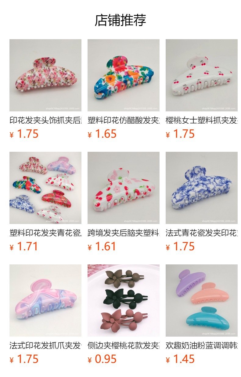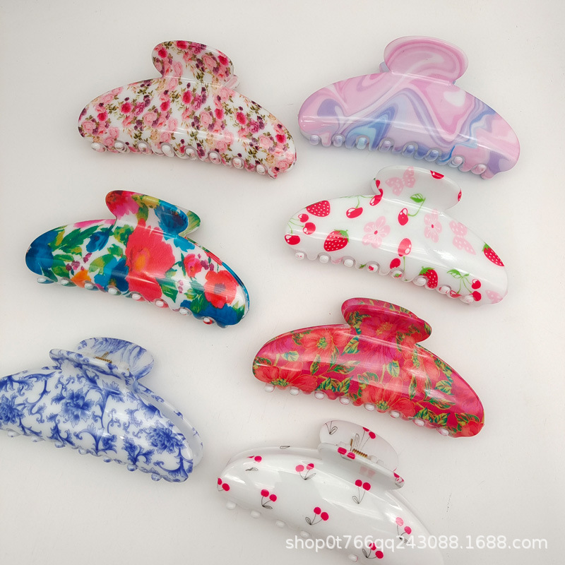 碎花发抓夹女印花发抓盘发夹鲨鱼夹仿亚克力发饰头饰hair clip