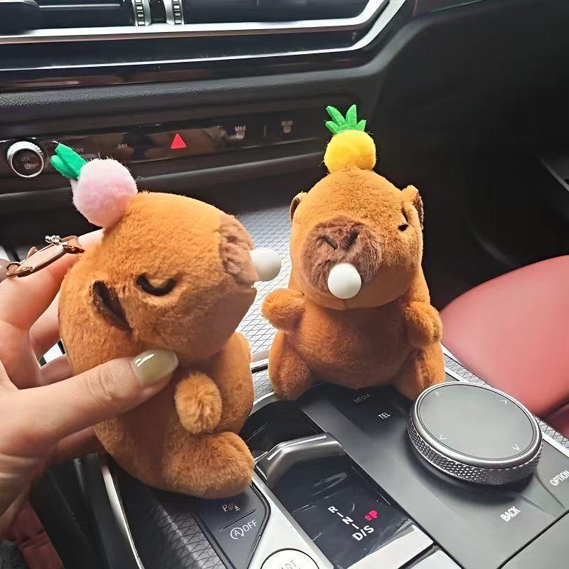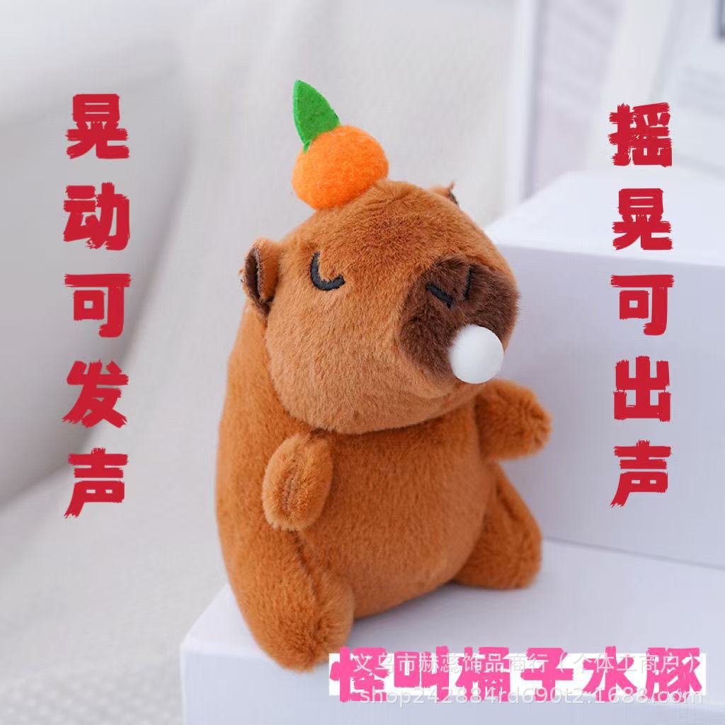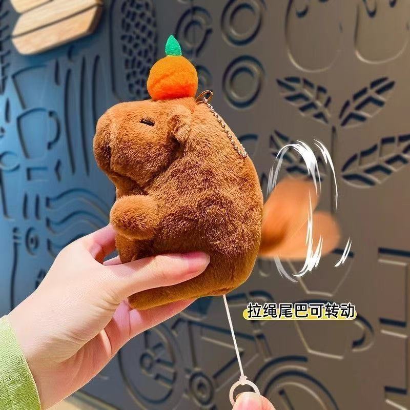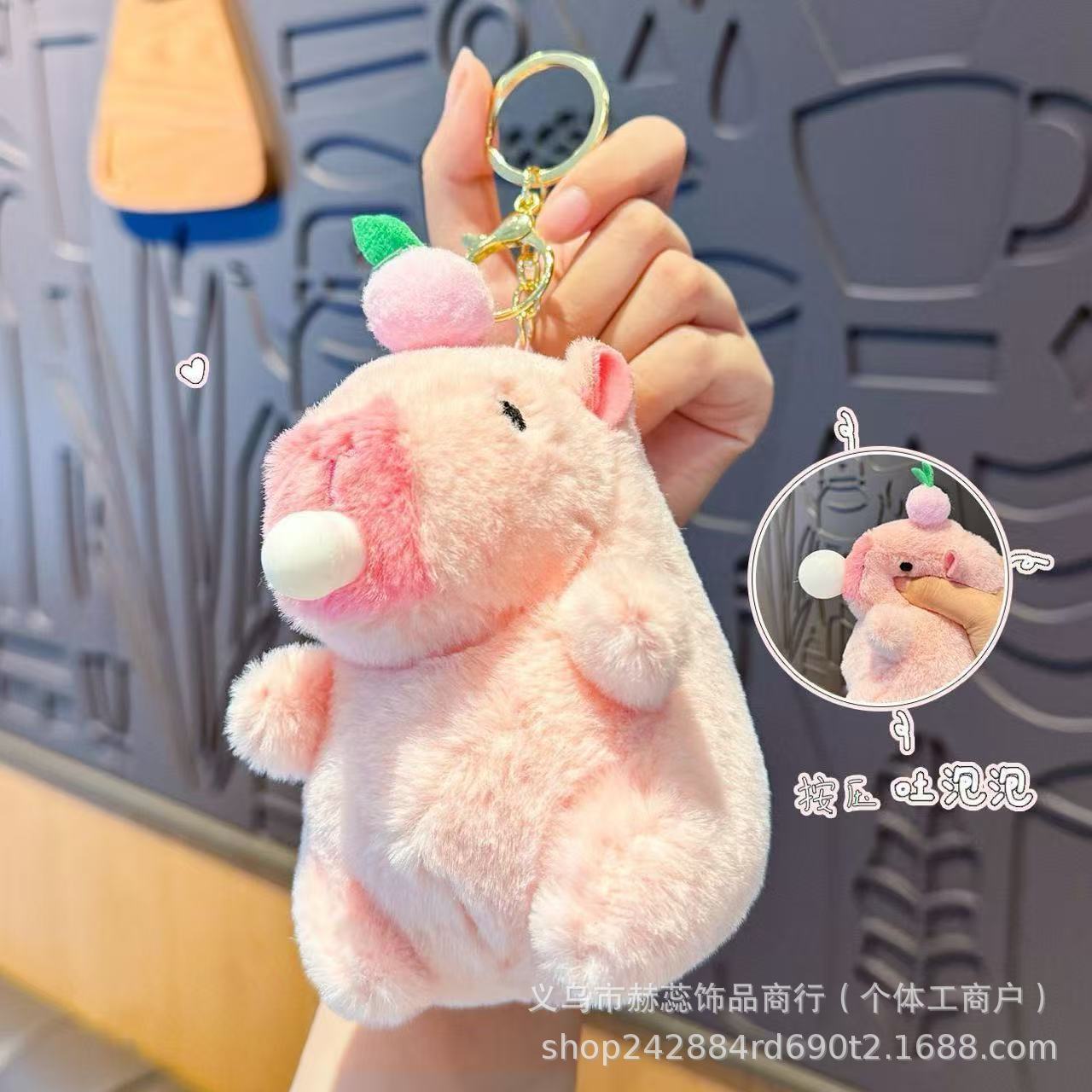 卡皮巴拉毛绒玩具卡皮巴挂件水豚挂件摇尾巴公仔毛绒吐泡泡钥匙扣