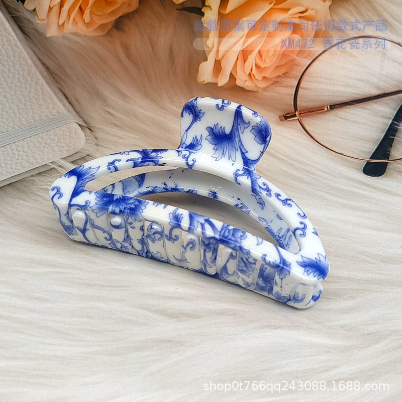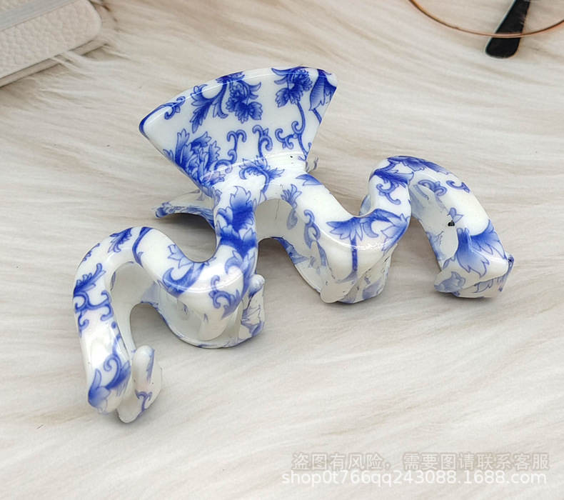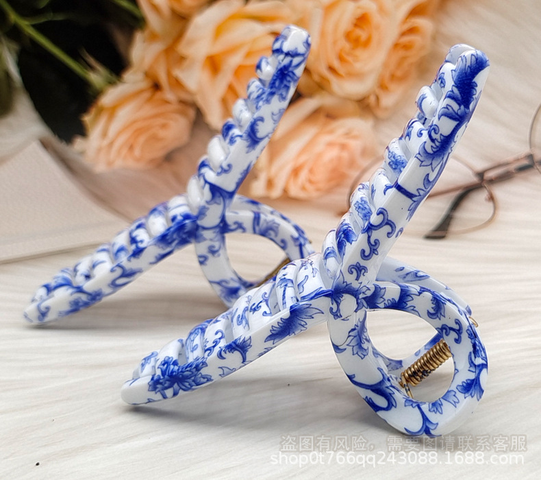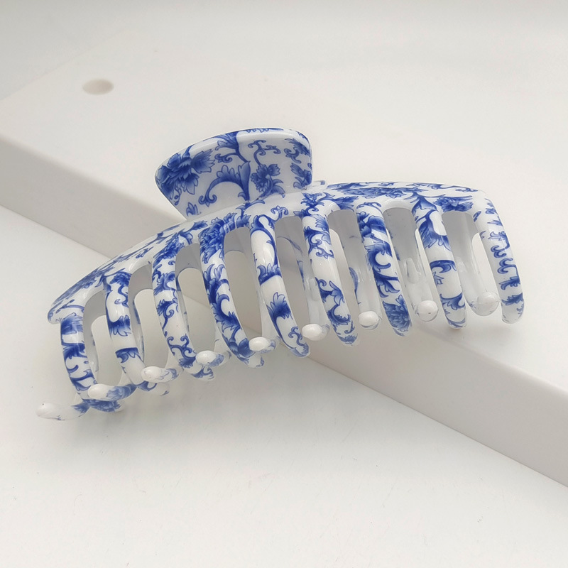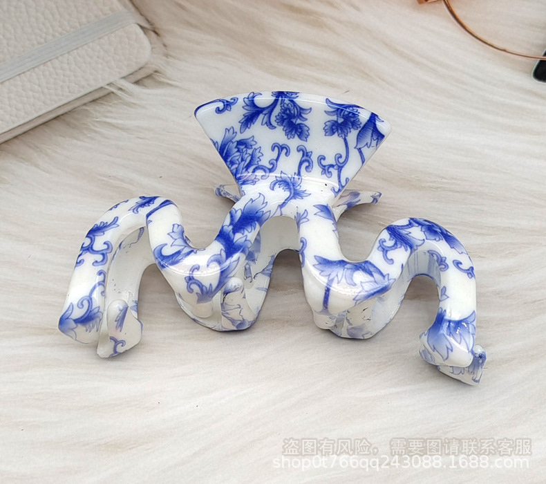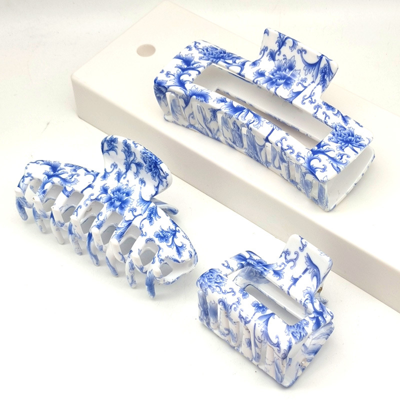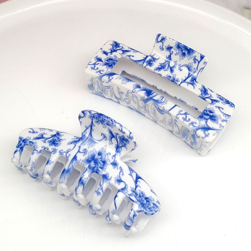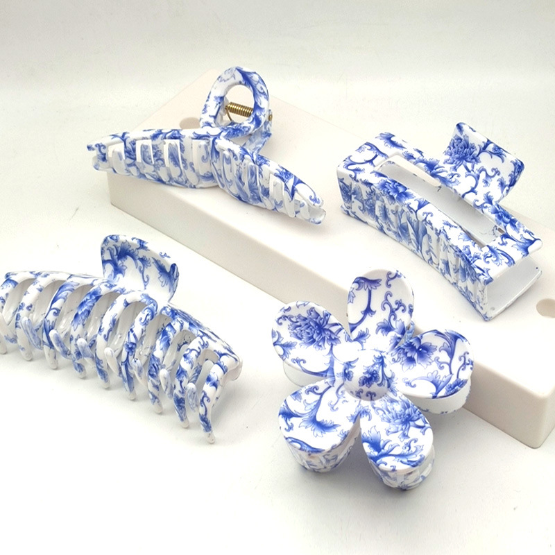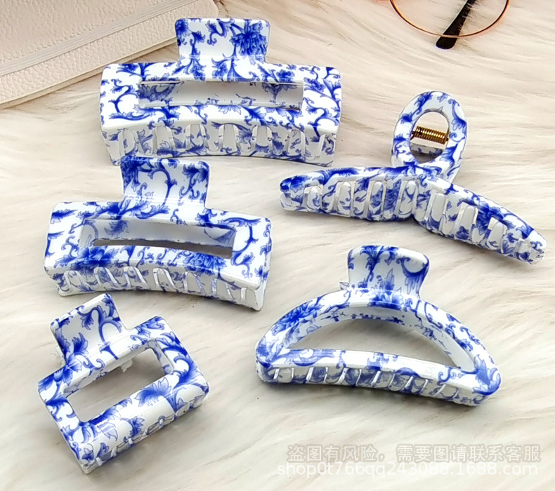 青花瓷抓夹印花塑料头饰欧美东南亚跨境外贸水转印抓夹Hairclaw