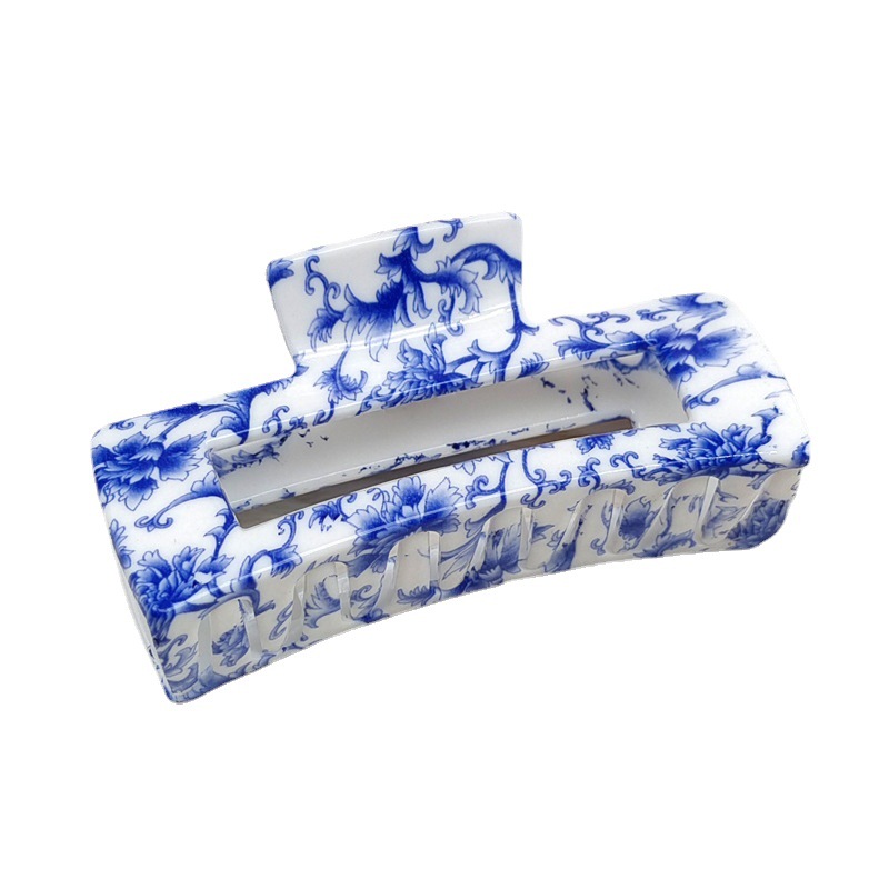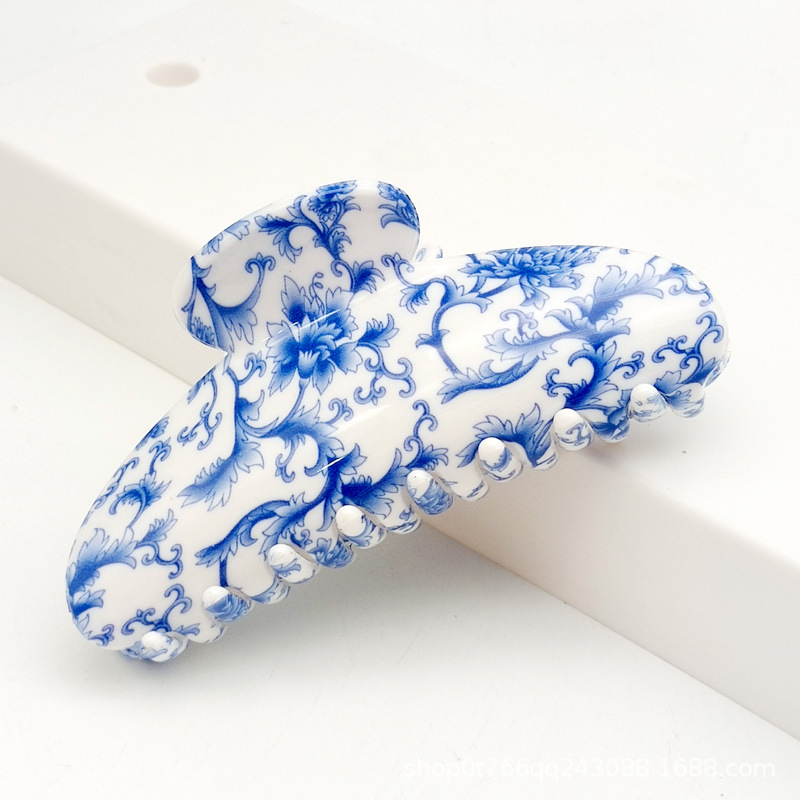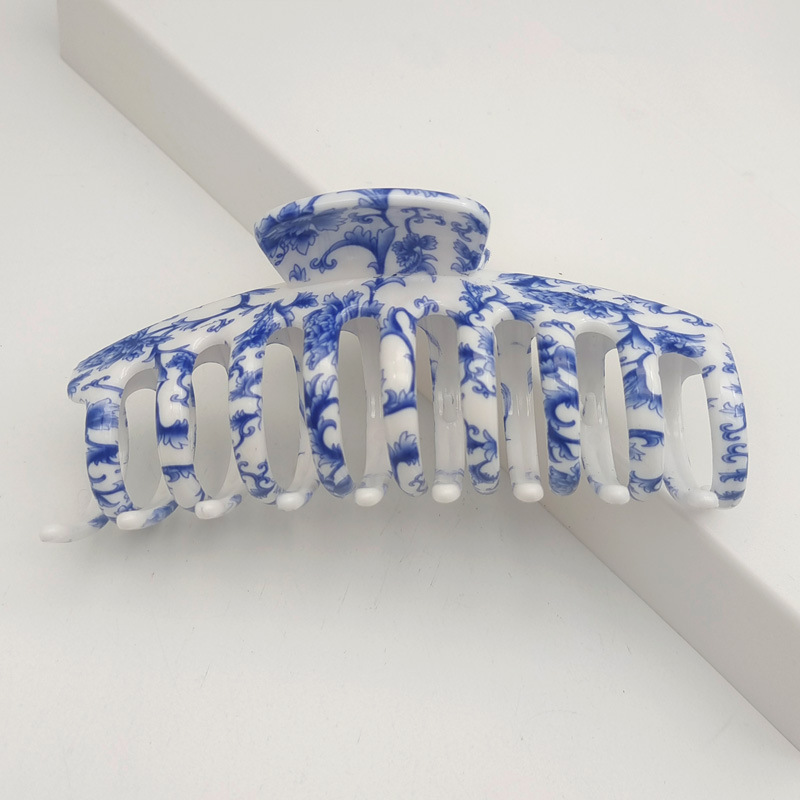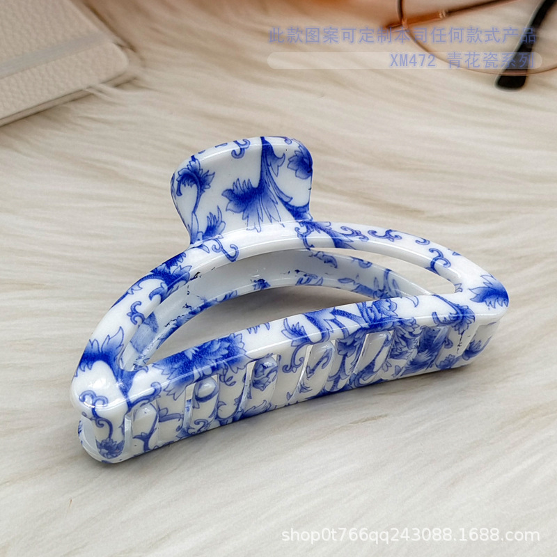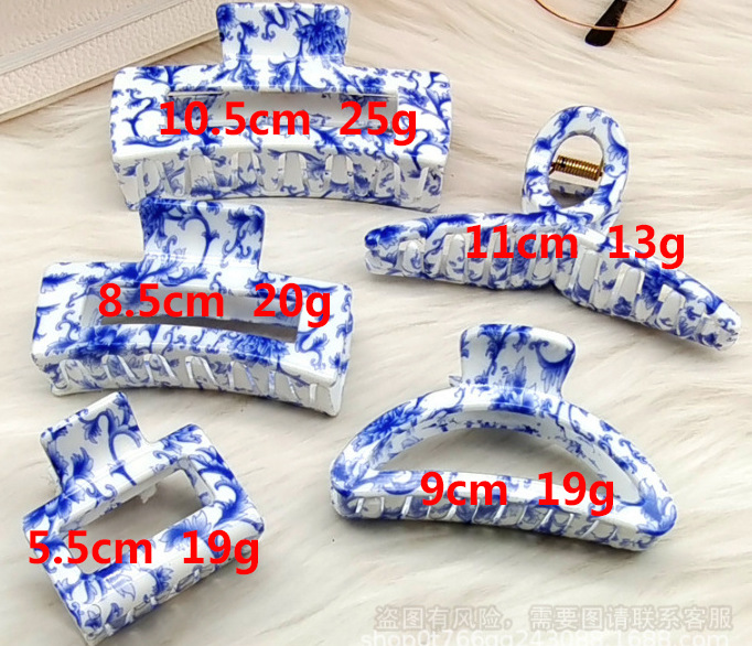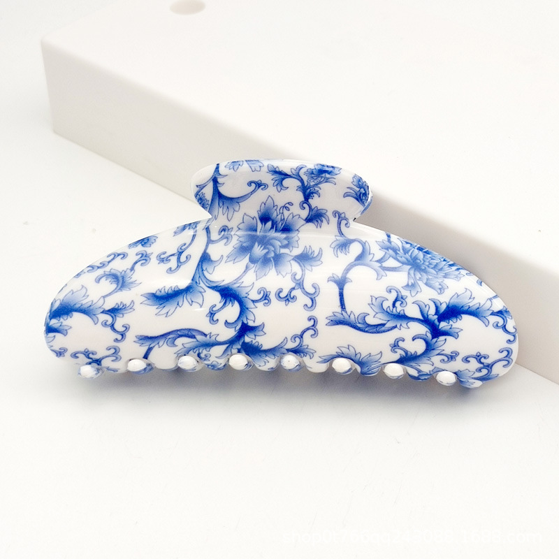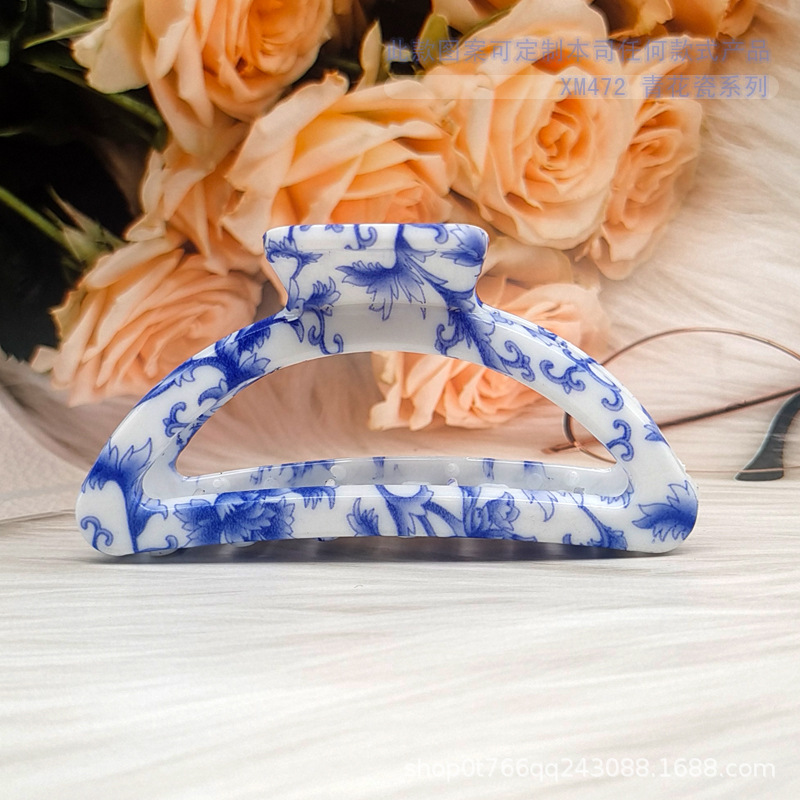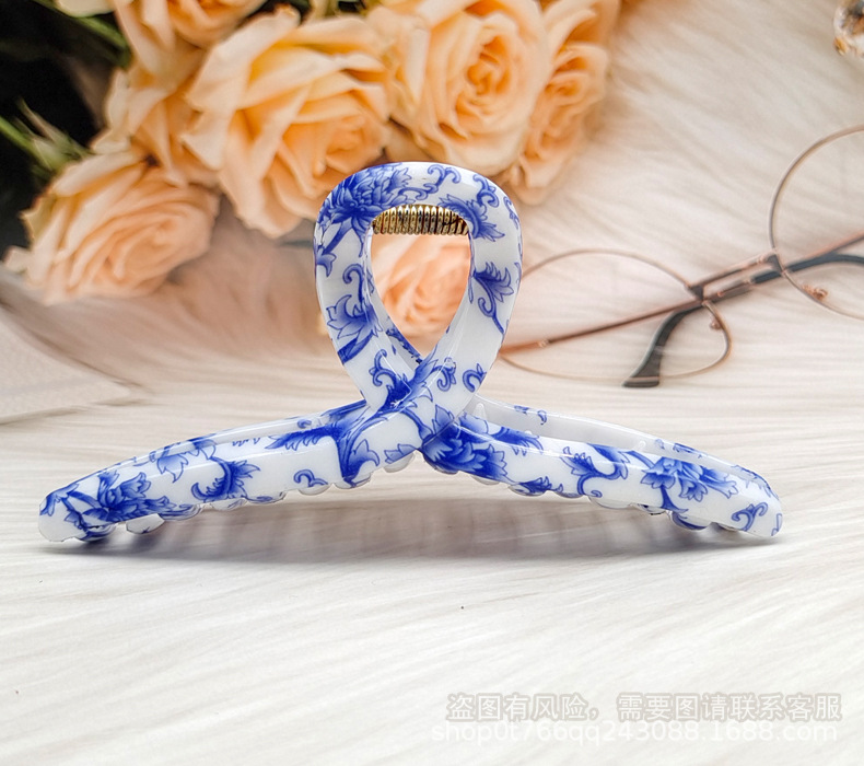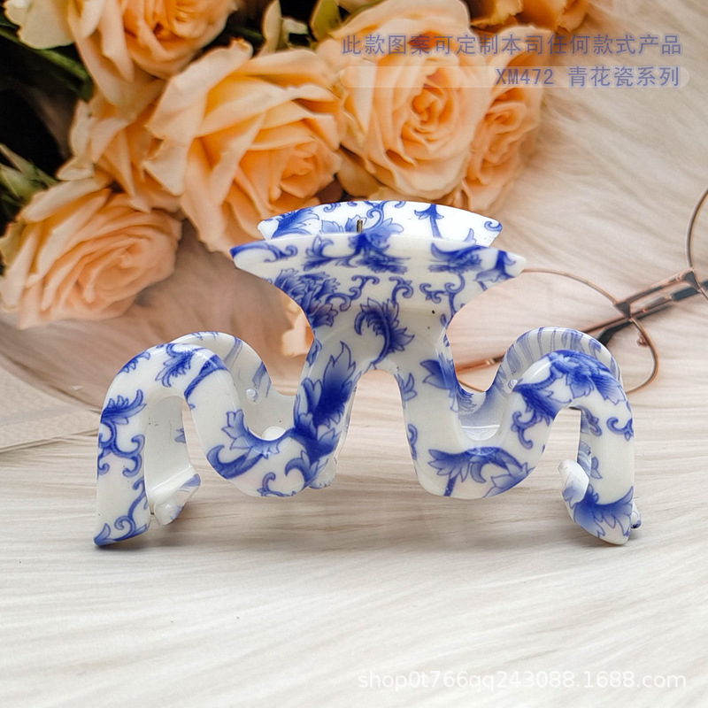 青花瓷抓夹印花塑料头饰欧美东南亚跨境外贸水转印抓夹Hairclaw