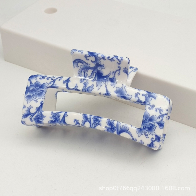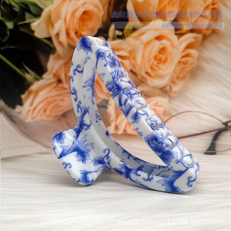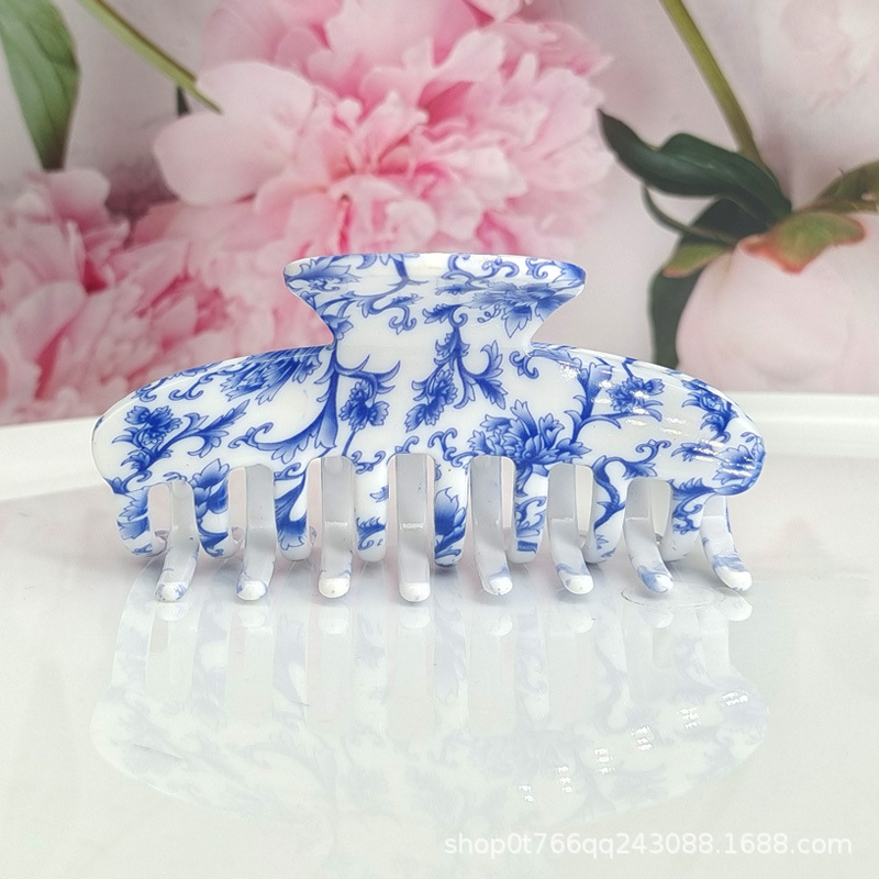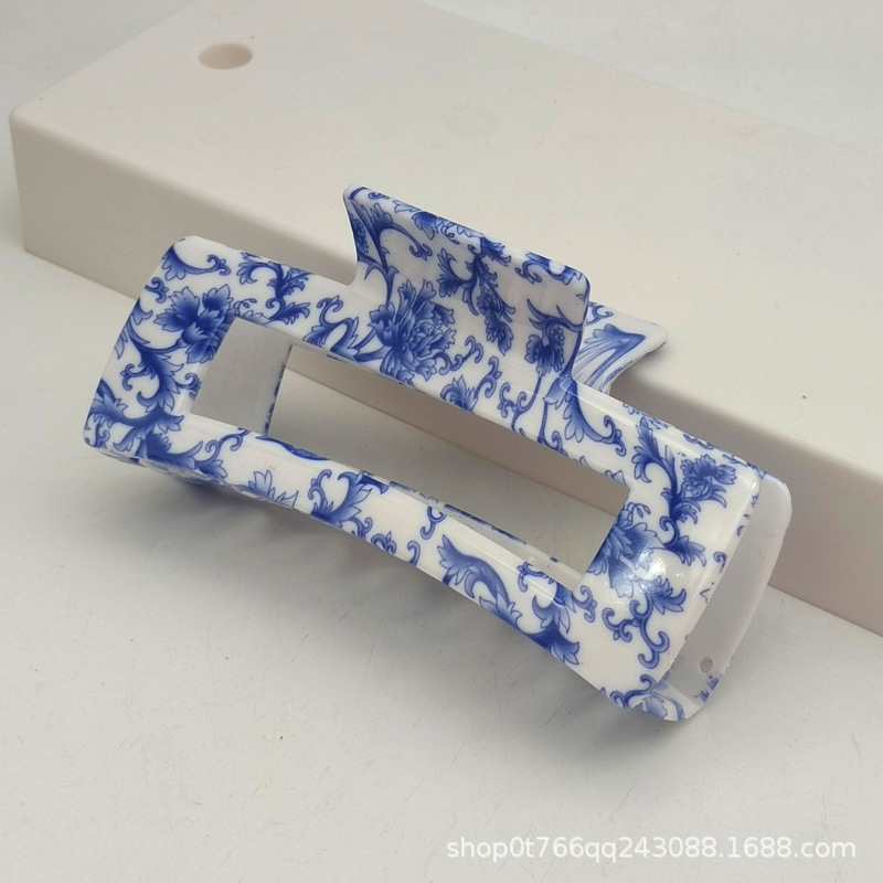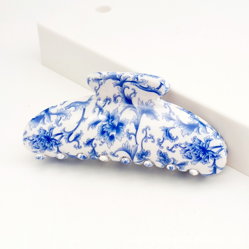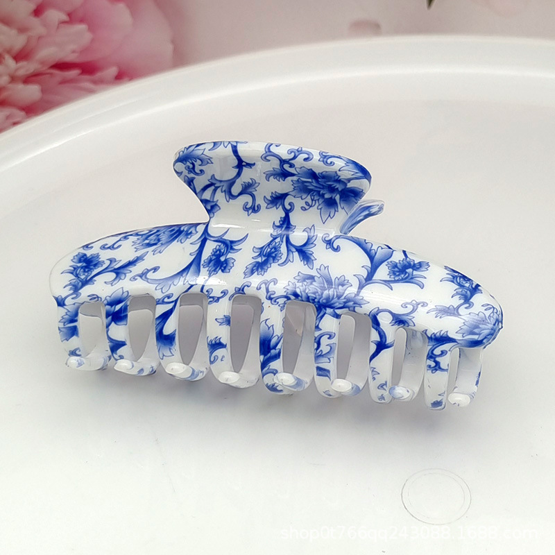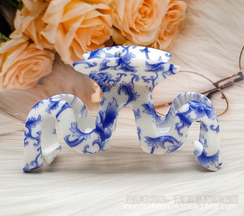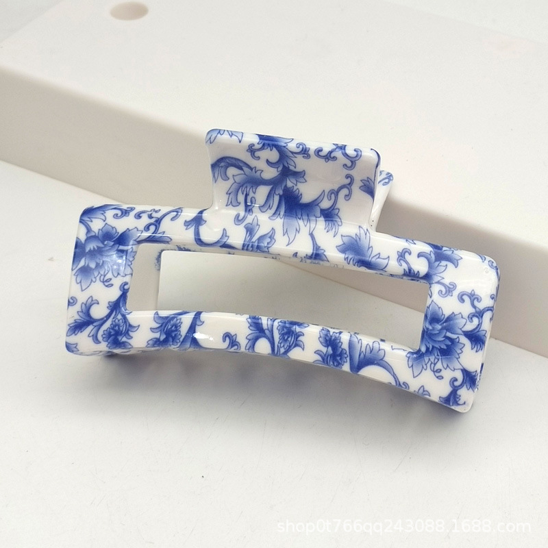 青花瓷抓夹印花塑料头饰欧美东南亚跨境外贸水转印抓夹Hairclaw