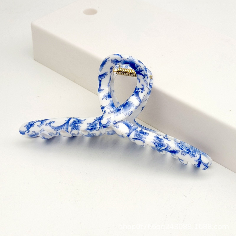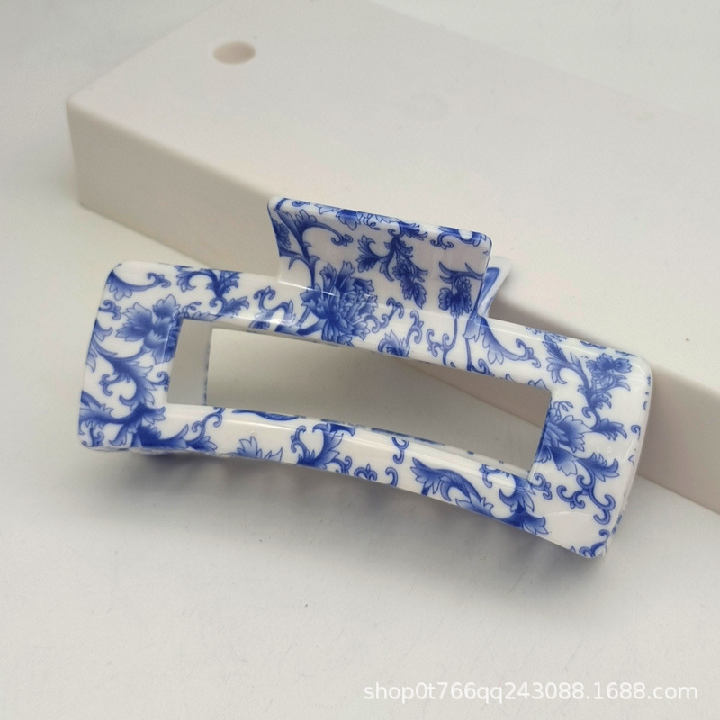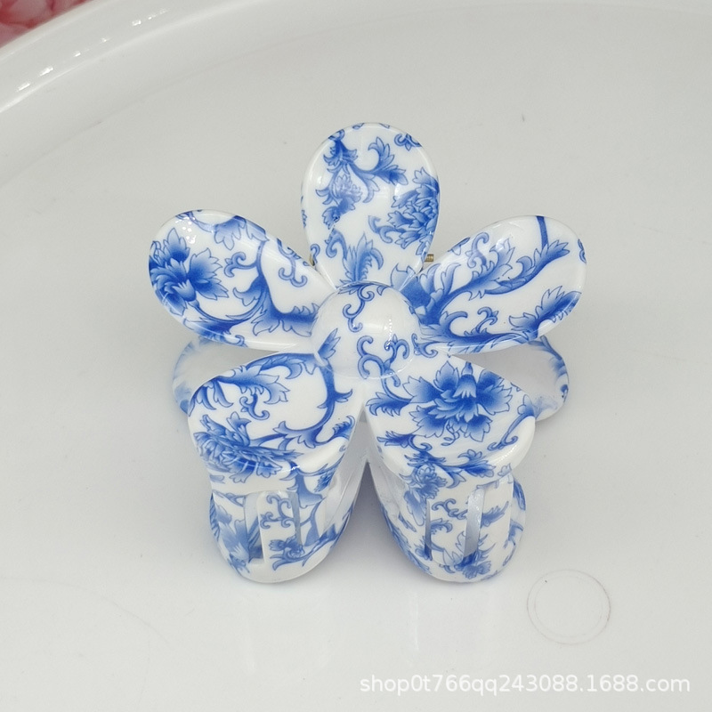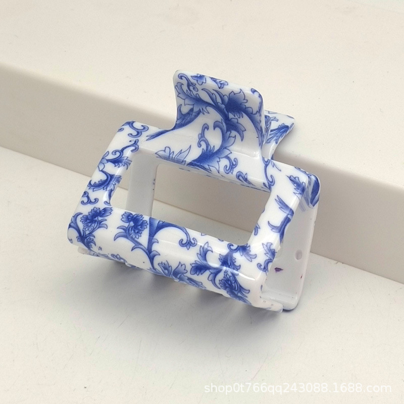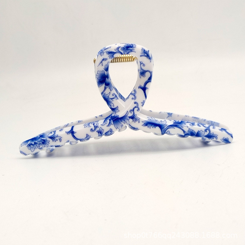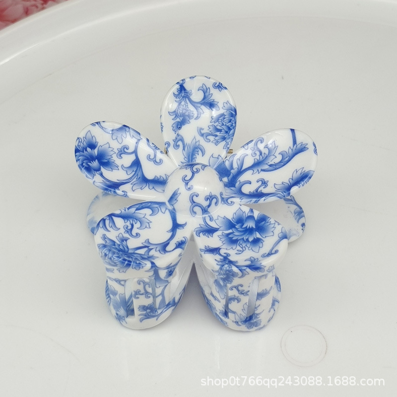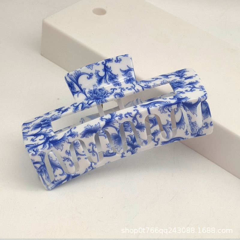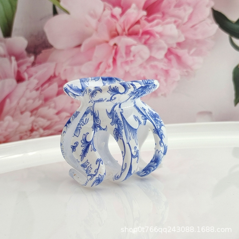 青花瓷抓夹印花塑料头饰欧美东南亚跨境外贸水转印抓夹Hairclaw