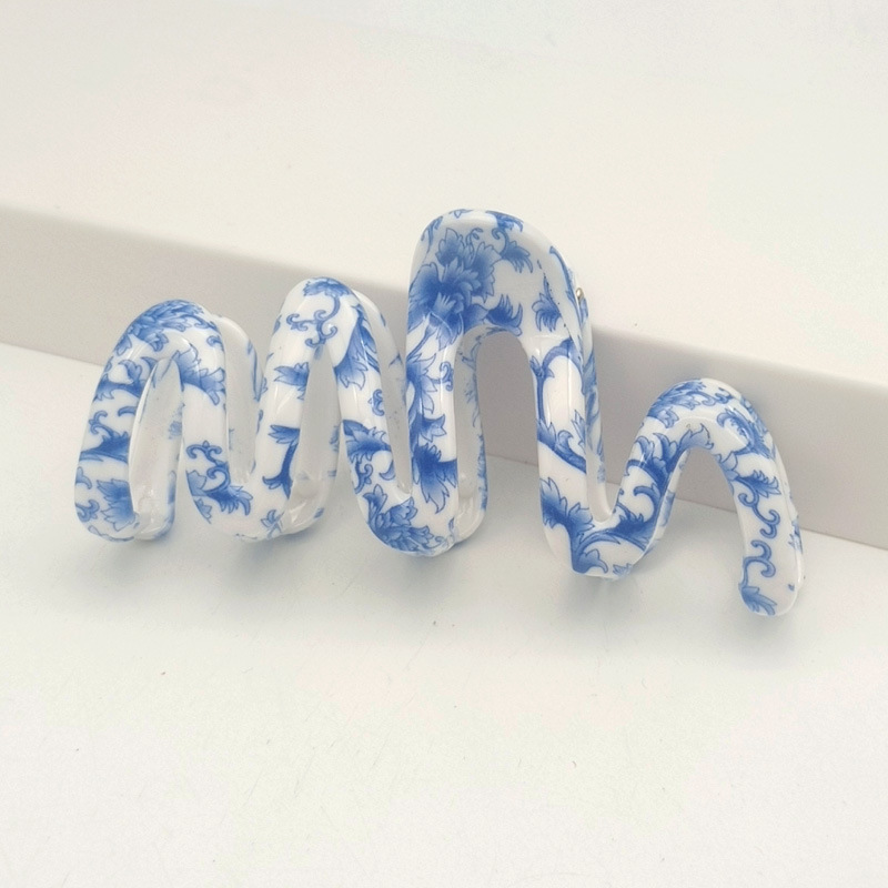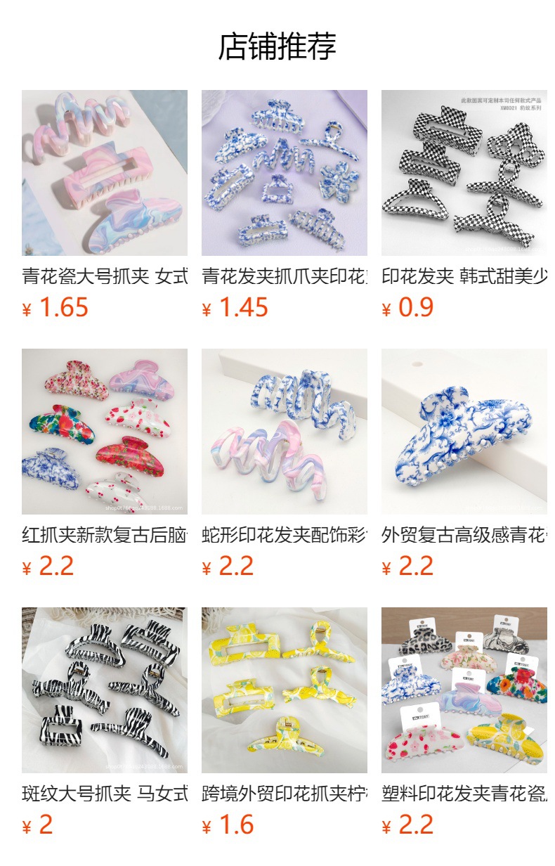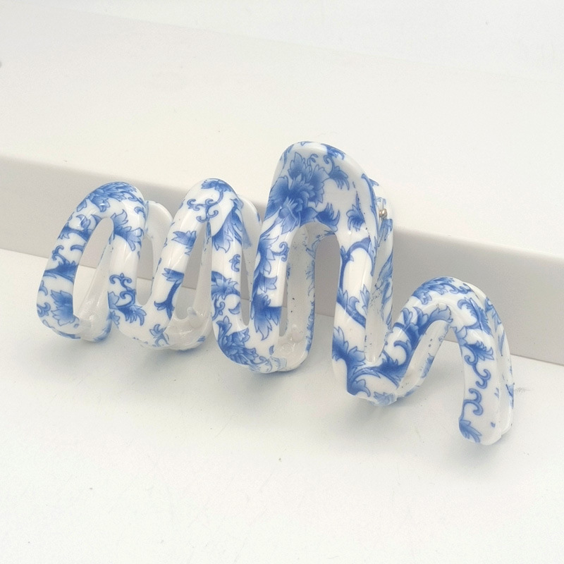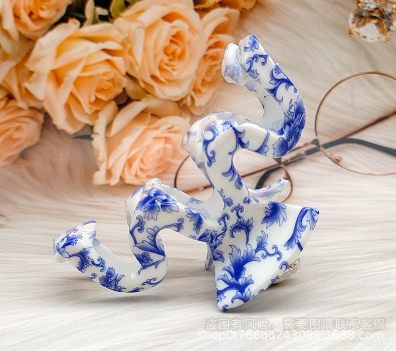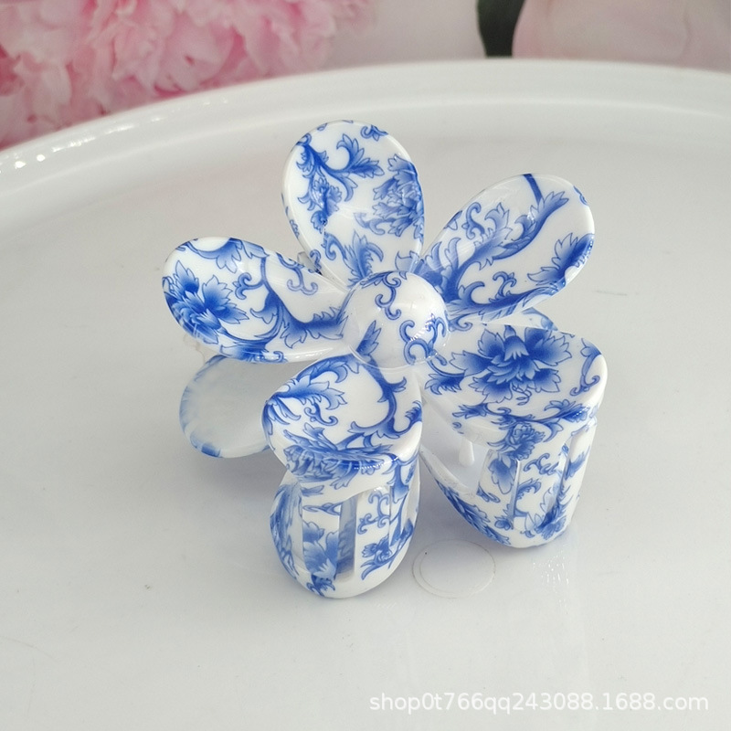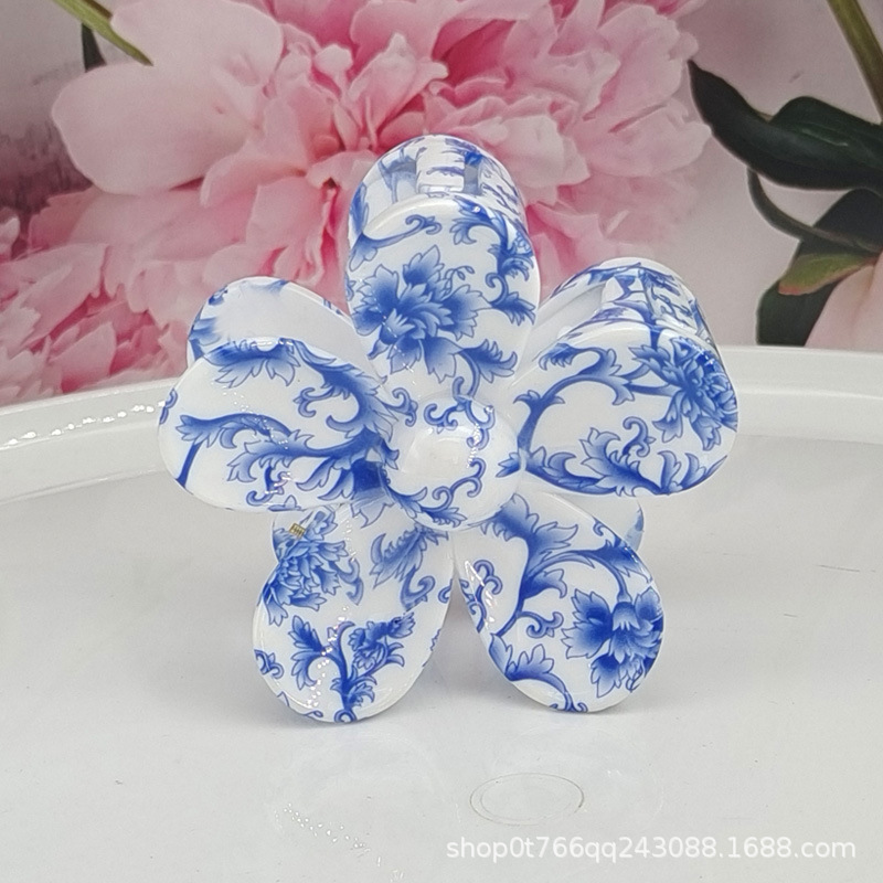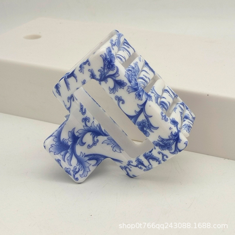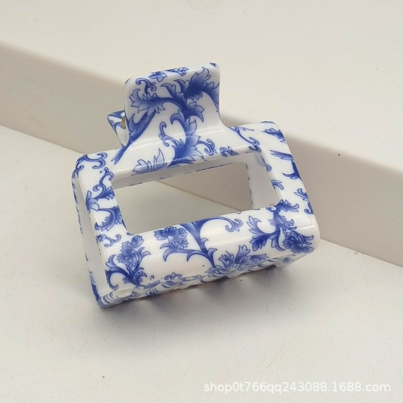 青花瓷抓夹印花塑料头饰欧美东南亚跨境外贸水转印抓夹Hairclaw