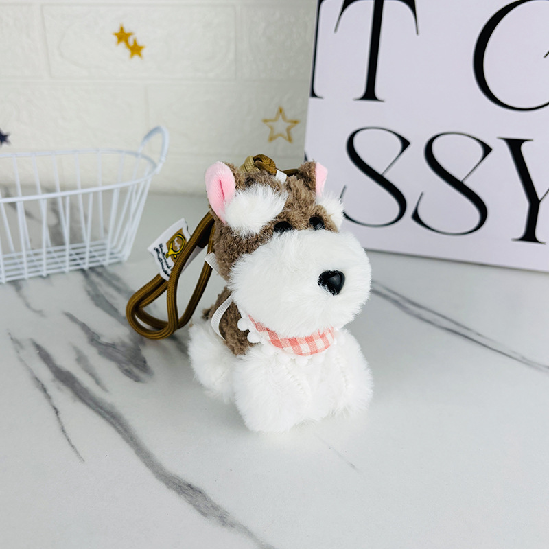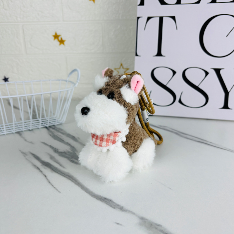 创意坐姿雪纳瑞毛绒玩偶可爱小狗钥匙扣背包挂件女生礼物娃娃机