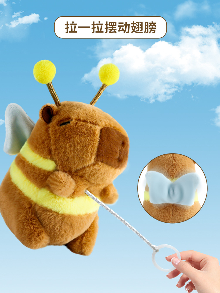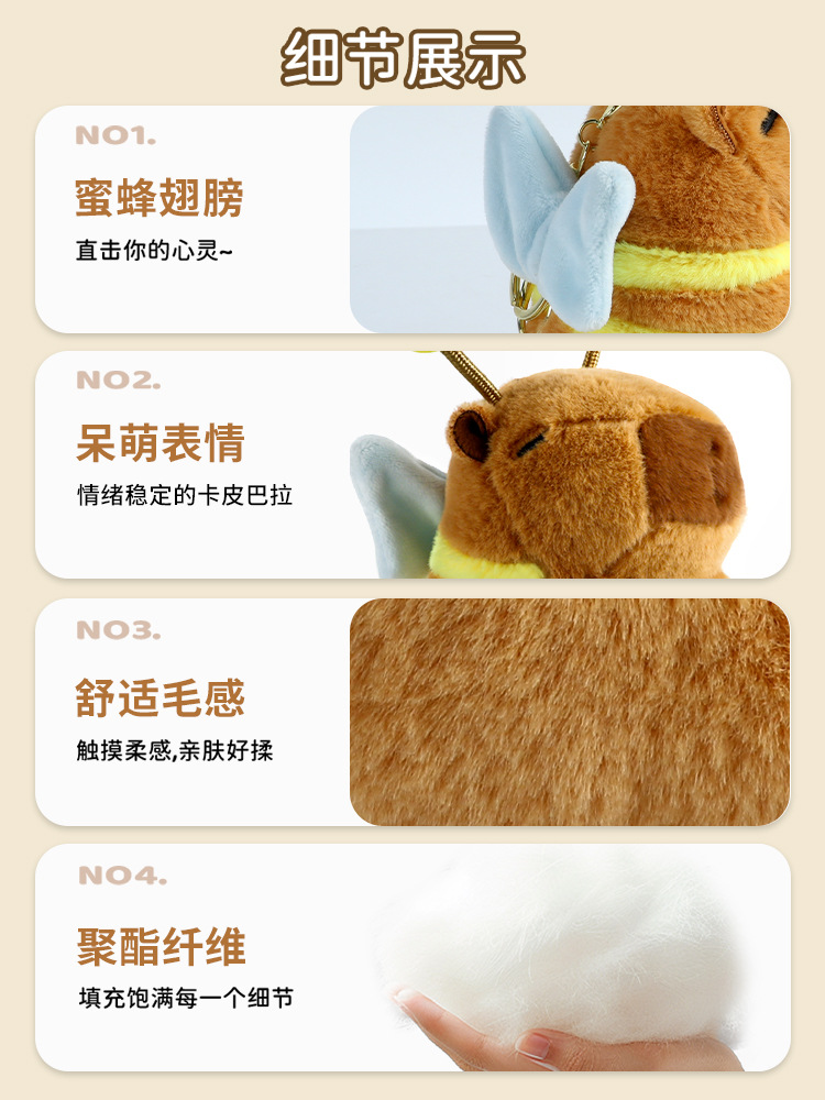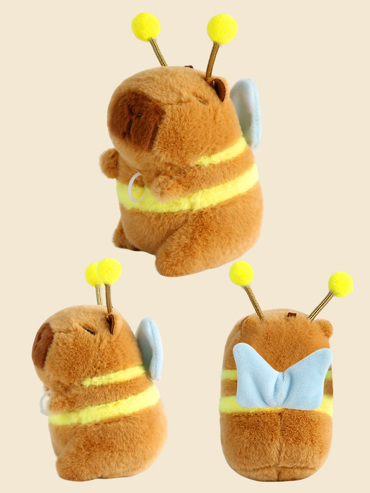 爆品批发 卡皮巴拉蜜蜂翅膀可动毛绒公仔玩偶背包挂饰钥匙扣代发