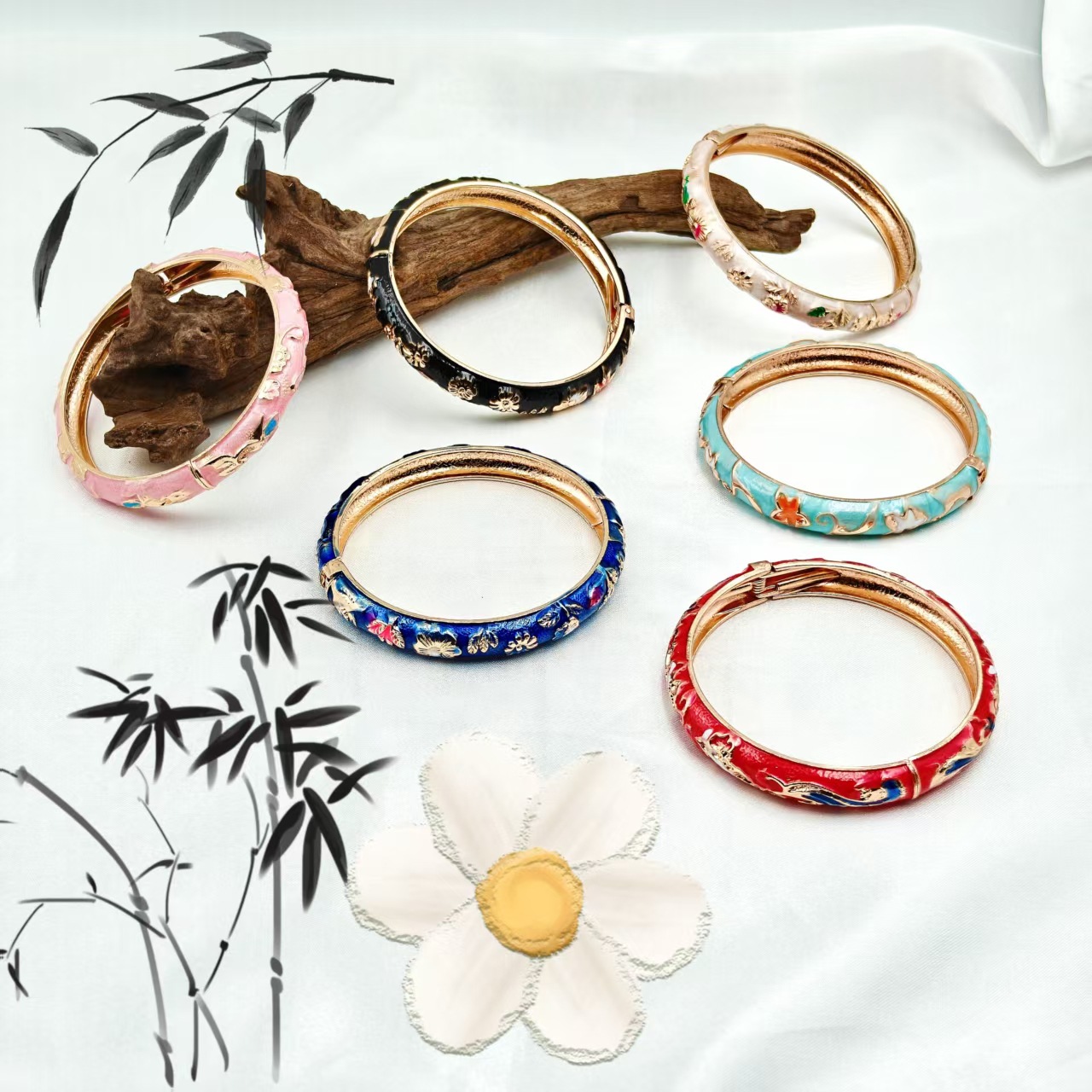 老北京景泰蓝手镯开口珐琅彩掐丝时尚故宫同款手环首饰云锦