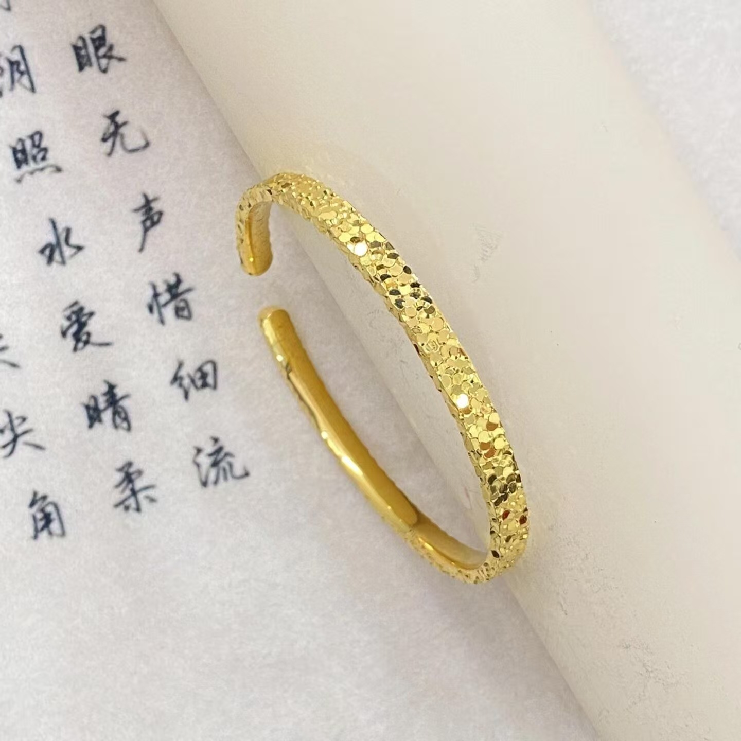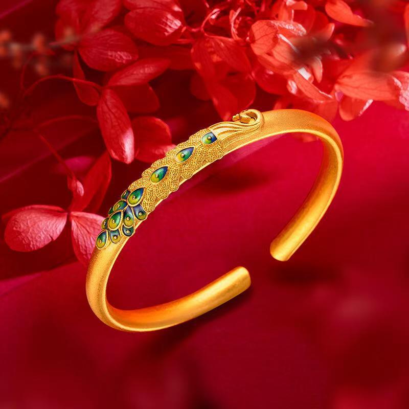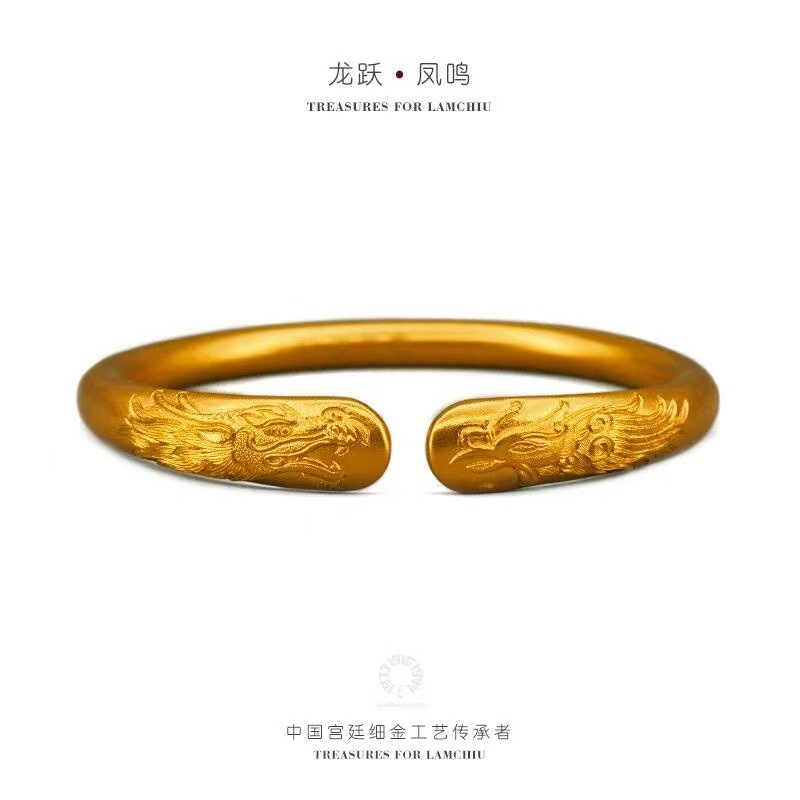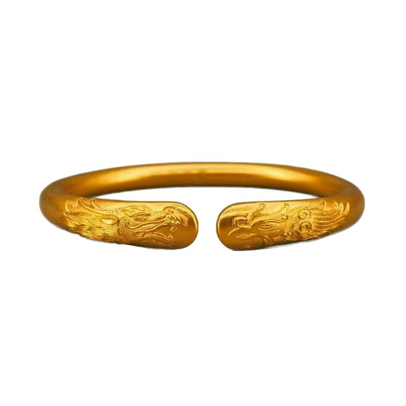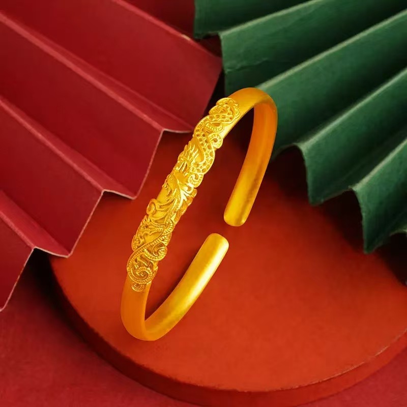 古法沙金素圈手镯龙跃凤鸣满天星碎冰冰爆款手镯送礼物轻奢潮流简
