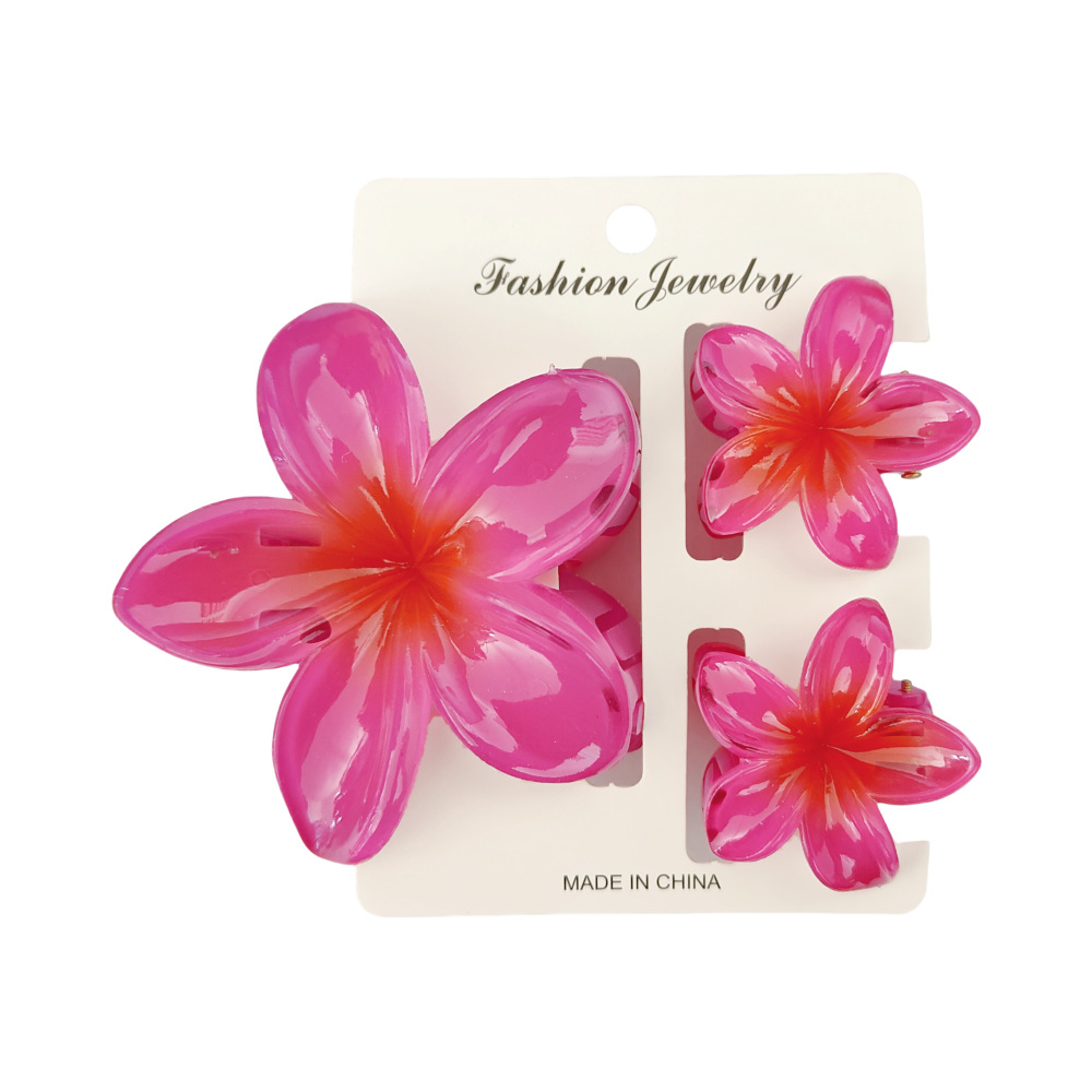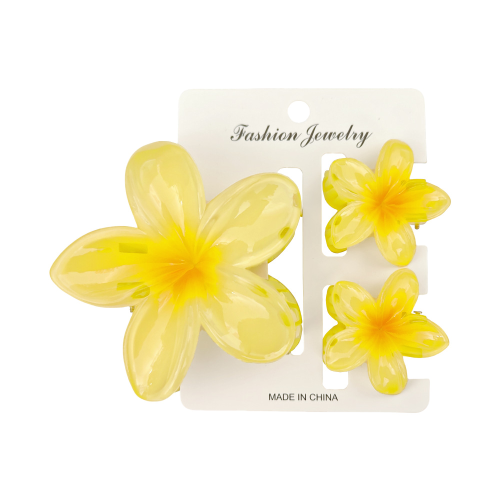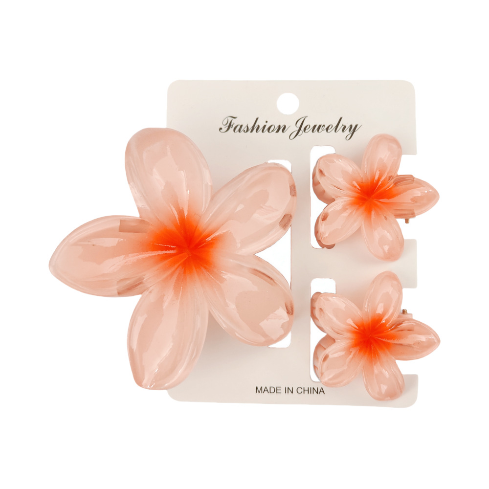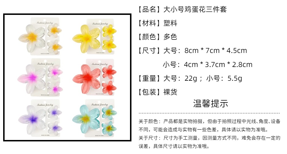 亚马逊热销鸡蛋花三件套抓夹欧美发饰大小号花朵发爪发卡成人发夹