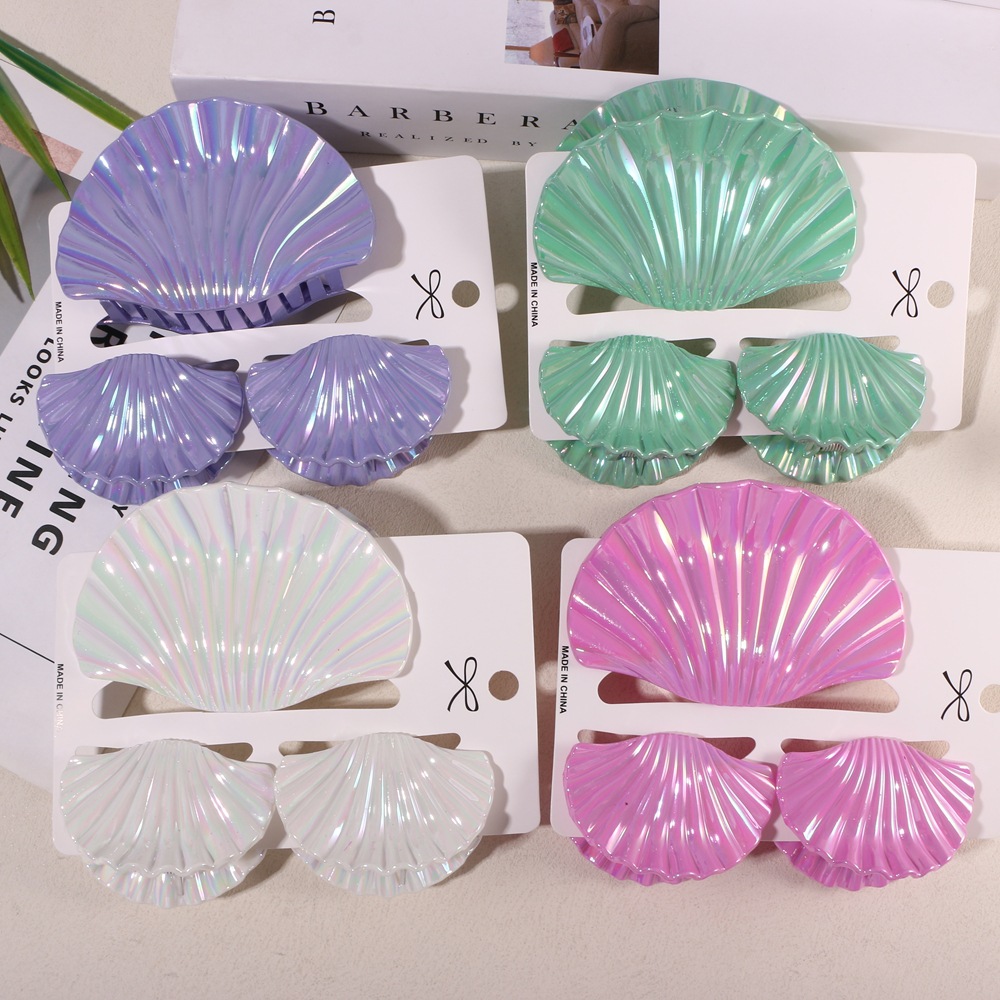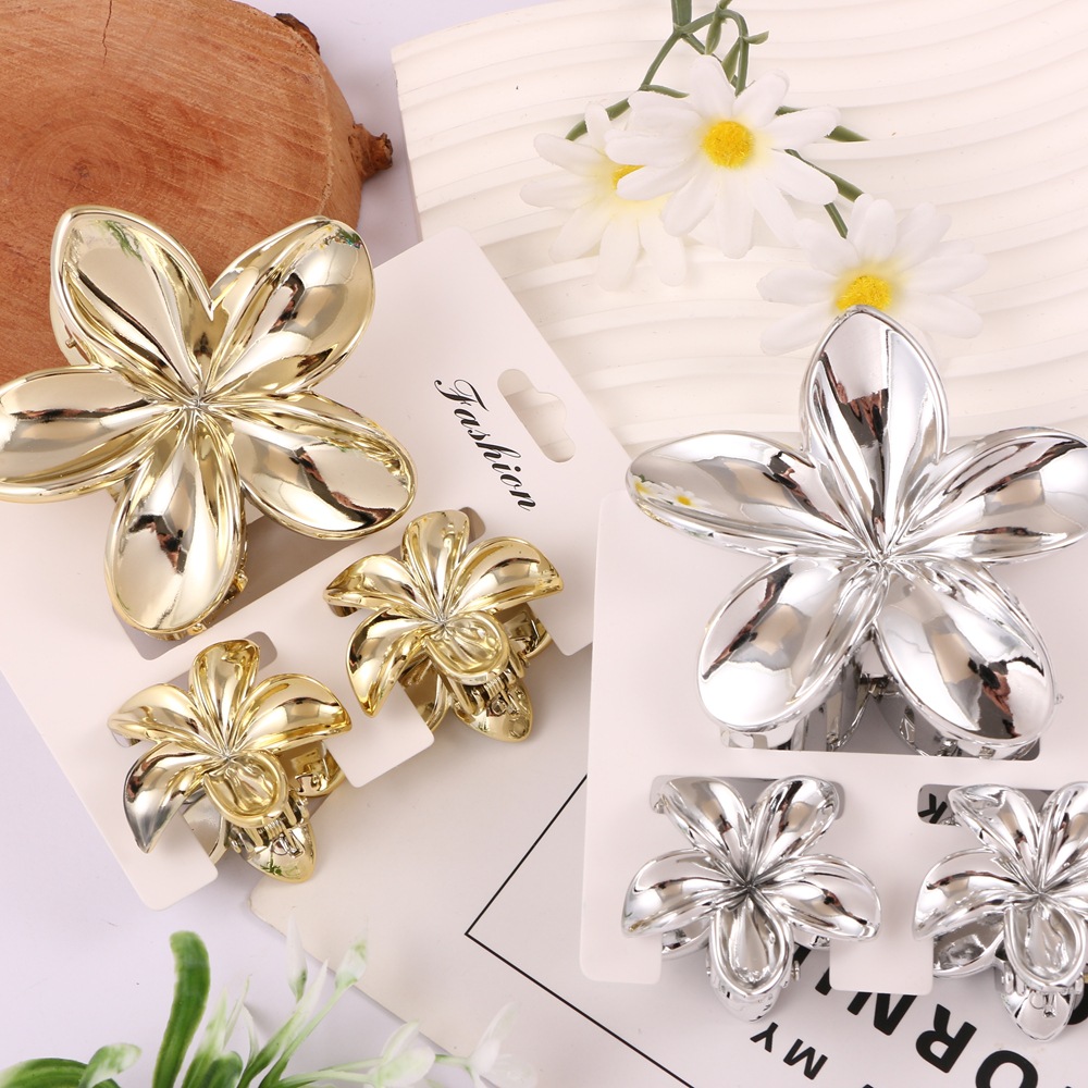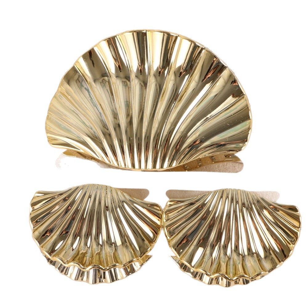 跨境新款鸡蛋花抓夹套装贝壳套装电镀抓夹套装鲨鱼夹盘发发饰