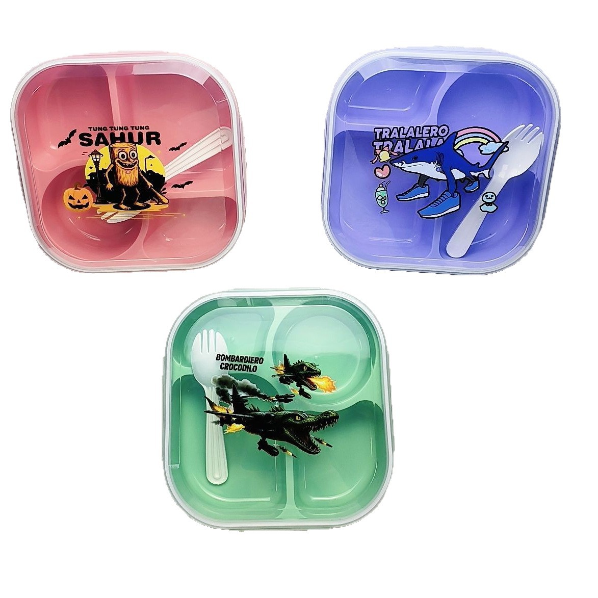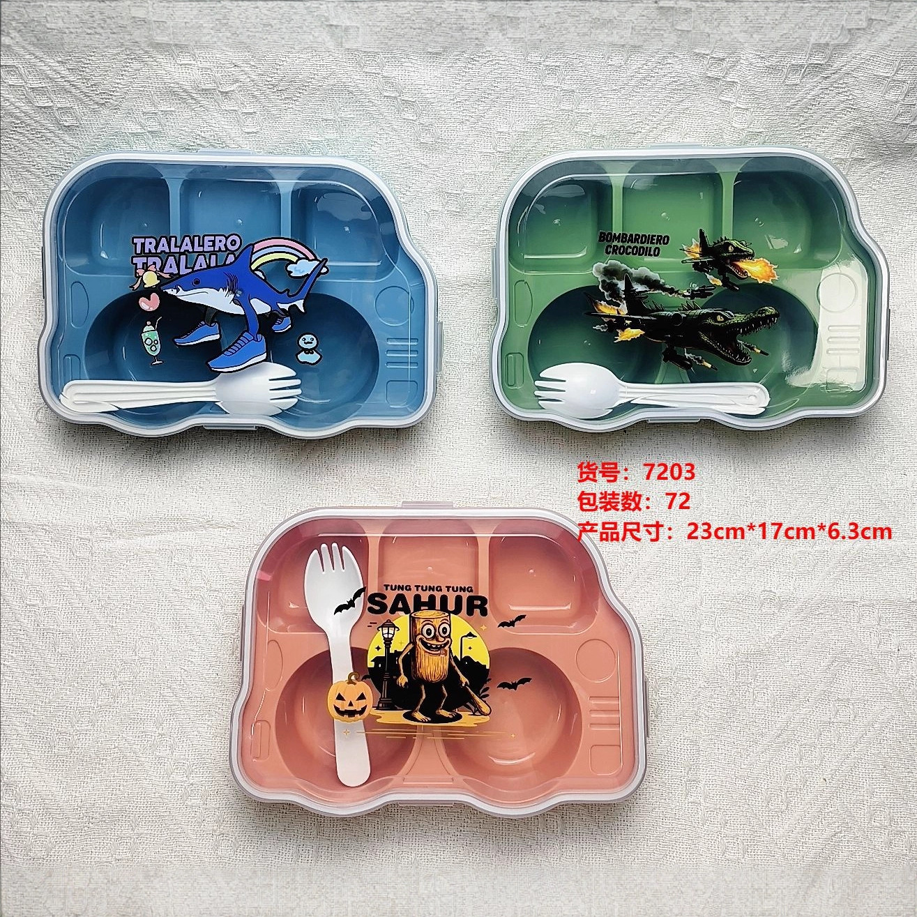儿童饭盒可爱造型分格饭盒山海经图案学生饭盒午餐盒便当盒保鲜盒