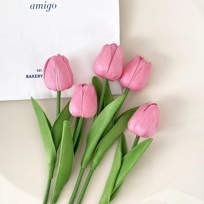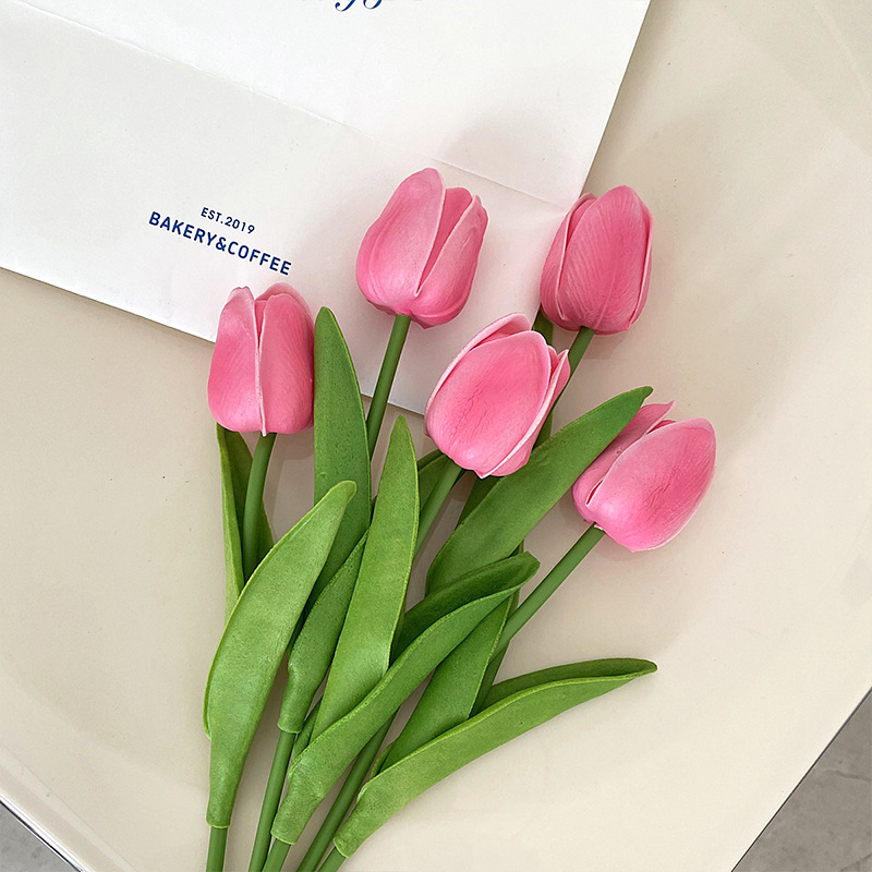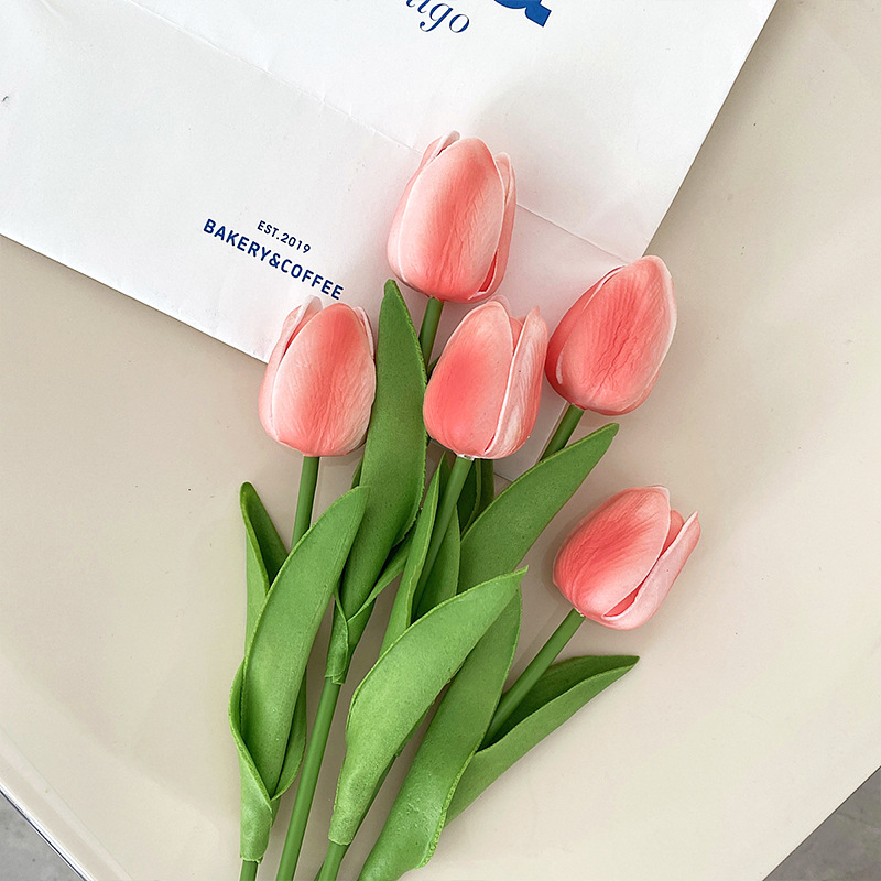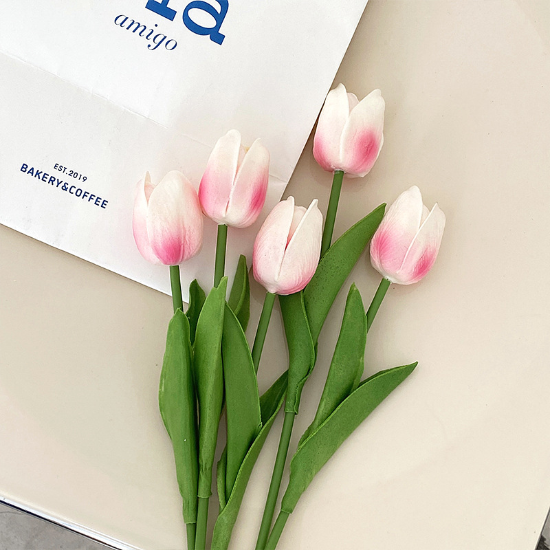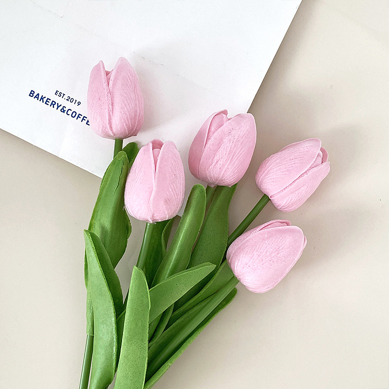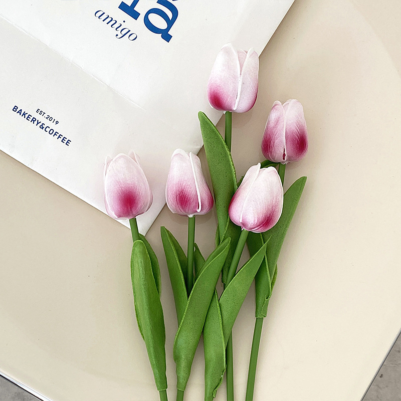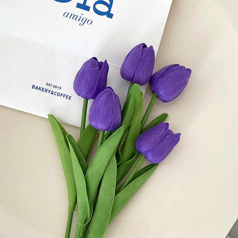 PU迷你郁金香仿真花假花束客厅装饰花餐桌花摆设花艺拍照花束批发