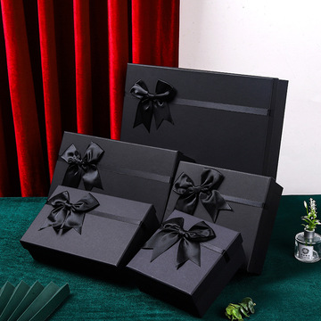 婚庆伴手礼盒黑色红色礼物盒长方形大号牛皮纸盒天地盖猴头包装盒