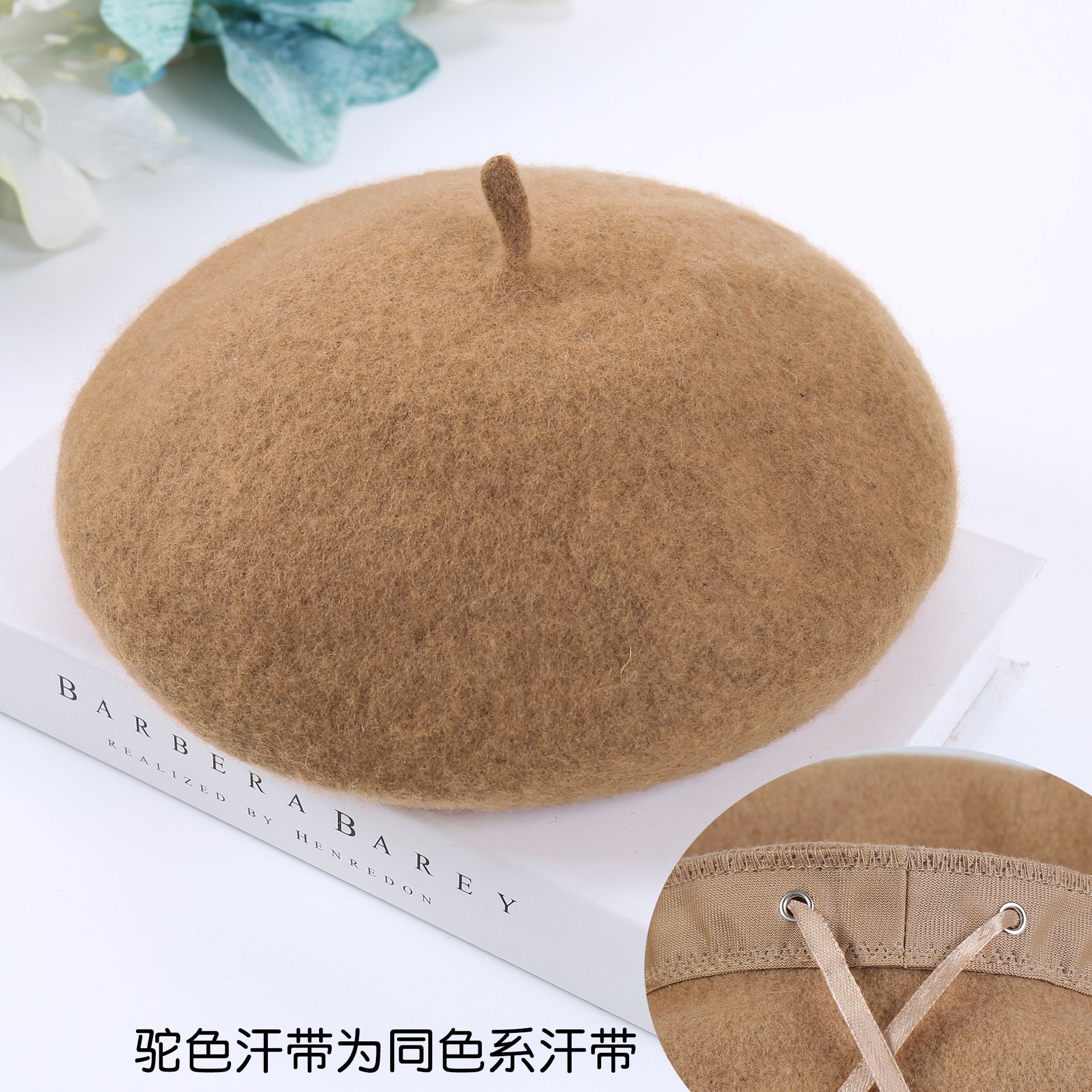 春秋冬季新款贝雷帽韩版蘑菇女士帽子透气南瓜帽羊毛呢画家帽