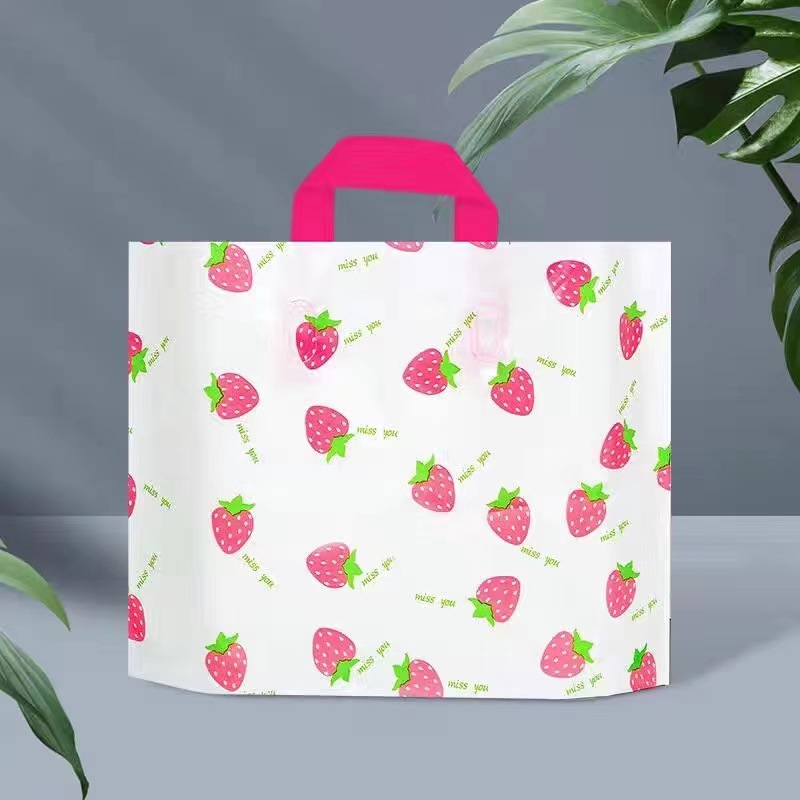 服装店外套手提塑料礼品袋字母草莓气质女装店牛仔裤袋子商用批发