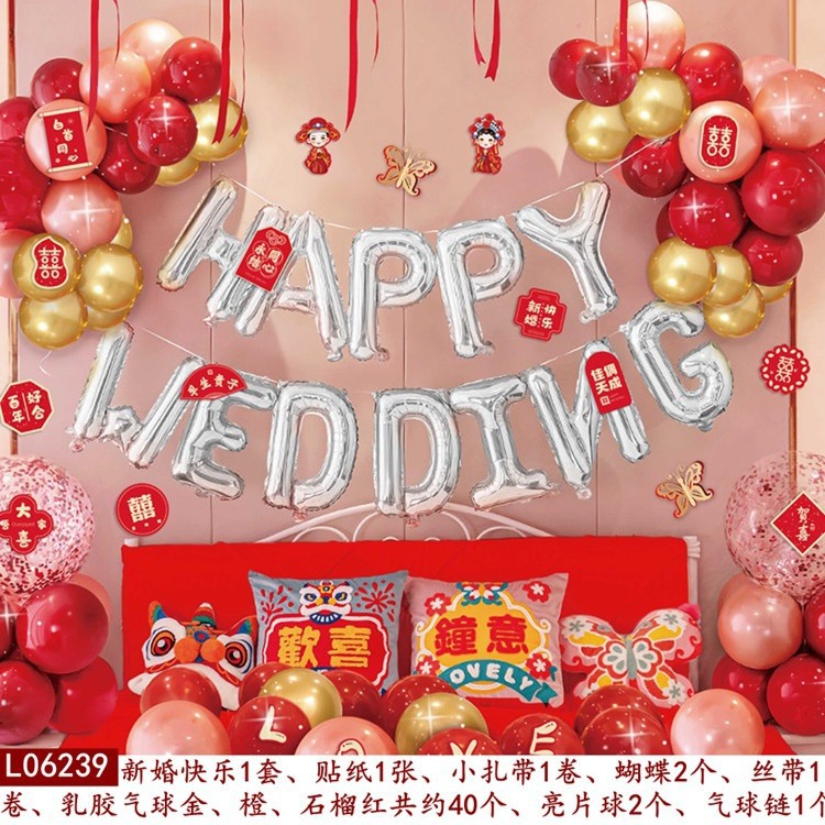 婚庆结婚气球套装批发婚房装饰气球套装婚礼新房卧室布置乳胶气球