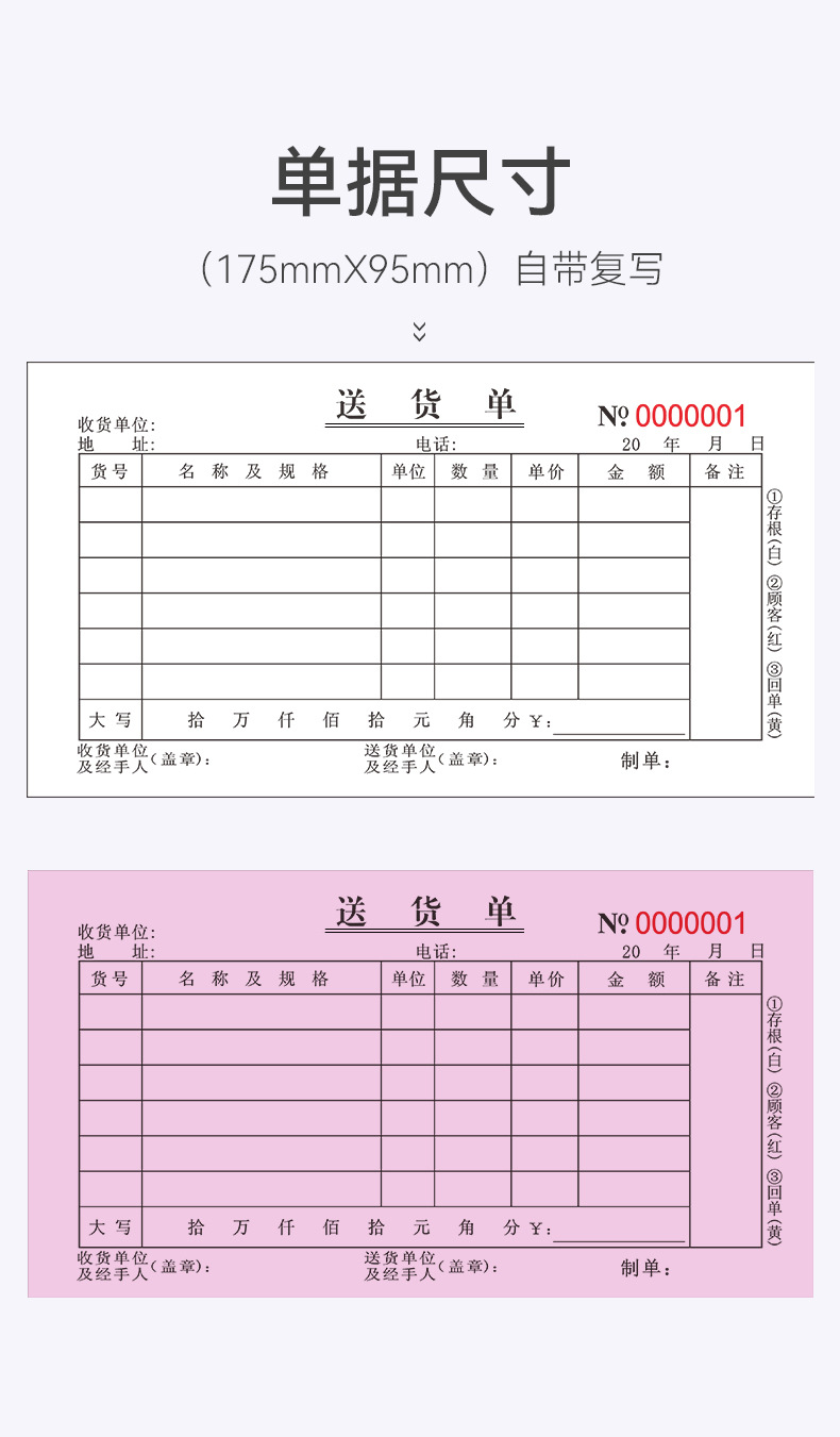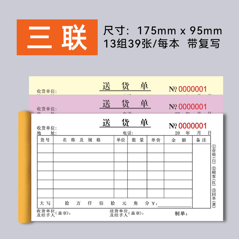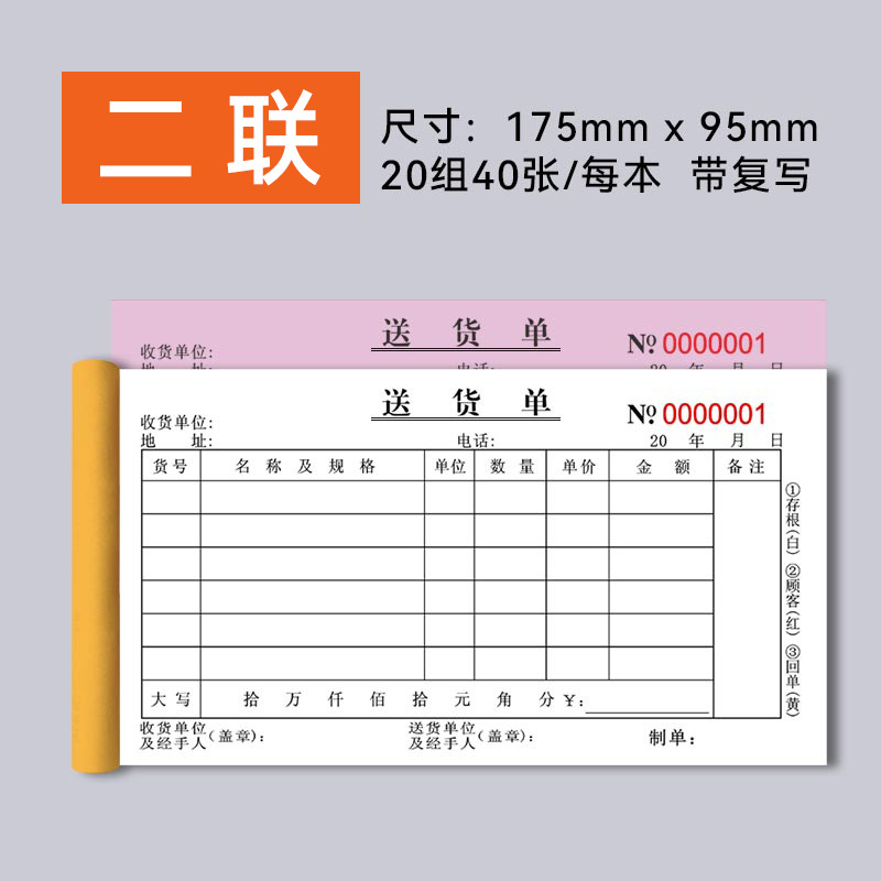 赞航送货单两联发货单三联单本二联销售清单无碳复写本2联3联批发