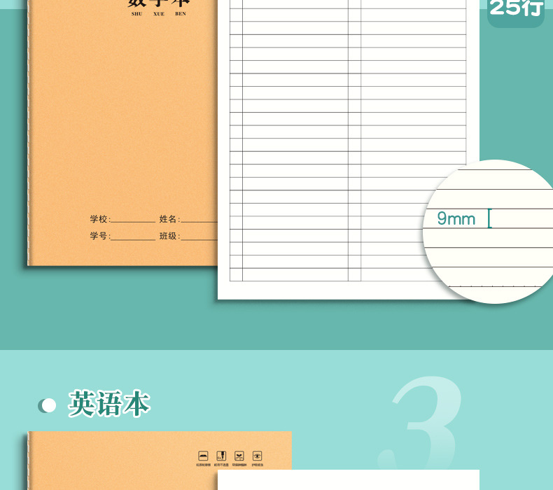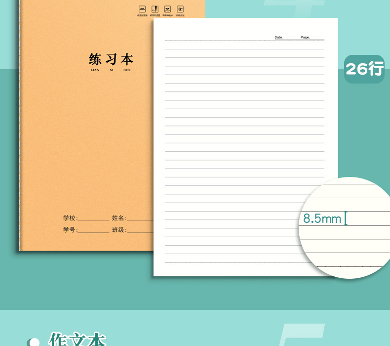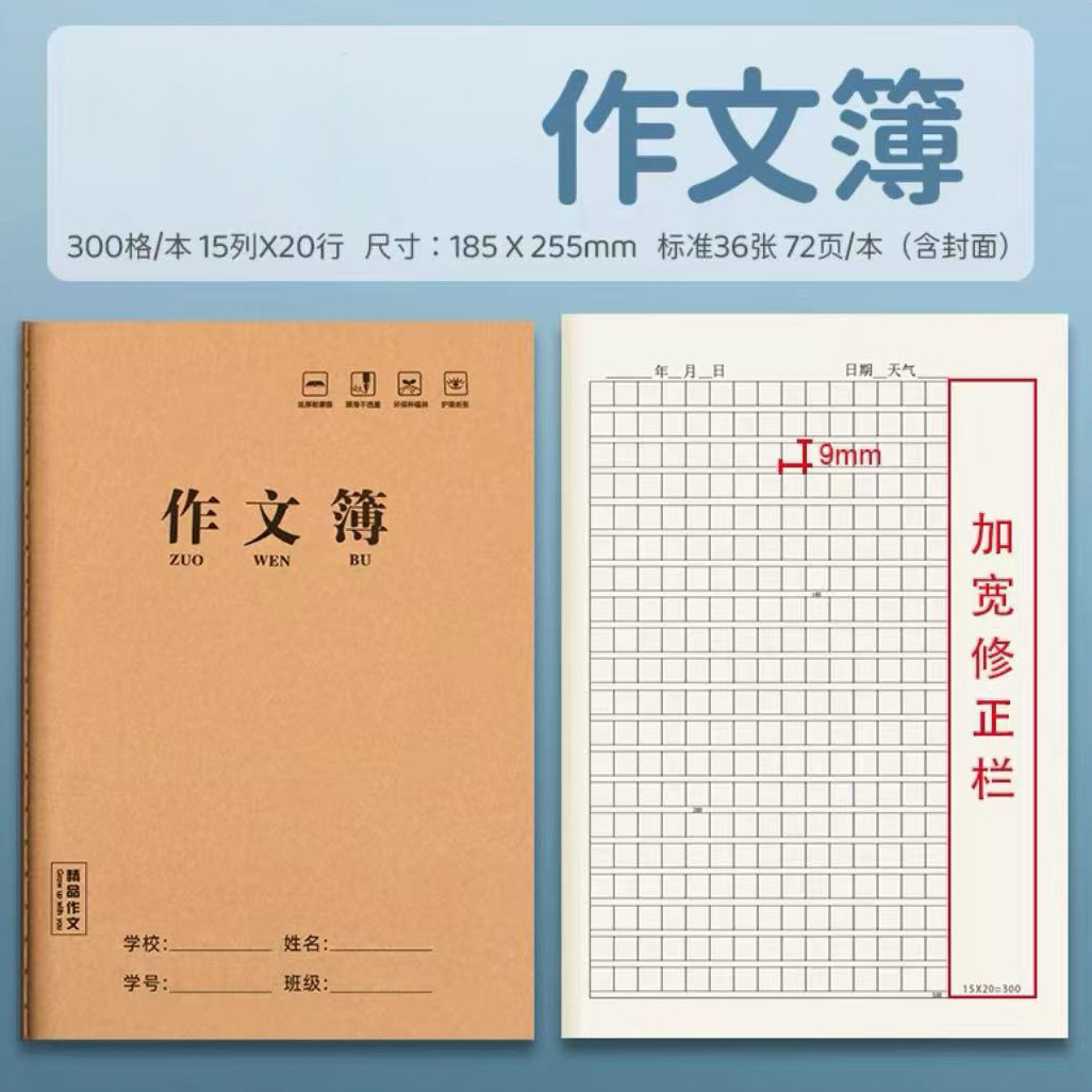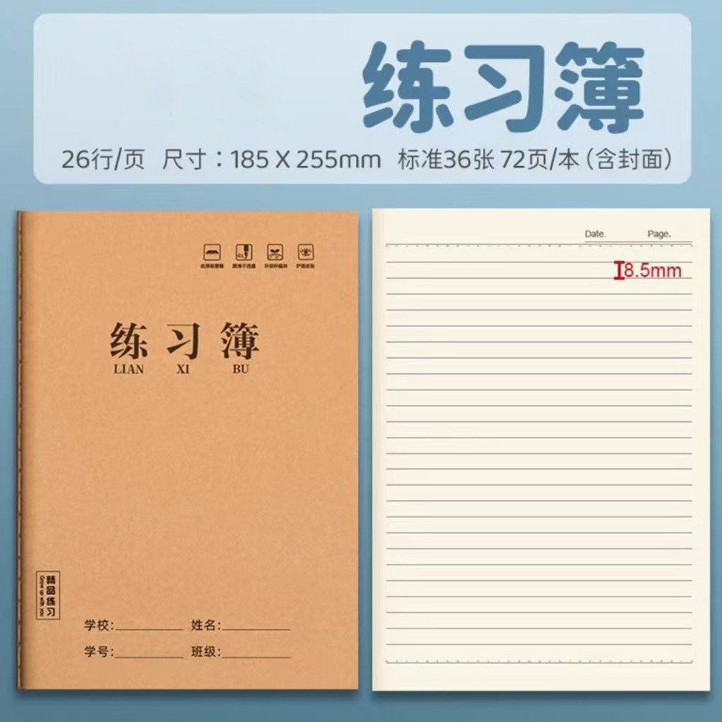 16K本子作业本小学生作文语文初中生加厚三年级三到六年级牛皮纸