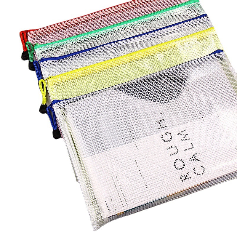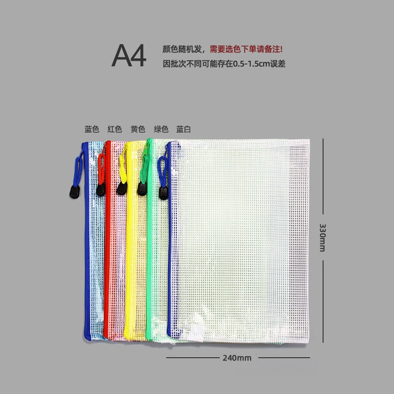 透明文件袋加厚网格B4拉链防水办公资料档案收纳学生试卷素描A3袋