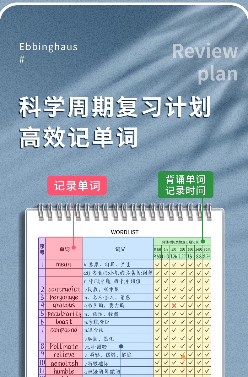 四季年华艾宾浩斯日英语单词记忆本B5初中高中单词本生词本子批发