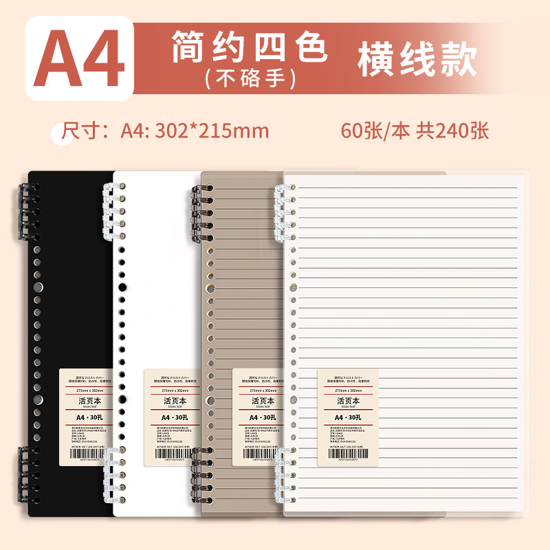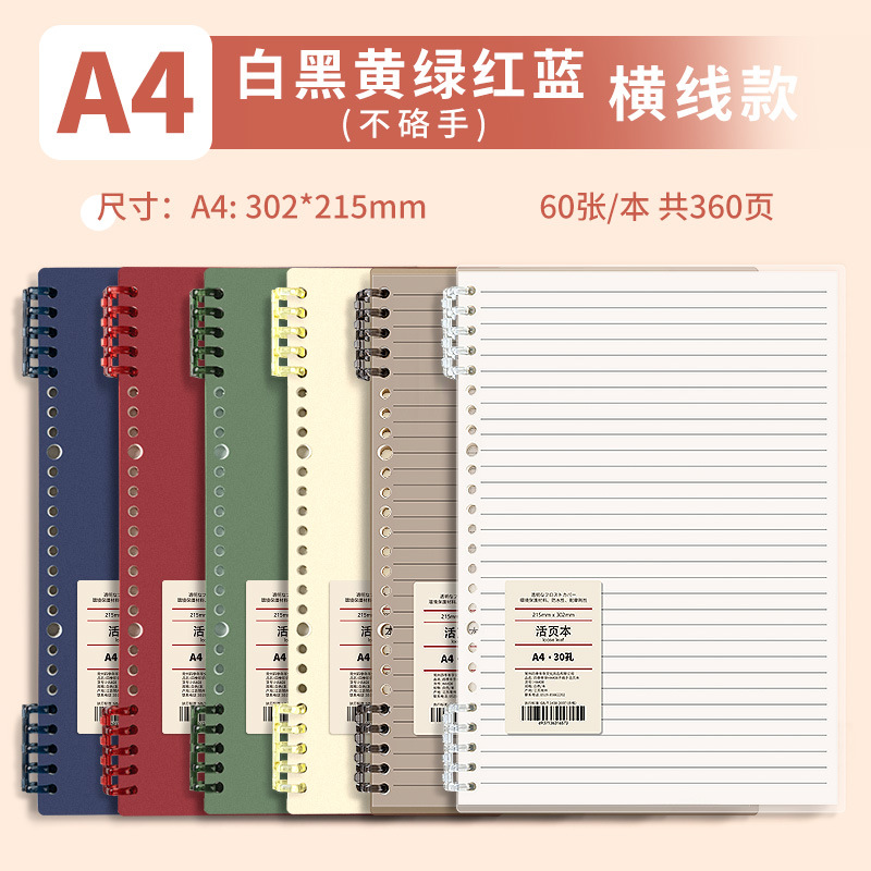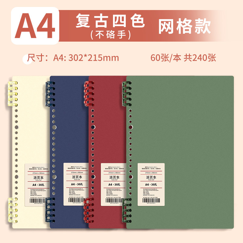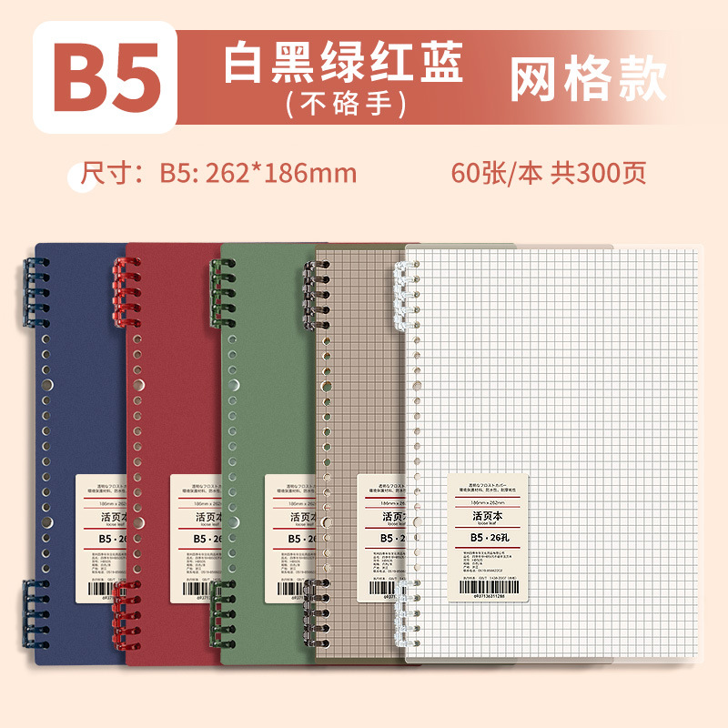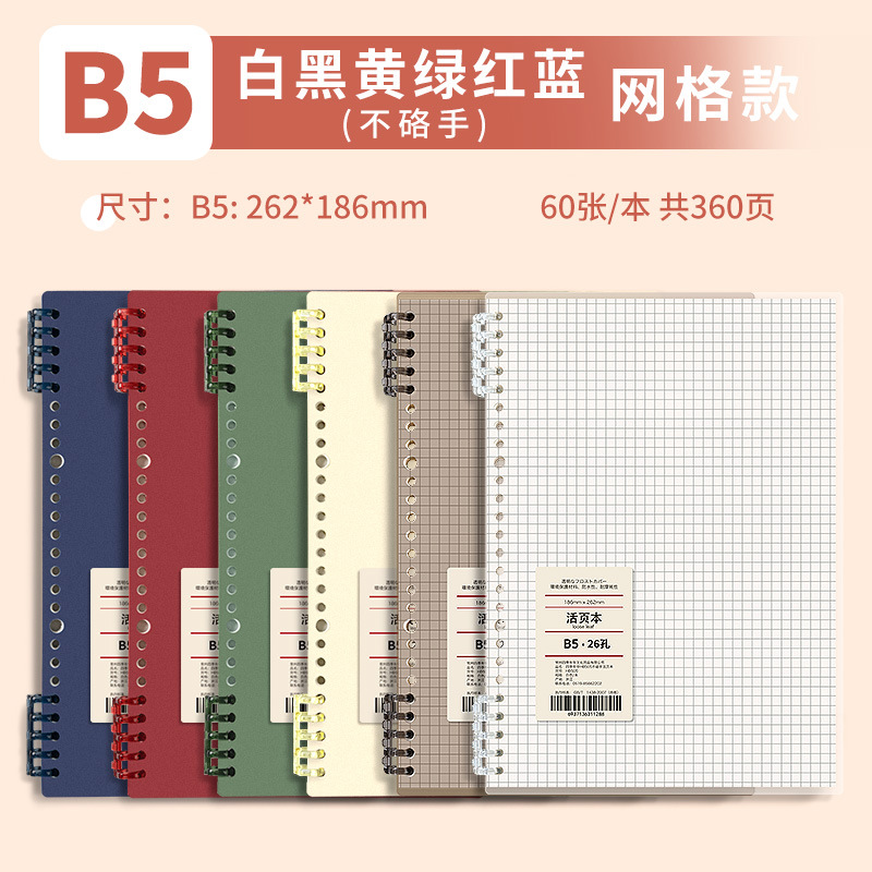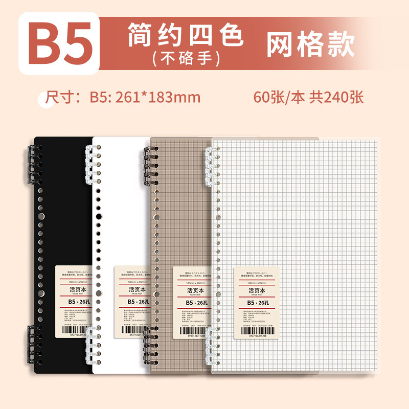 四季年华B5活页本可拆卸笔记本简约加厚a4方格网格本a5记事本批发
