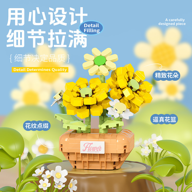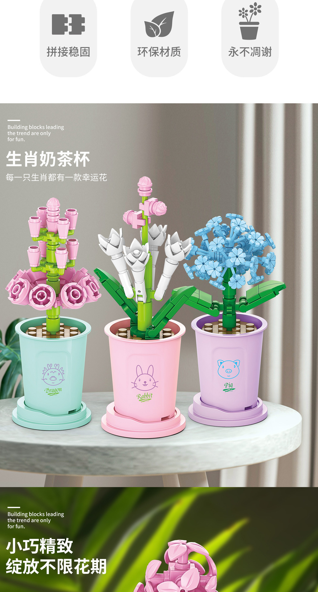 开学礼物小颗粒自由拼装积木花束兼容乐高儿童玩具学生奖励小礼品