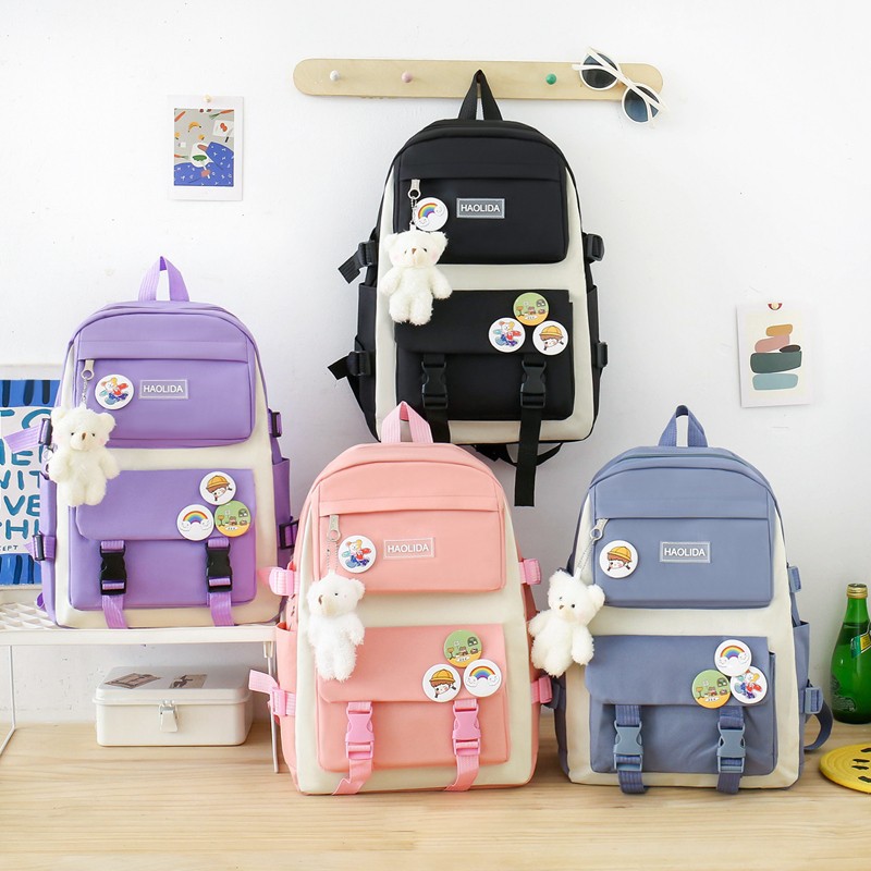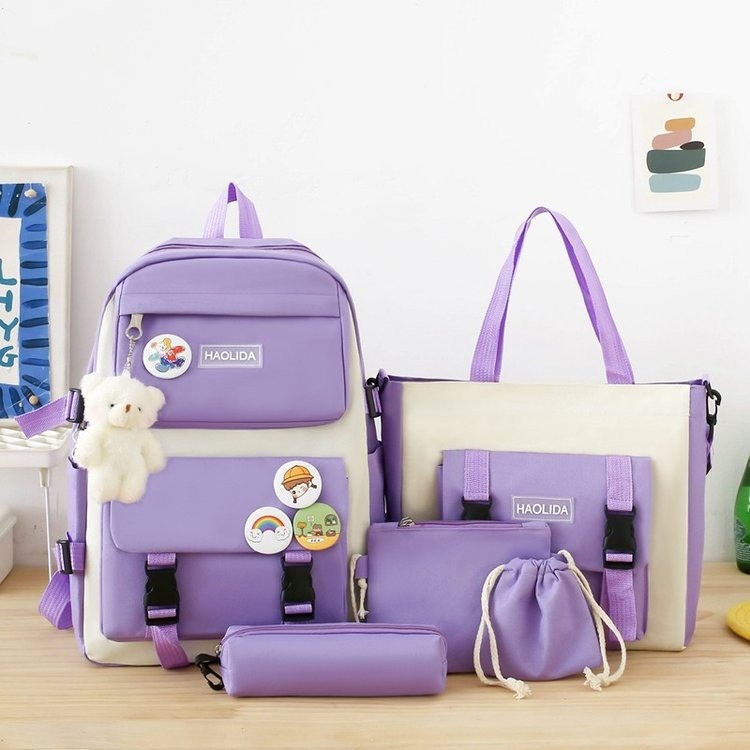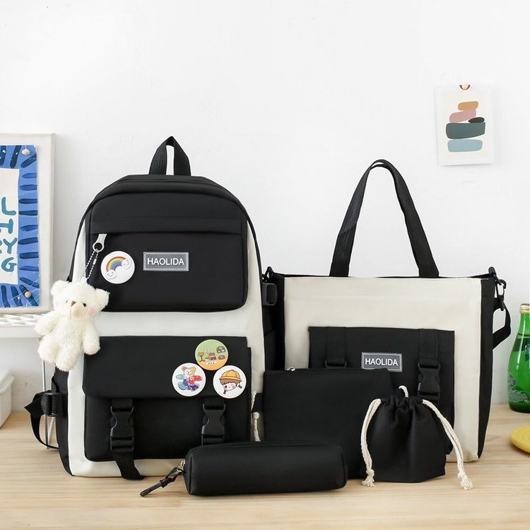 双肩包四件套2024新款书包韩版简约学院风背包大容量牛津布外贸