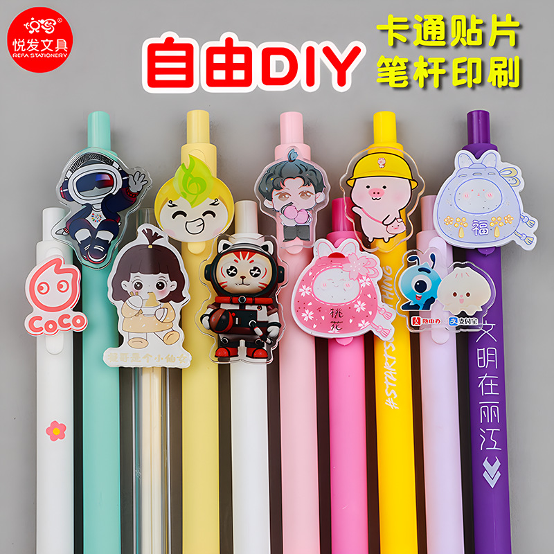 创意DIY亚克力贴片按动中性笔定制logo水笔卡通软胶PVC公仔签字笔