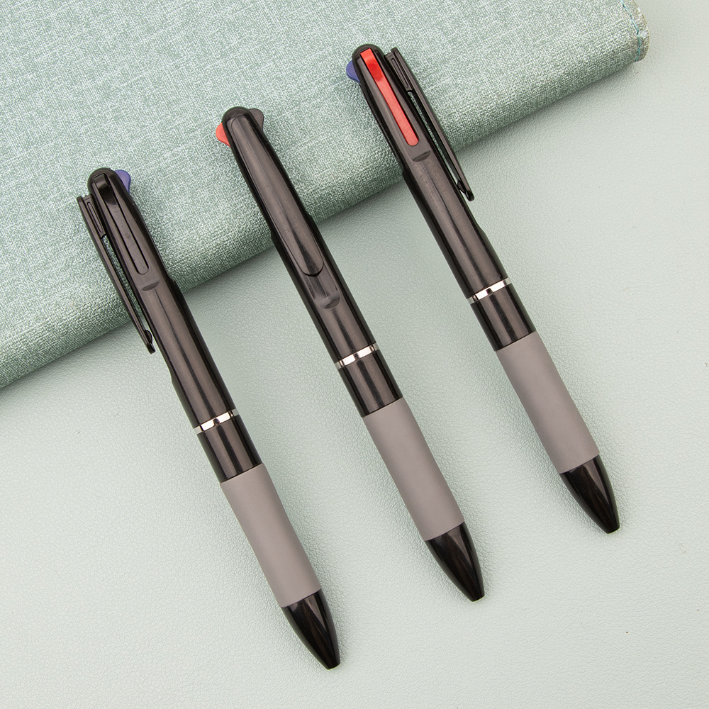现货三色笔多色圆珠笔印刷logo按动多色油笔多用途广告多色笔