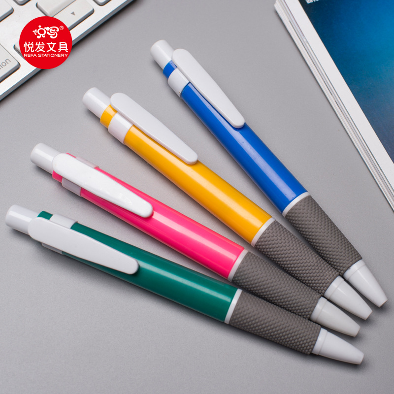 现货520圆珠笔印刷logo 商务办公礼品笔 塑料按压油笔 广告笔批发