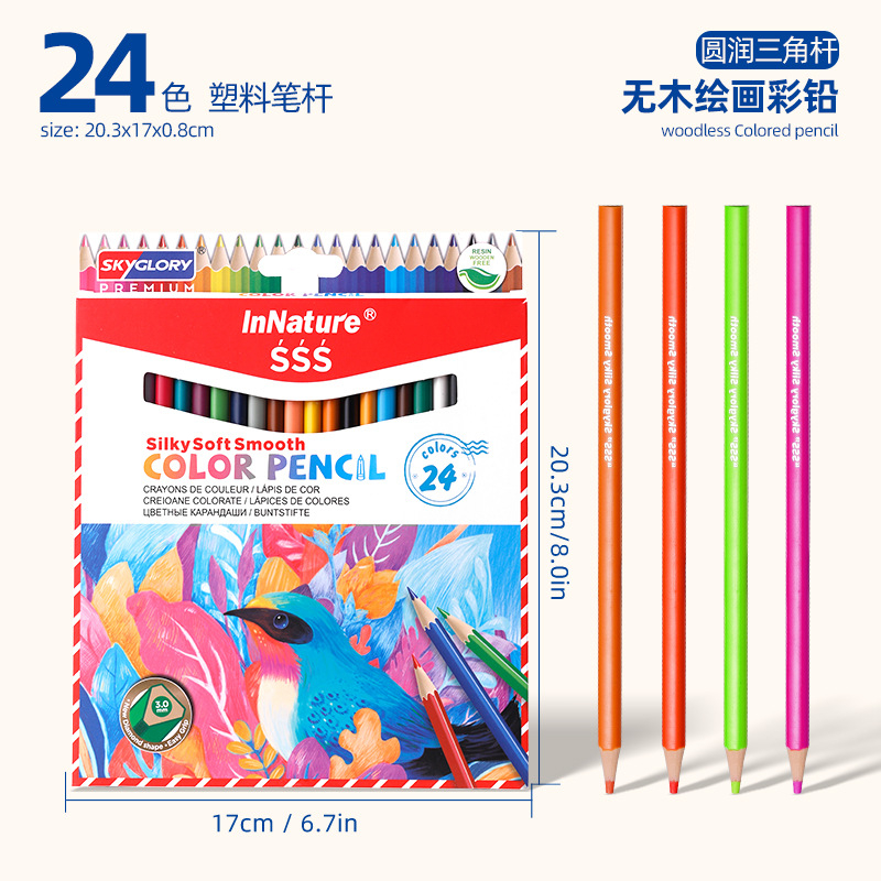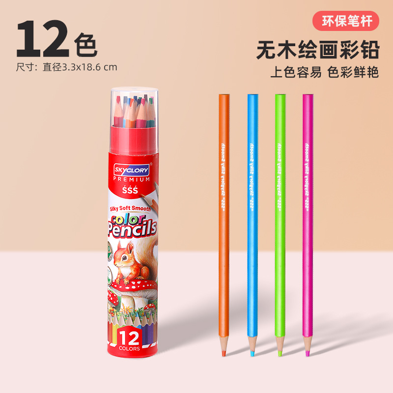 跨境塑料彩色铅笔批发学生专用绘画铅笔套装油性彩铅儿童美术用品