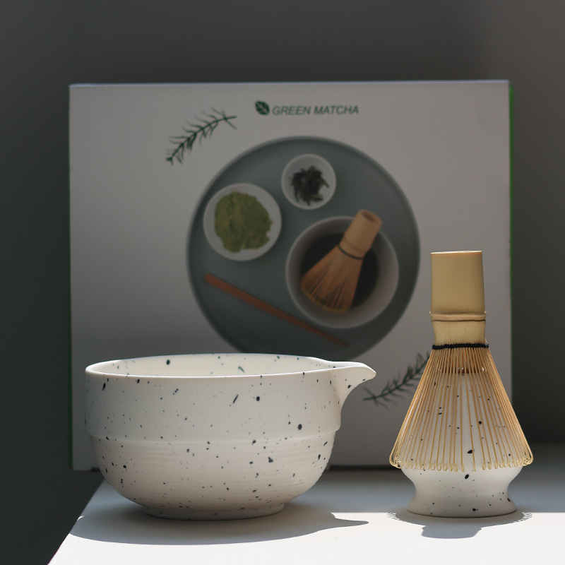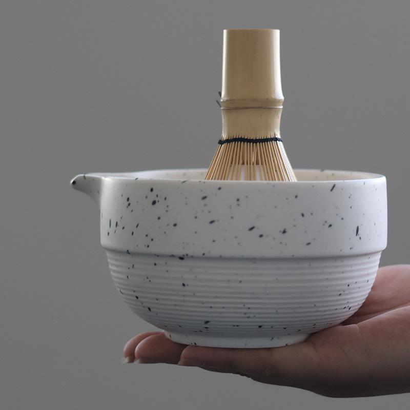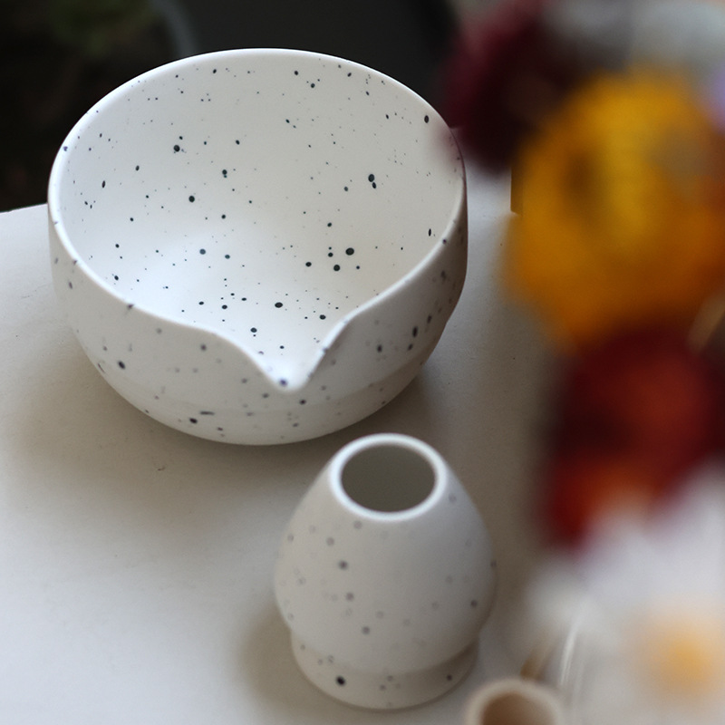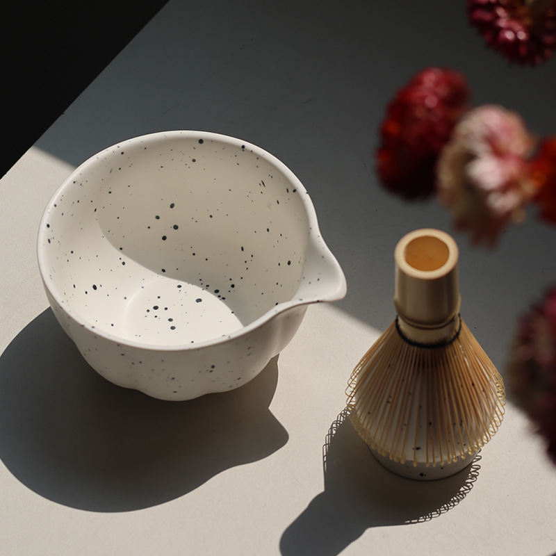 Japanese Matcha Tea Set 日式喷点哑光白釉 抹茶碗茶具套装
