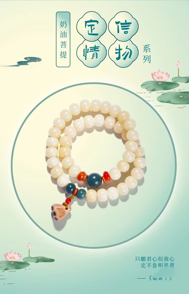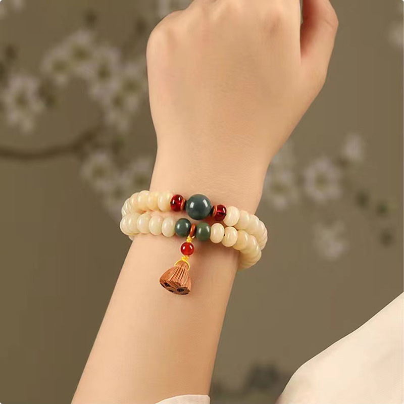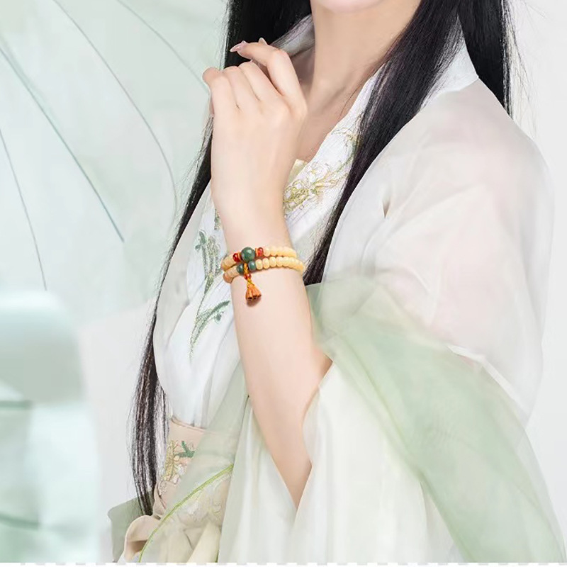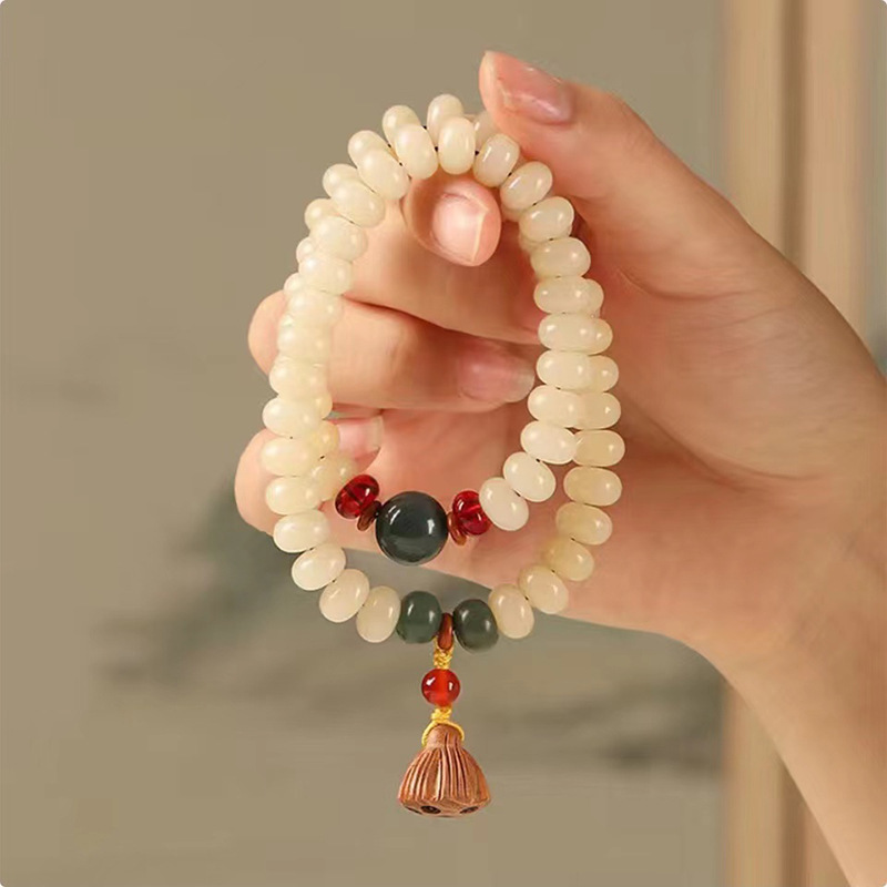 奶油黄玉化菩提根手串男女款双圈文玩莲蓬手链佛珠文玩菩提算盘珠
