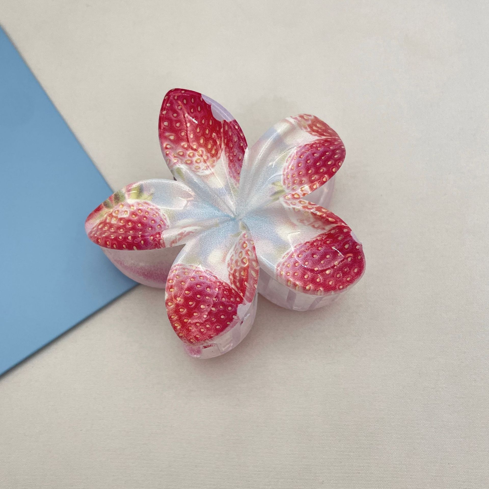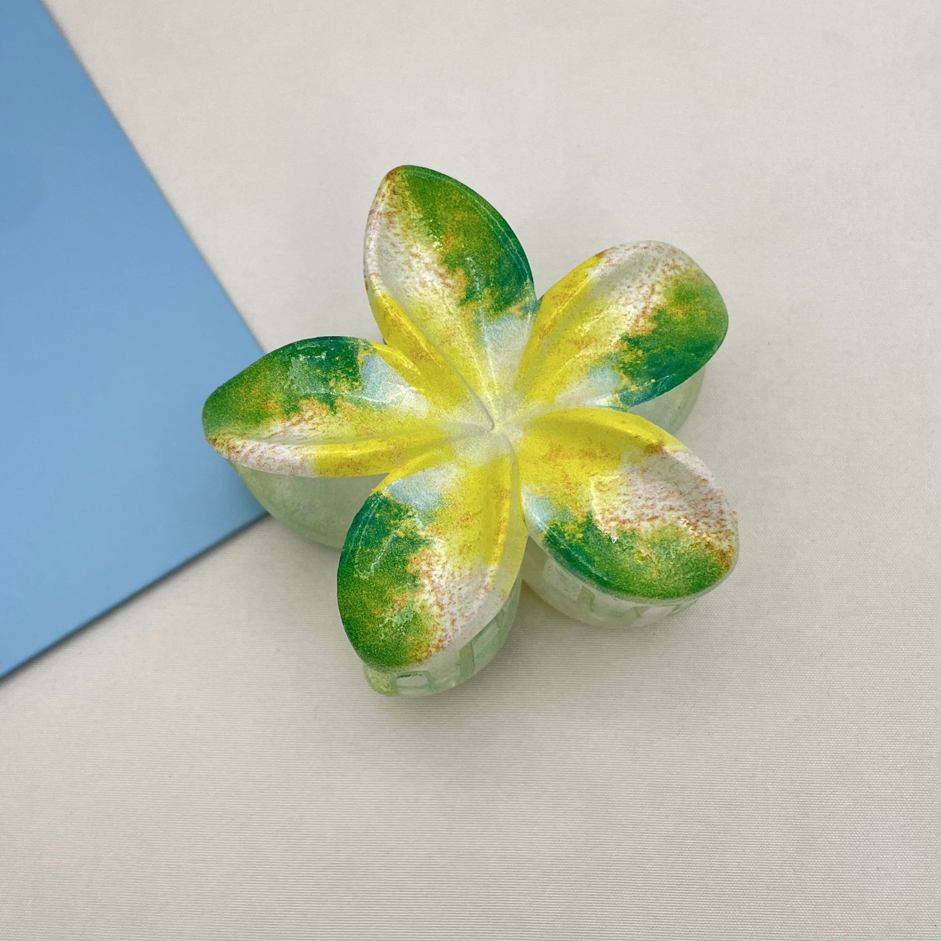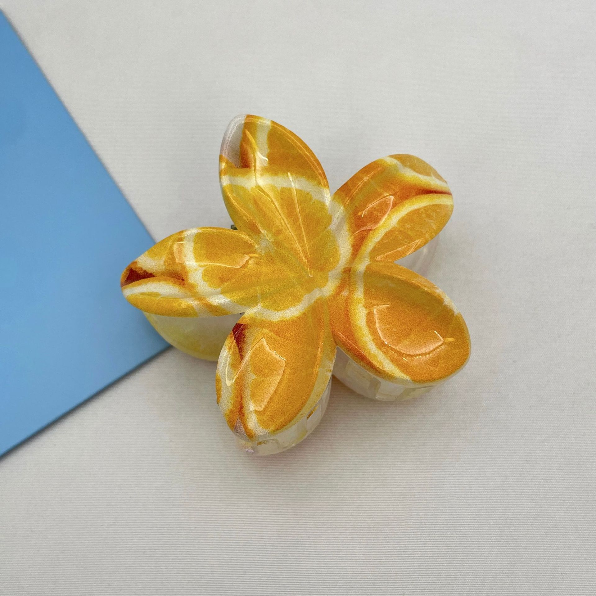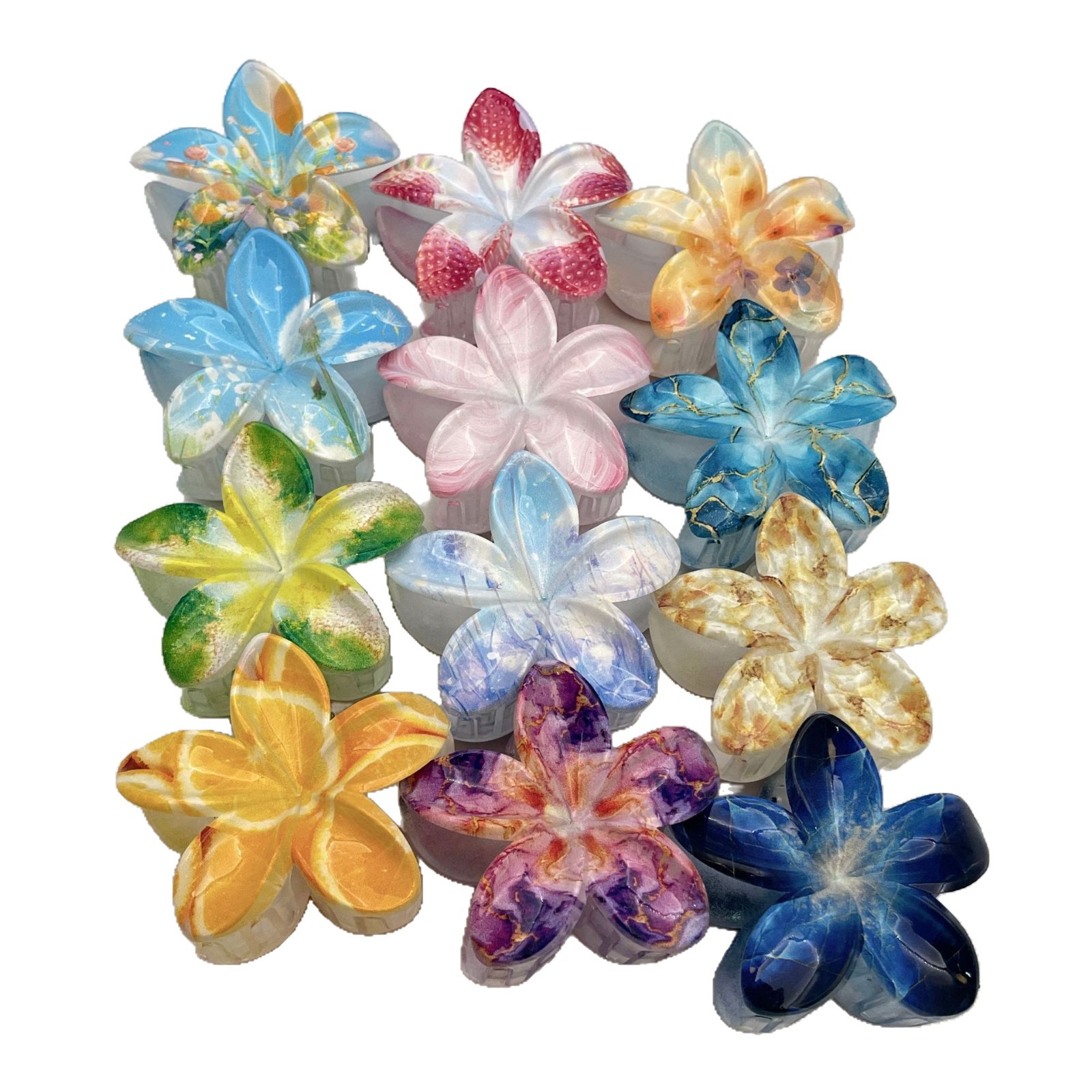 跨境爆款印花鸡蛋花发夹新款海边度假花朵抓夹鲨鱼夹