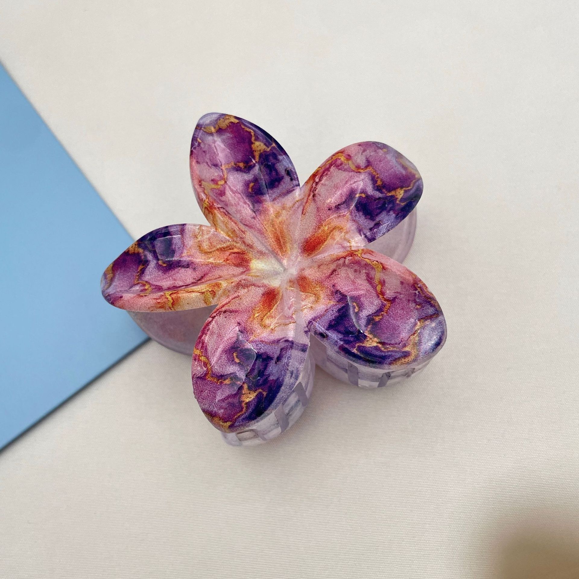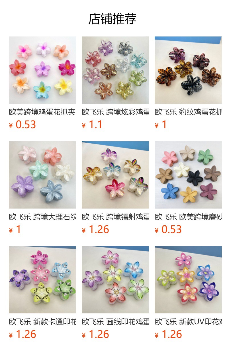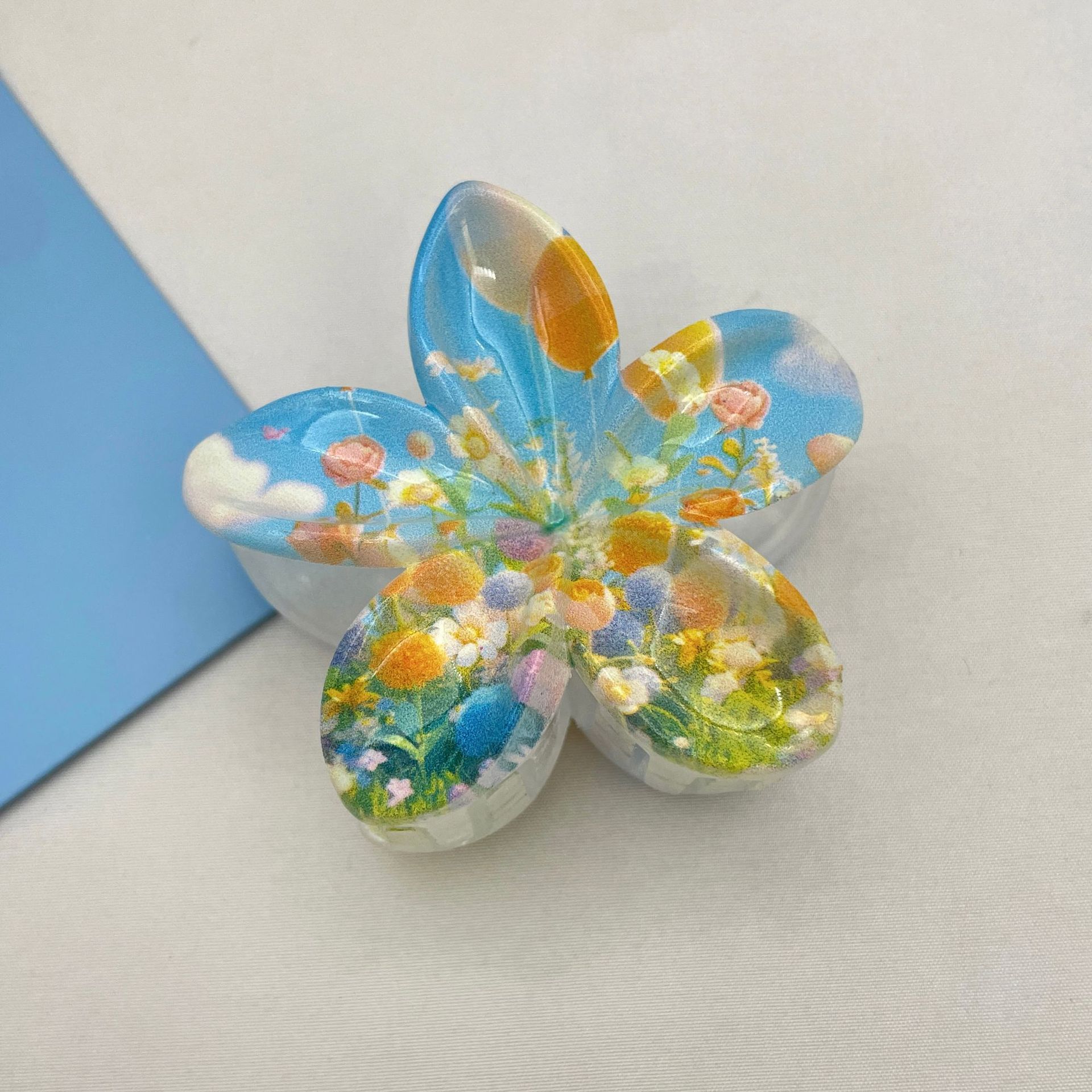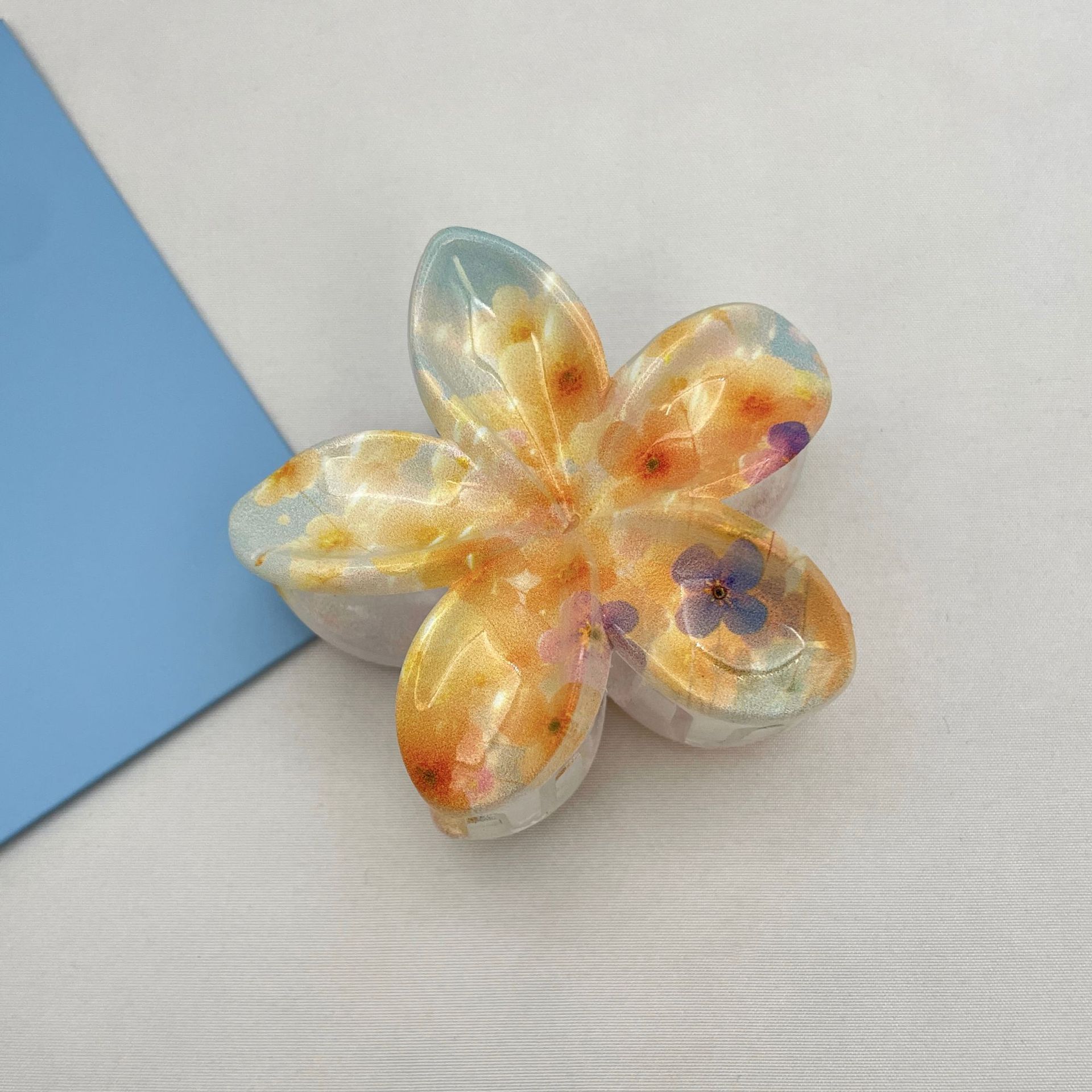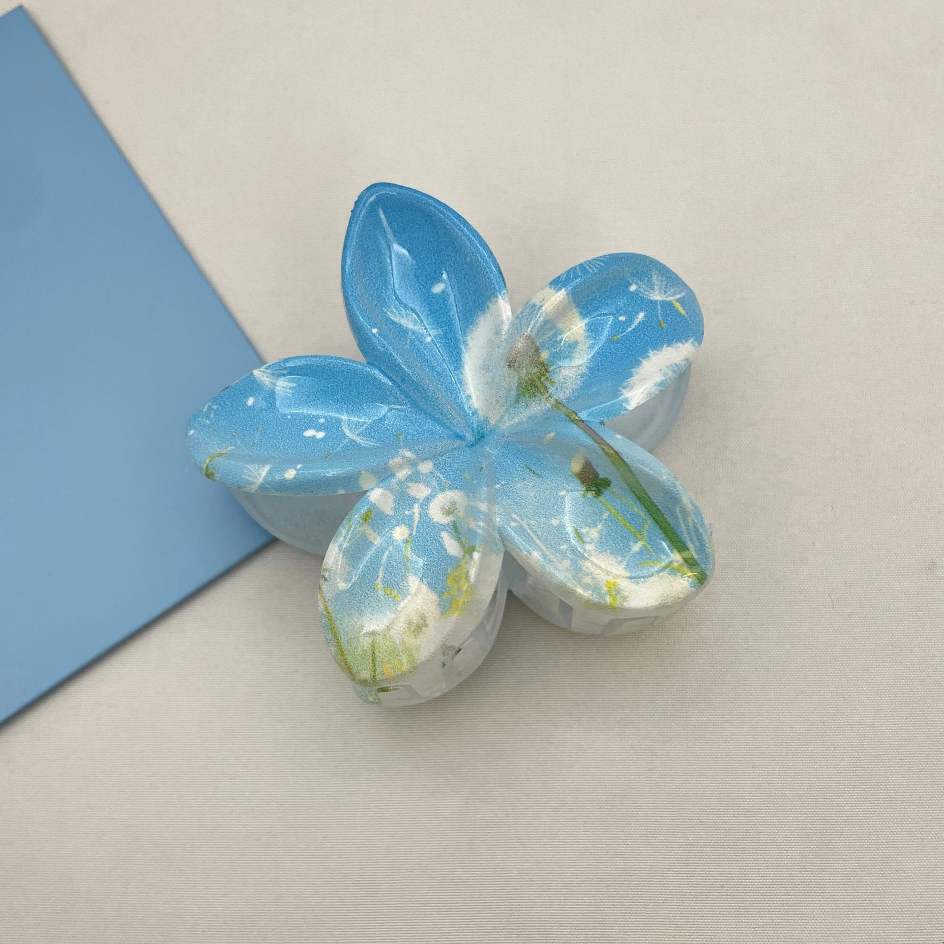 跨境爆款印花鸡蛋花发夹新款海边度假花朵抓夹鲨鱼夹