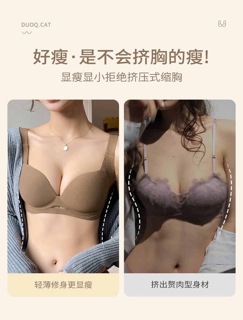 薄内衣女小胸聚拢显大舒适专用文胸无痕固定杯收副乳防下垂胸罩
