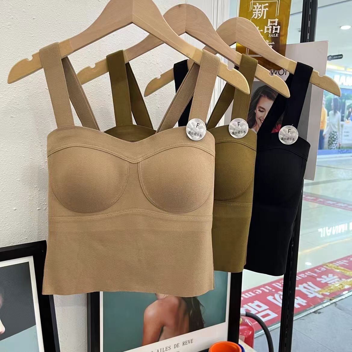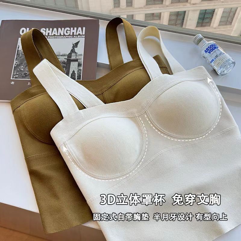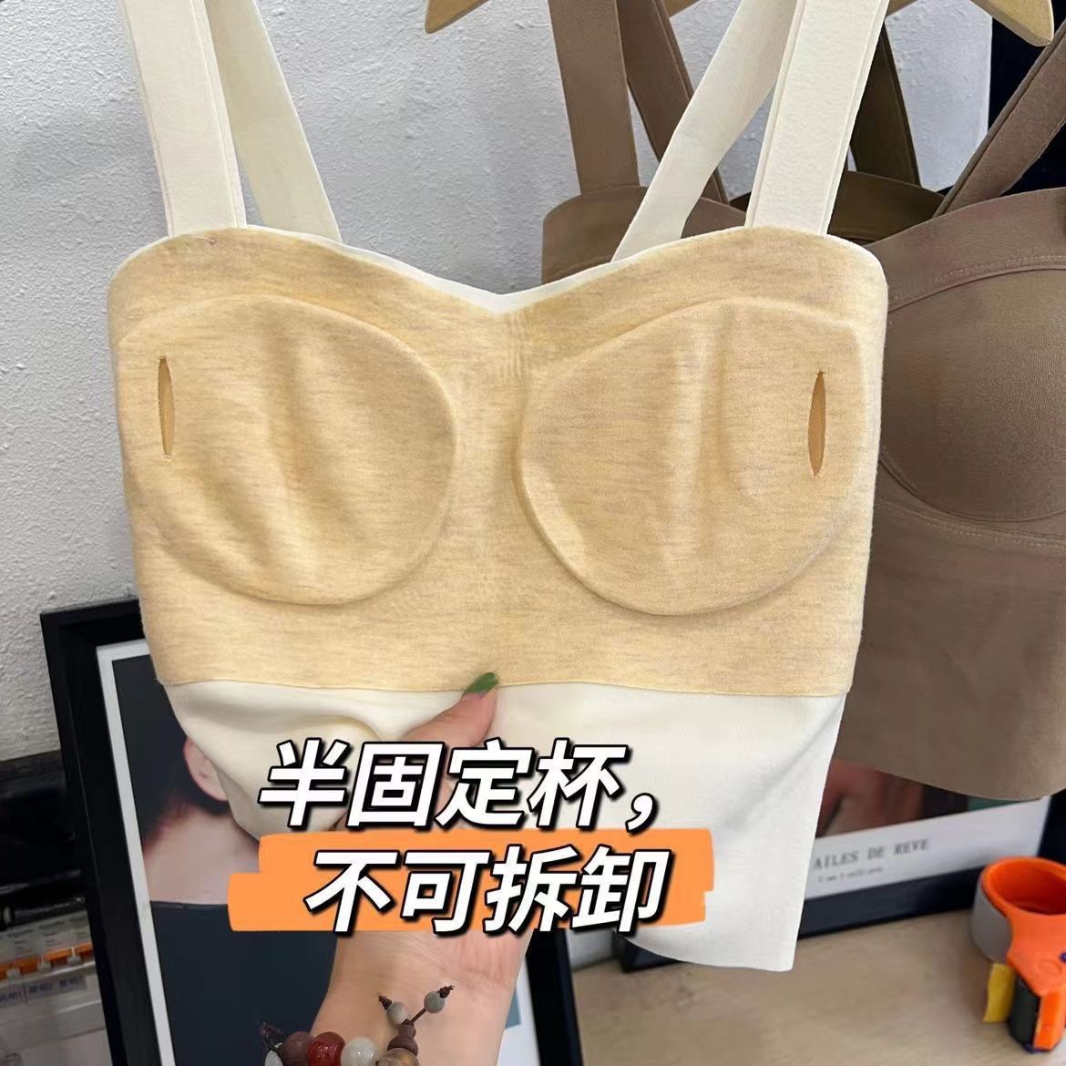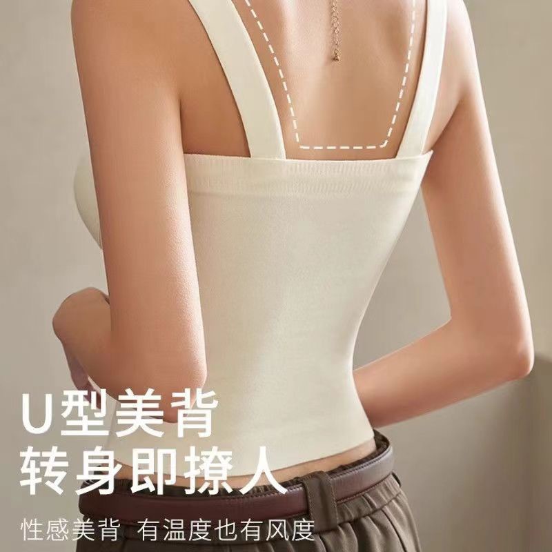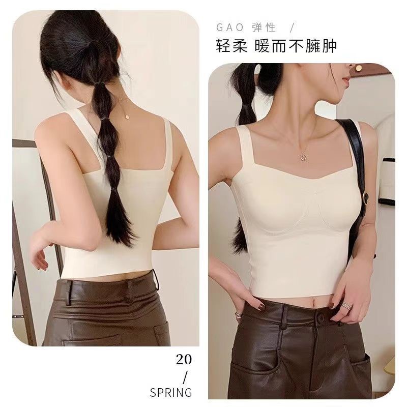 11春秋蚕丝羊绒保暖打底衫吊带背心女自带胸垫黑白色内搭上衣外穿