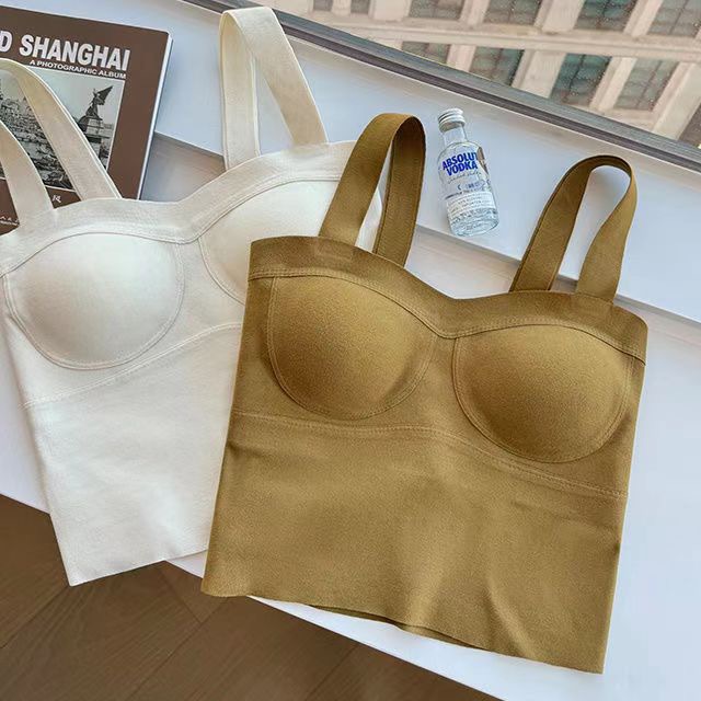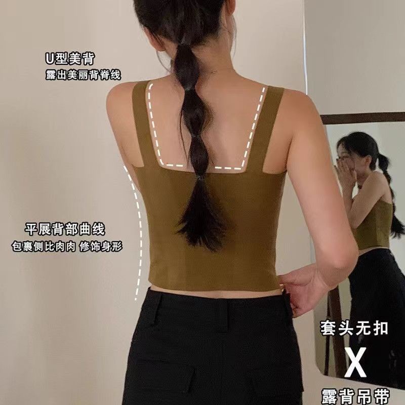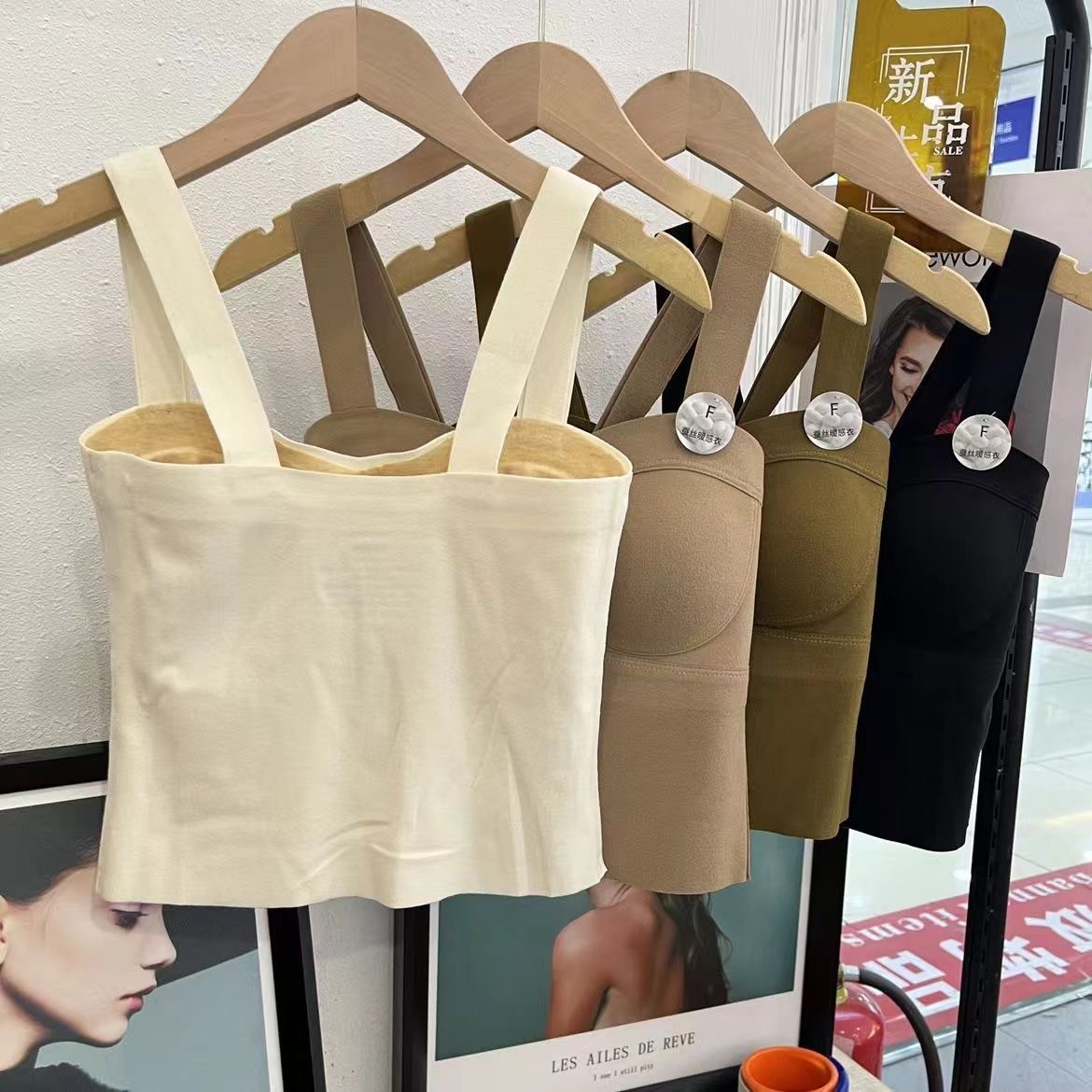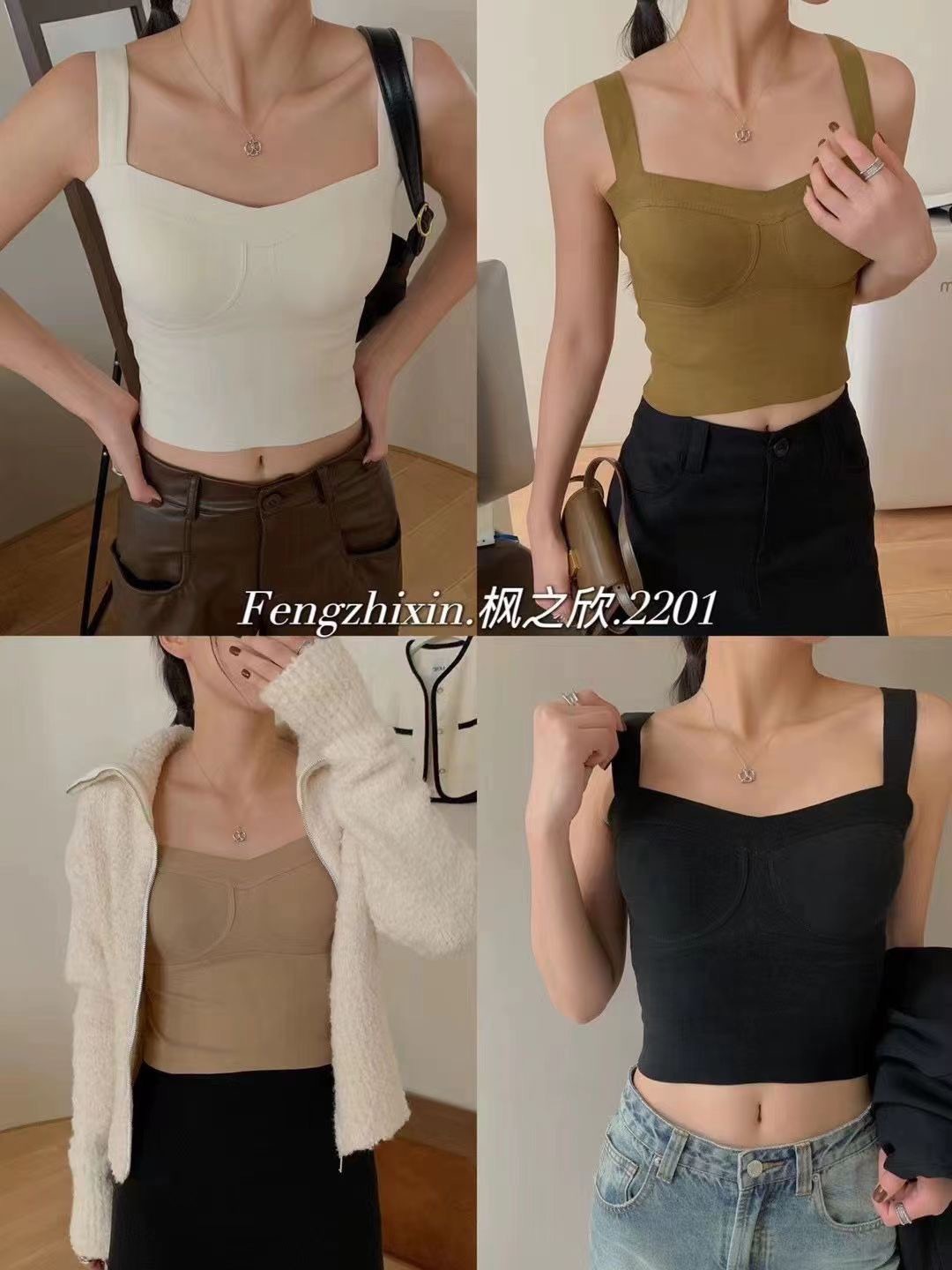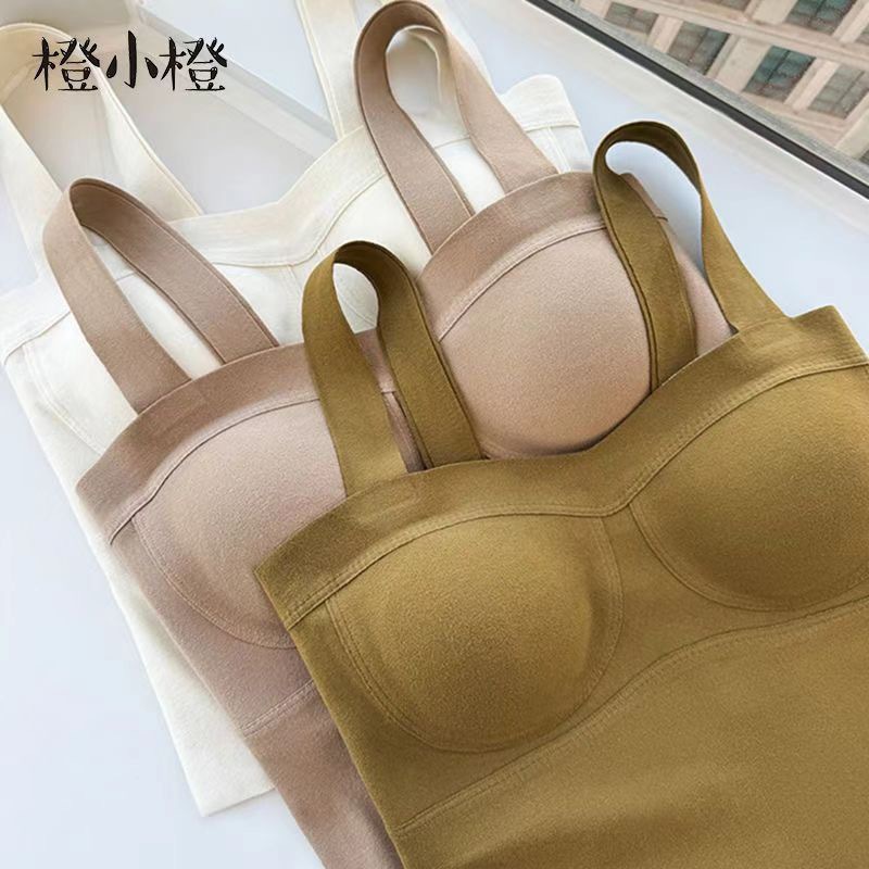 11春秋蚕丝羊绒保暖打底衫吊带背心女自带胸垫黑白色内搭上衣外穿