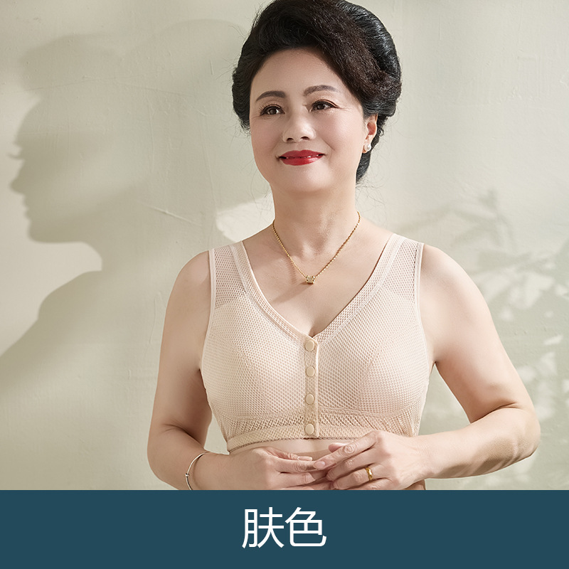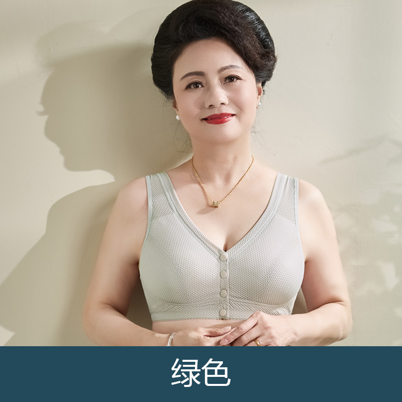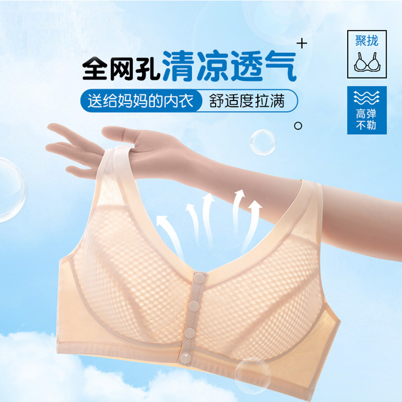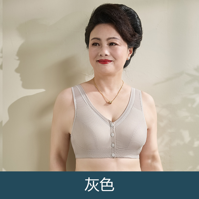 妈妈睡眠前扣棉质内衣女无钢圈聚拢防下垂胸罩中老年舒适大码文胸