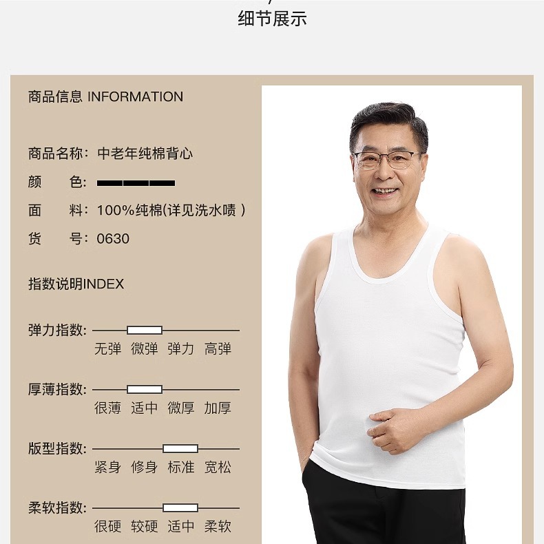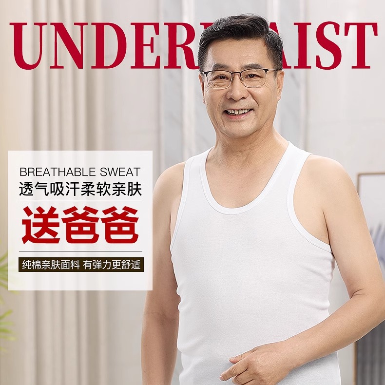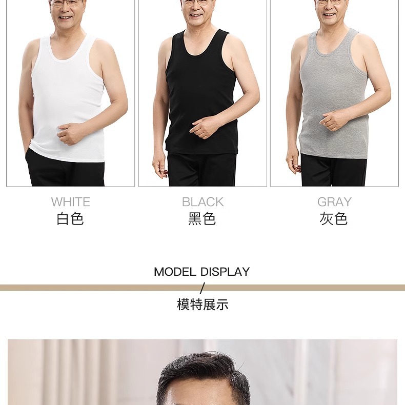 2件纯棉男士背心加大码中老年人无袖背心舒适吸汗内穿 打底背心