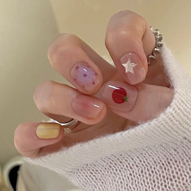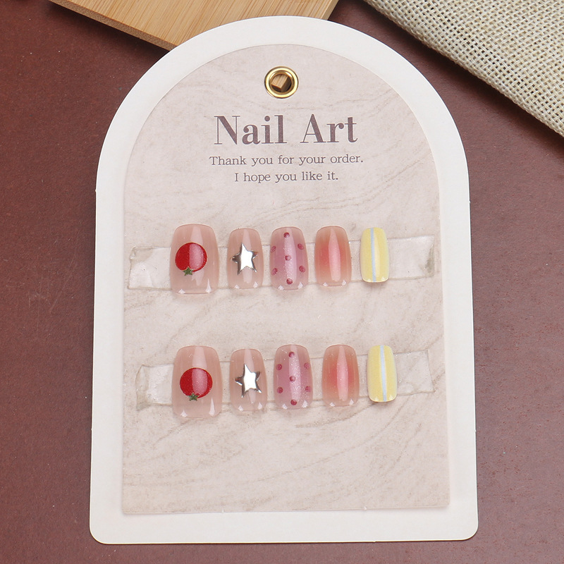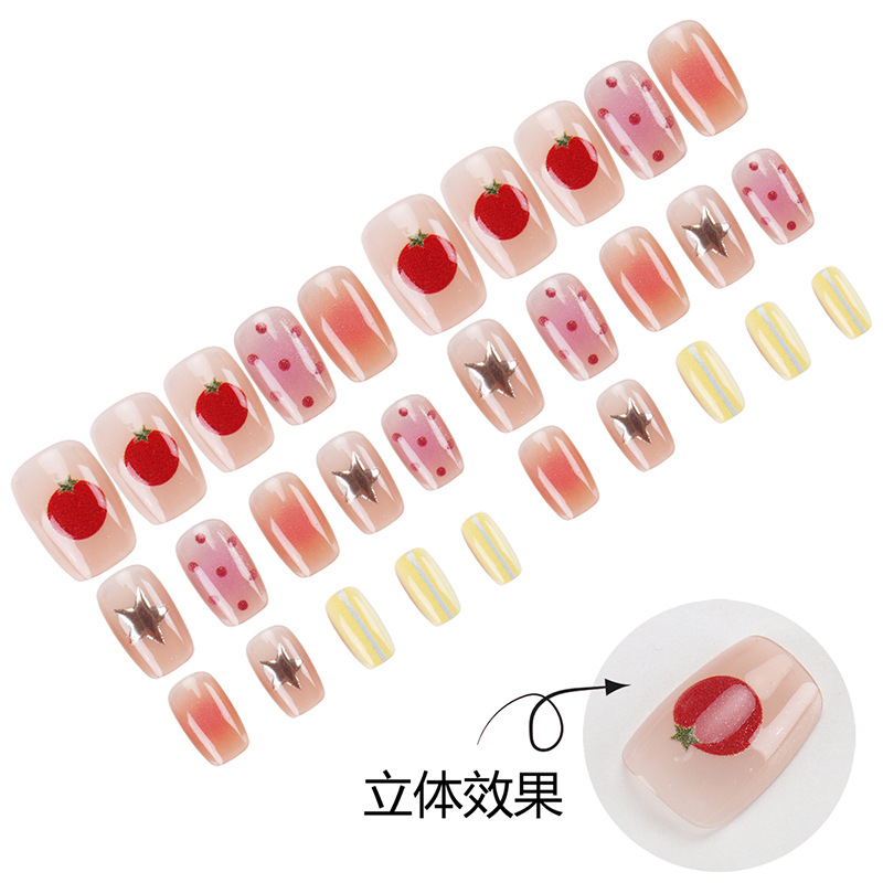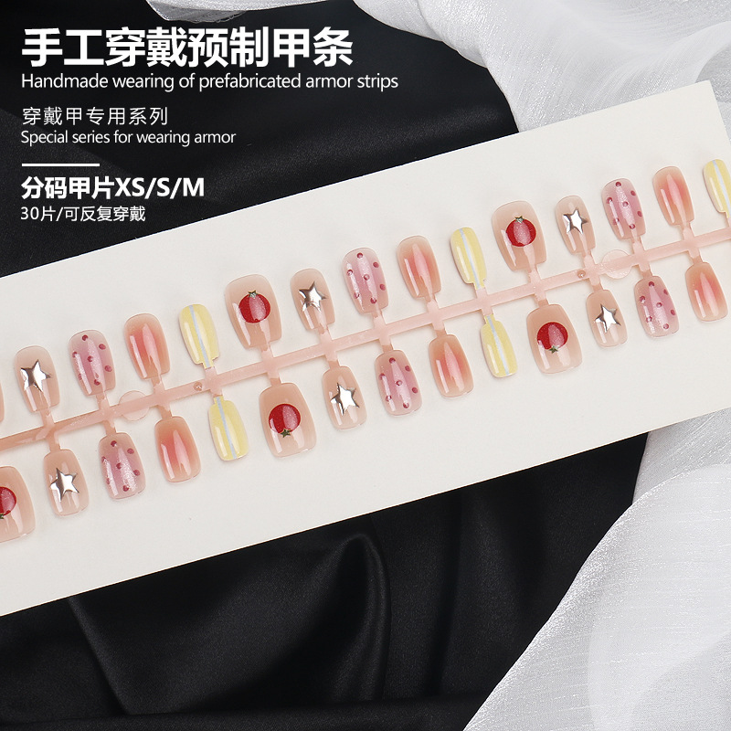 爆款穿戴甲高级感猫眼粉雾海短短梯美甲甲片水果星星预制指甲贴片